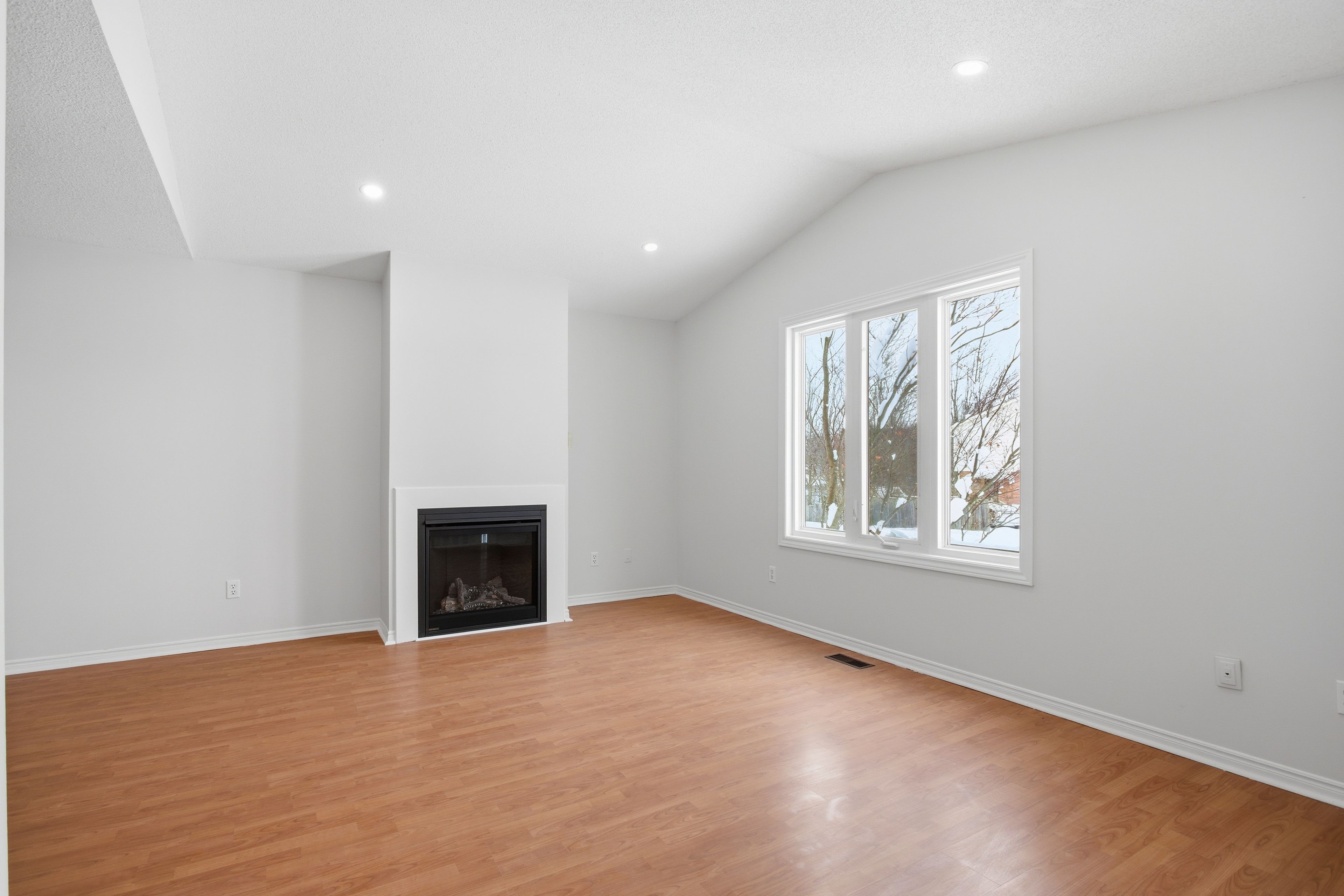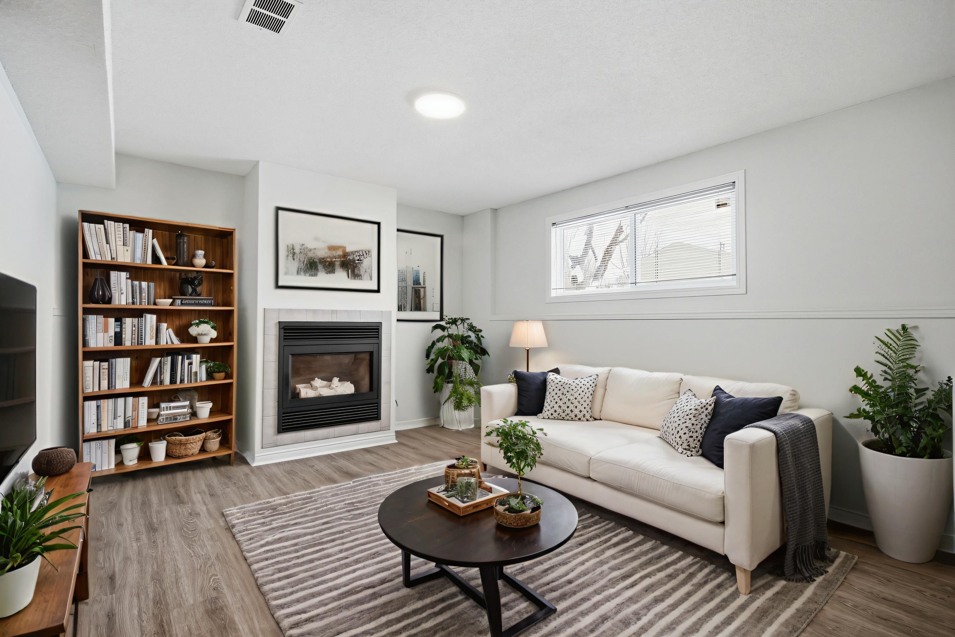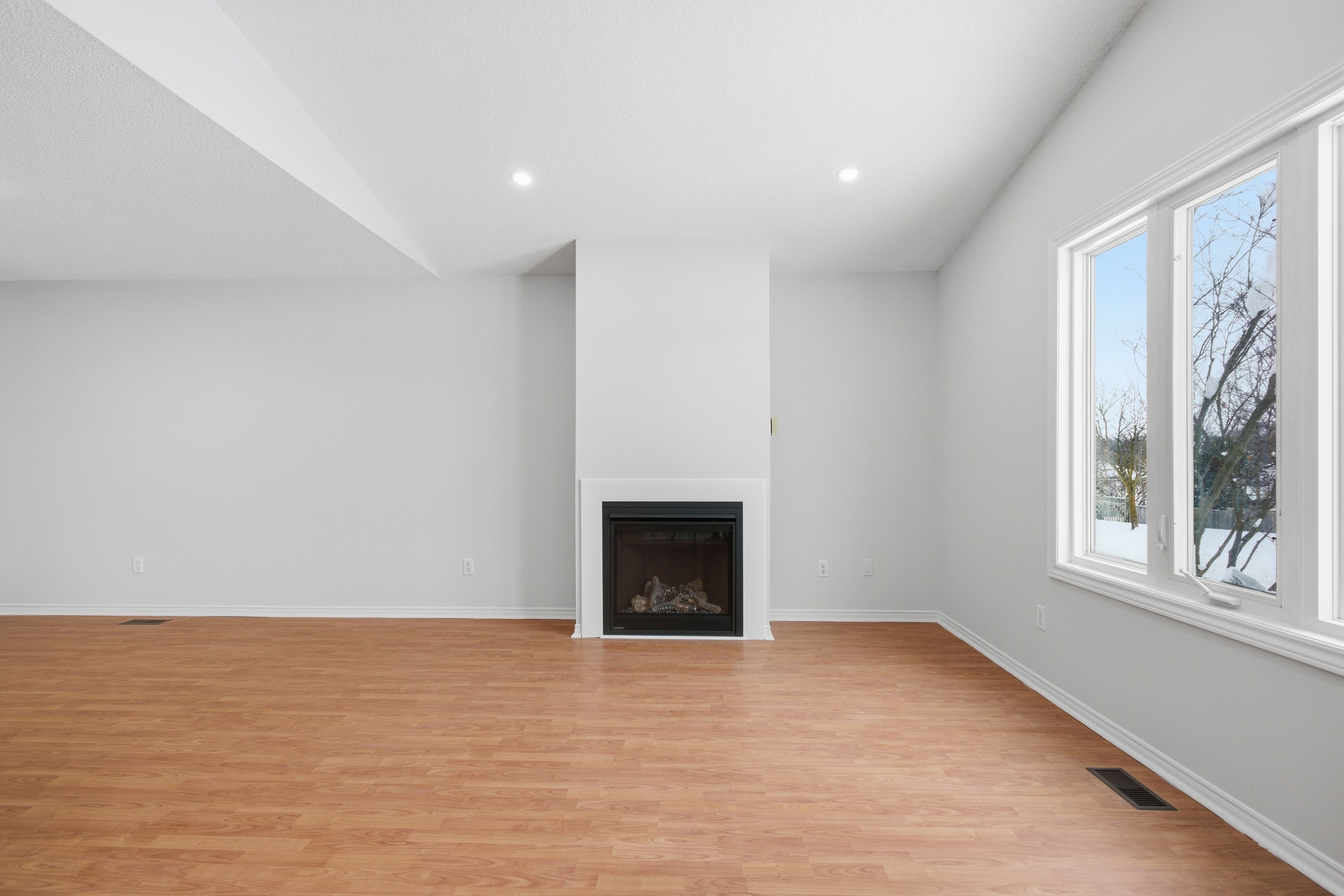 • Bright living room features a cozy gas fireplace for relaxation.