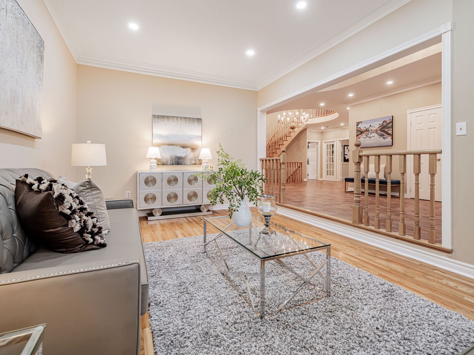• Hardwood floors throughout and a grand staircase for a luxurious feel.