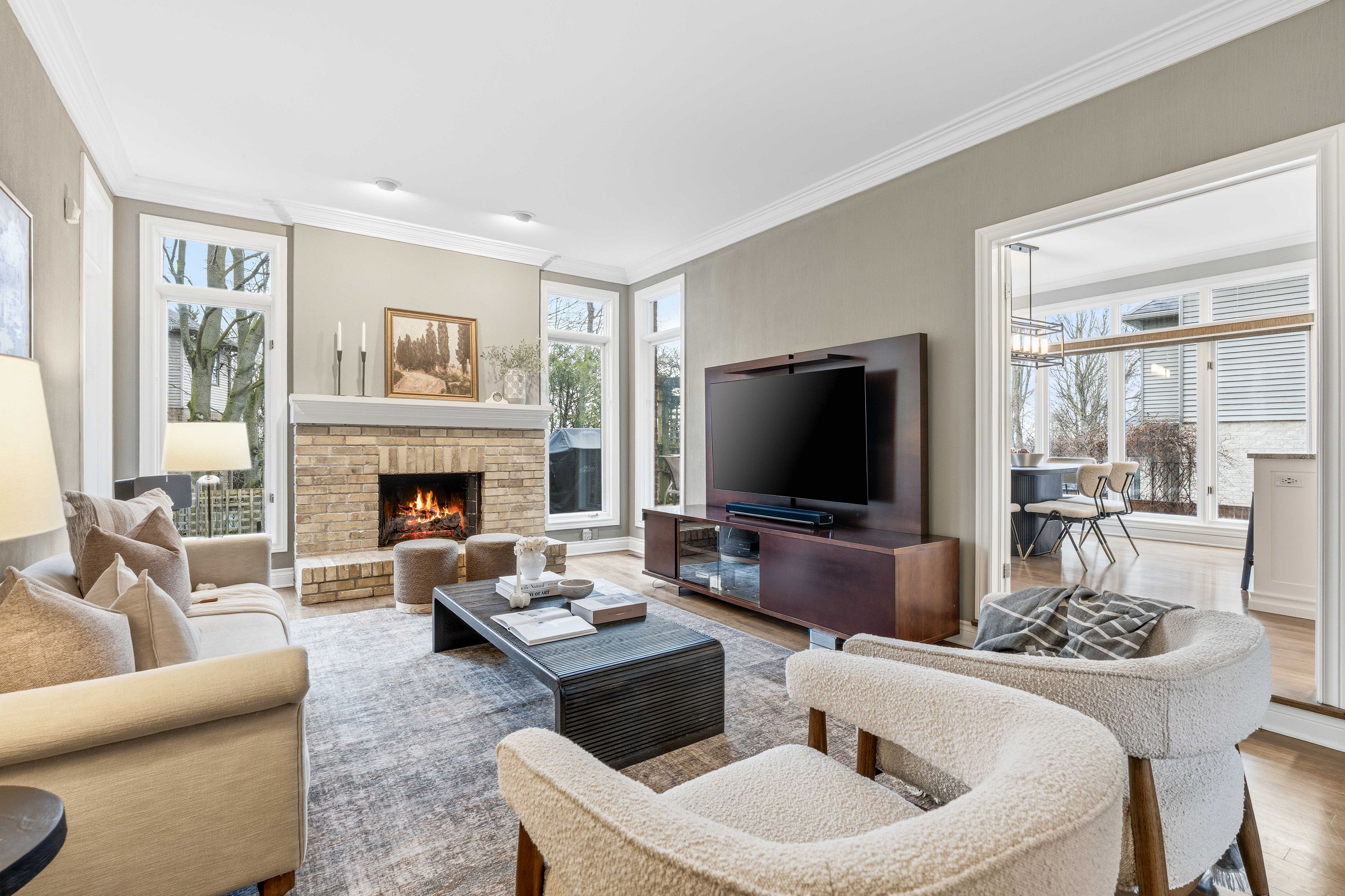 • Gourmet kitchen with premium appliances and cozy family room featuring a fireplace.