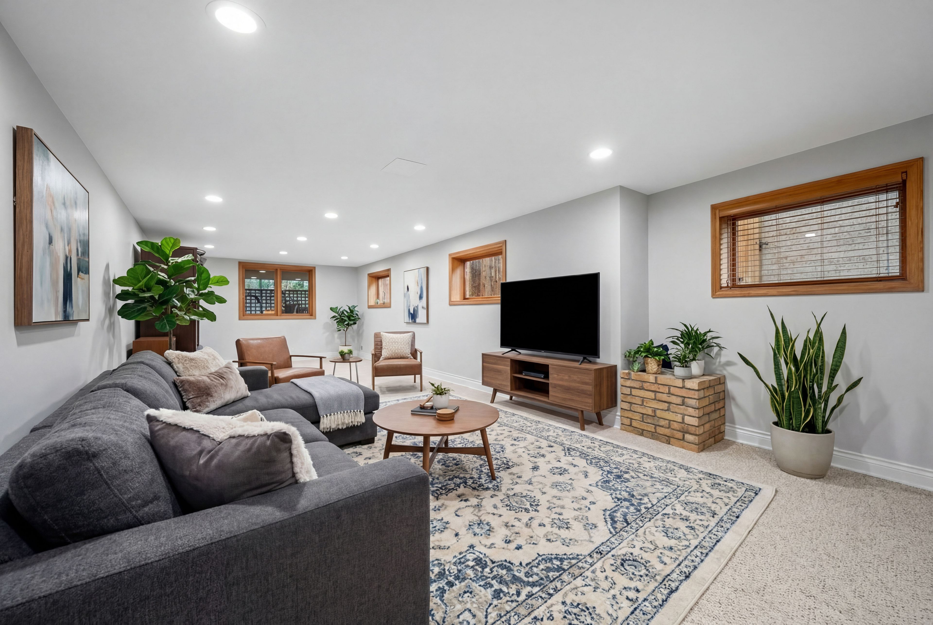 • Versatile lower level with additional bedroom, workout room, and bar area.