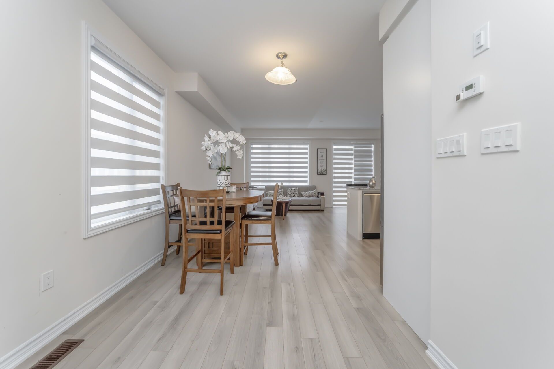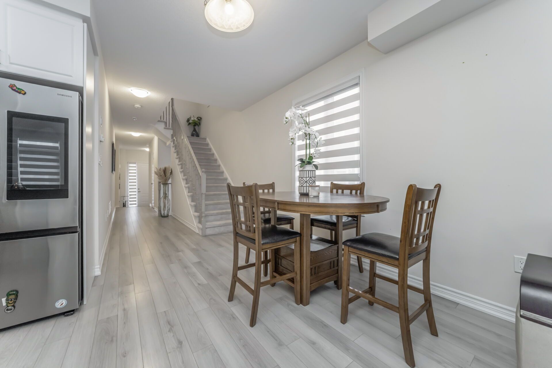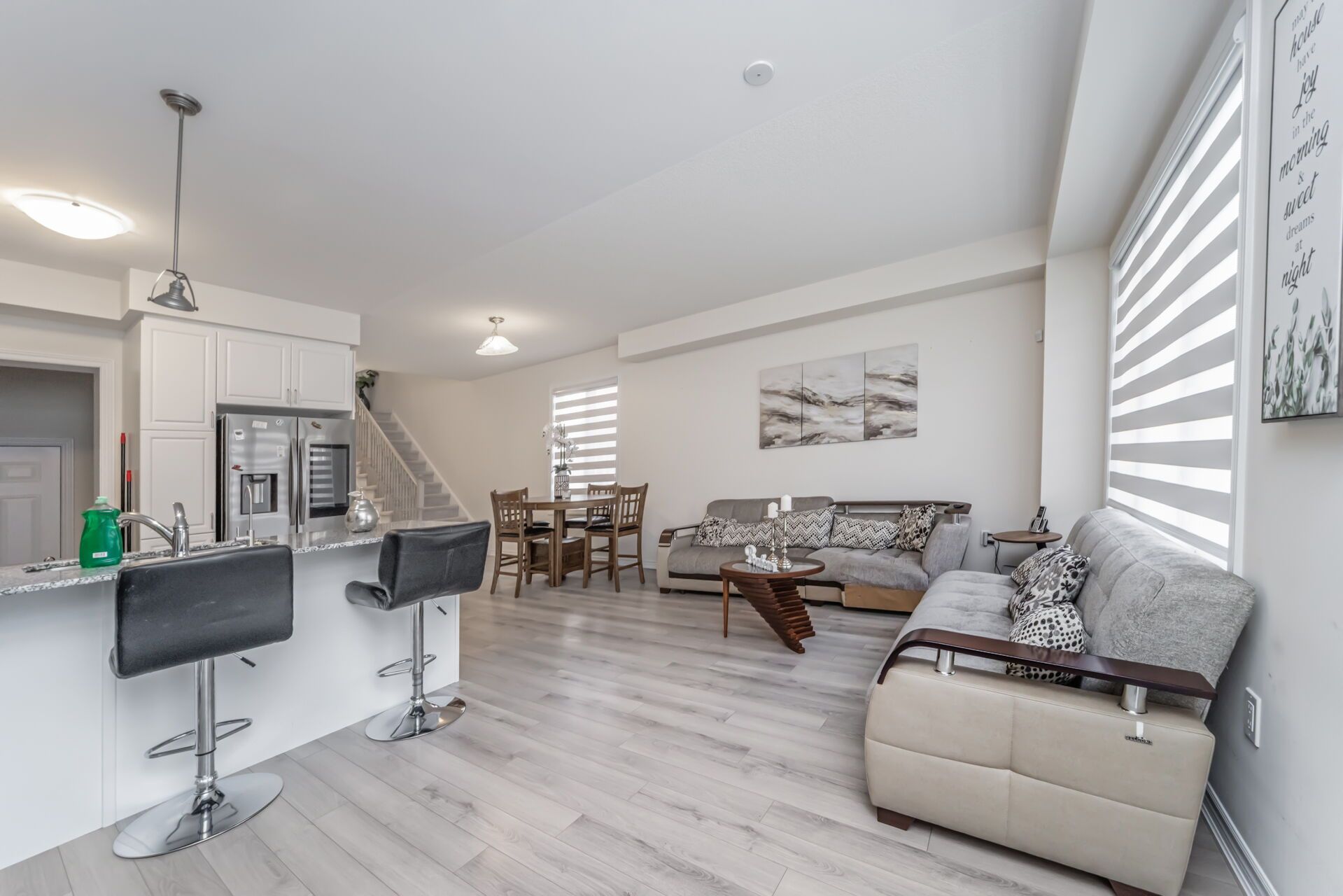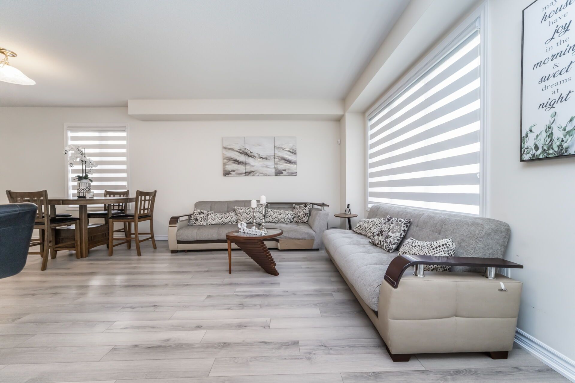 Like a detached end unit modern town home w/4 bedrooms for sale!! 9-foot ceilings on main floor comes with hardwood floors!! Modern kitchen featuring stainless steel appliances, quartz counter tops, and a large island breakfast bar & extra pantry space with organized shelves for convenient storage!! Enjoy the cozy ambiance of a gas fireplace on the main floor, adding warmth and charm to the open-concept living area - perfect for relaxing evenings or entertaining guests!! Master with ensuite bath & walk-in closet!! All other 3 rooms are good size!! No more hauling laundry up and down - the second-floor laundry room adds comfort and convenience to your everyday routine!! Legal separate entrance to the basement provides ease and flexibility for future rental potential!! Spacious basement featuring huge windows that provide excellent daylight and ventilation!! No walkway at front ensures low maintenance and easy snow removal. Enjoy a private, separate individual driveway offering ample parking space and convenience!! Must see!!