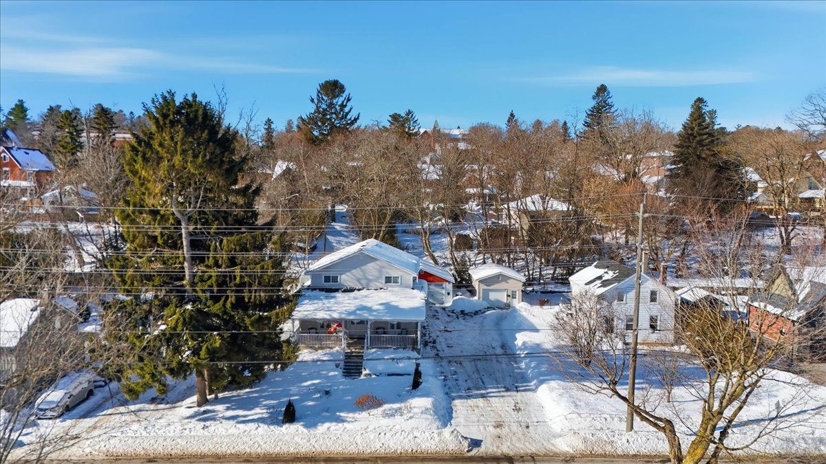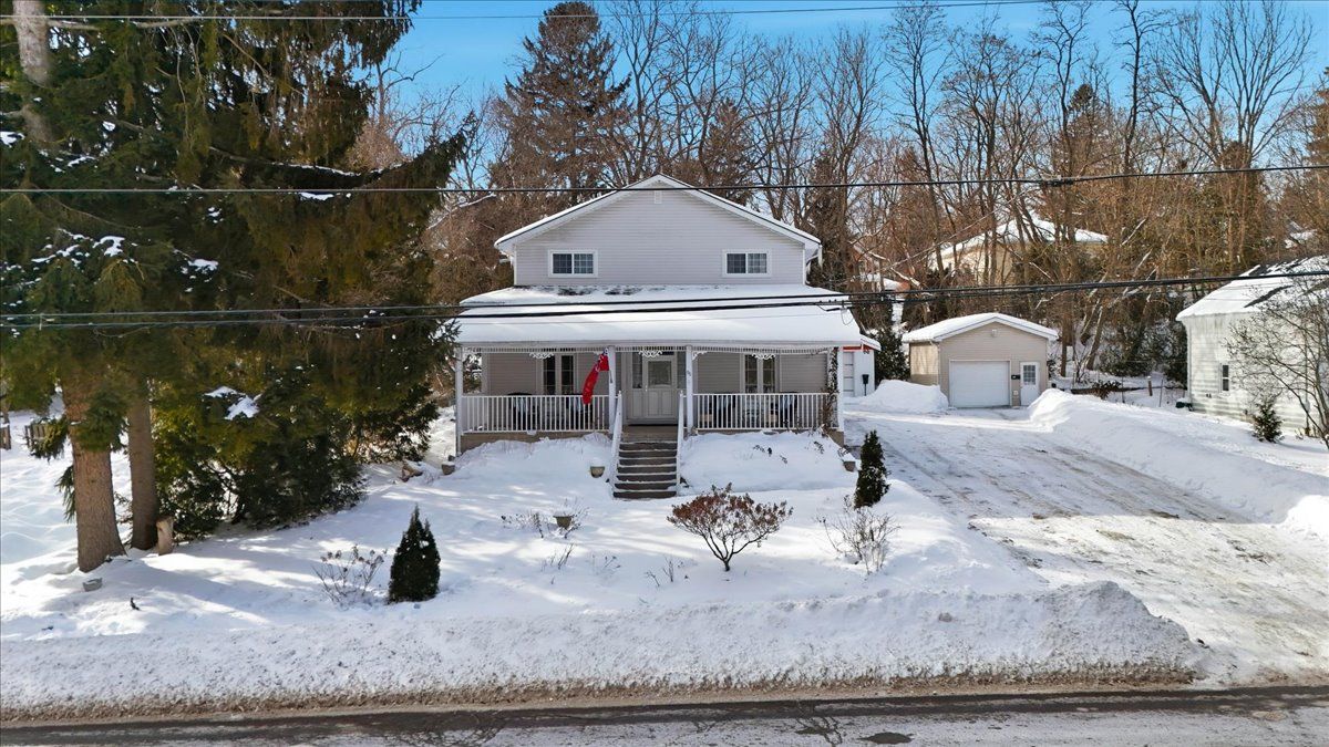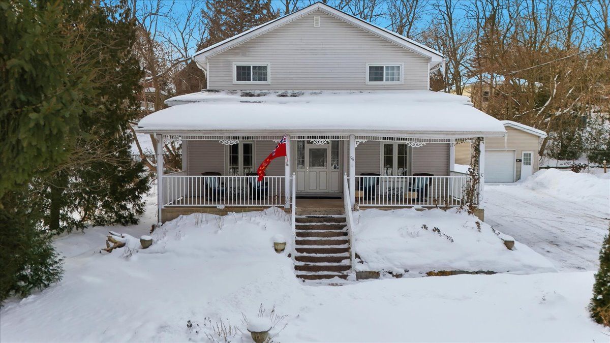 Century home dating to the late 1800s with a later full second-storey addition, set on a quiet stretch of cavan street in port hope's historic core. From the deep covered front porch, there is a clear view of the ganaraska river, known for its seasonal salmon run, with parkland, rivers trails and downtown port hope within walking distance.. The centre-hall layout offers four true bedrooms, a rare feature for homes of this era. The main floor includes and eat-in kitchen with walk-out to the yard, formal dining room, living room, main-floor laundry, and a 3-piece bath. Upstairs, four bedrooms are anchored by a 5-piece bathroom with soaker tub and modern shower. The primary bedroom features a private balcony overlooking the fenced backyard. Set on an oversized in-town lot, the property has been professionally landscaped, with gardens and lawn that become a summer showstopper. A private double driveway and heated detached garage add practicality rarely found this close to the core. This is the kind of home people move to port hope for. Not a designated heritage property, offering historic character with out renovations restrictions and a strong connection to the ganaraska river. *property tour video under virtual tour.