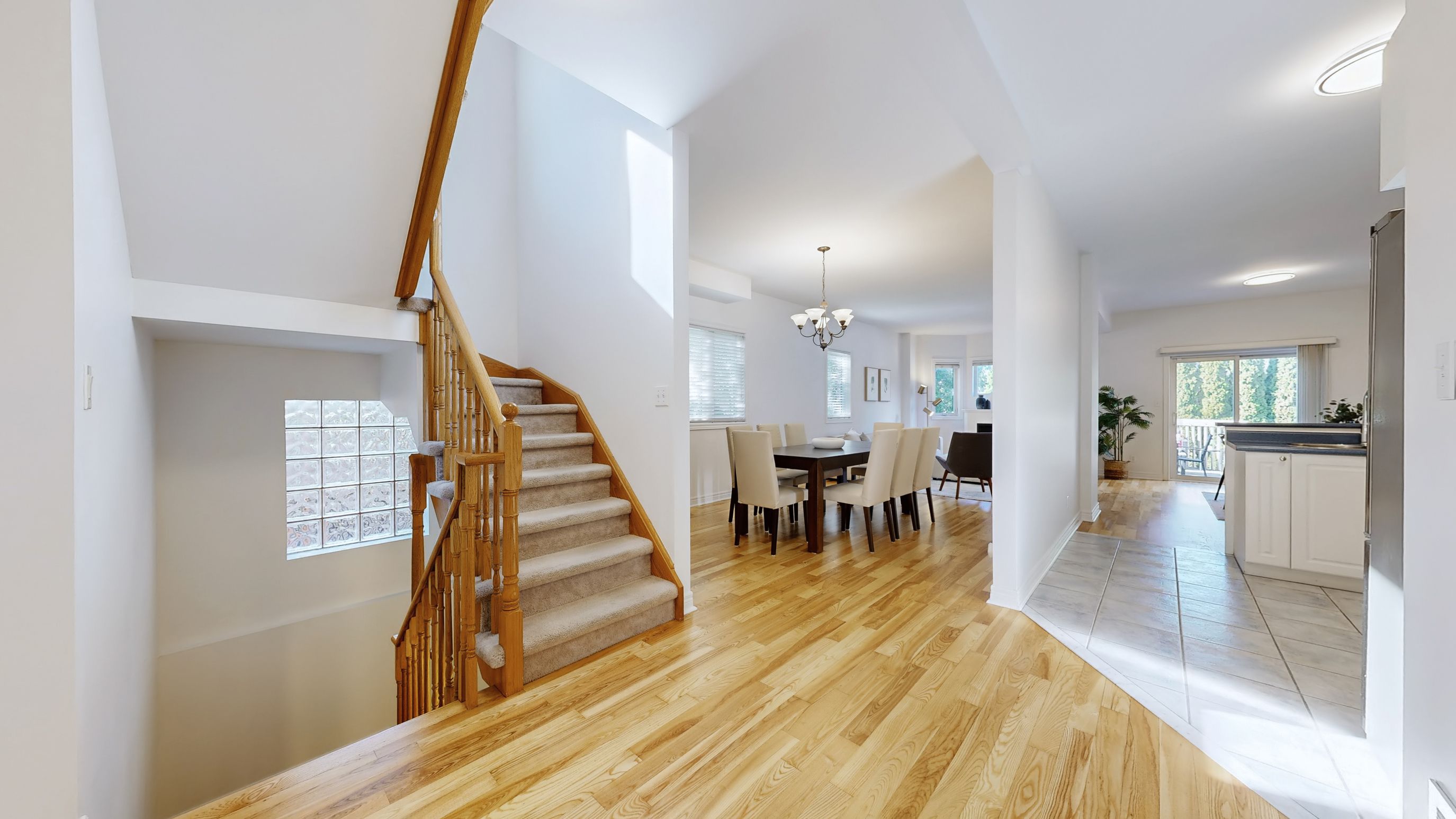 Welcome to 96 coalport drive, offering over 3,000 sq. Ft. Of finished living space with 4 spacious bedrooms and 4 bathrooms. The main floor features freshly refinished hardwood flooring (2025), a bright living and dining area, a family-sized kitchen with stainless steel appliances, a breakfast nook, convenient laundry, and a walkout to a private backyard with a deck -- ideal for summer entertaining and everyday relaxation. Upstairs, the primary suite includes a makeup/dressing area, his-and-hers closets, and a private ensuite, while three additional bedrooms provide plenty of space for family and guests. The fully finished basement, renovated in 2014, adds a versatile layout perfect for a gym, recreation room, or home office, complete with a large storage room and a 3-piece washroom. Recent updates include a new roof (2019) and air conditioning system (2019). Built in 1998, this home also includes a built-in garage plus driveway parking for three vehicles. Located just minutes from balmy beach, toronto hunt club golf course, balmy beach park, and the shops, cafes, and dining of kingston road, this property offers both space and lifestyle in a family-friendly neighbourhood with excellent schools, parks, and transit options.