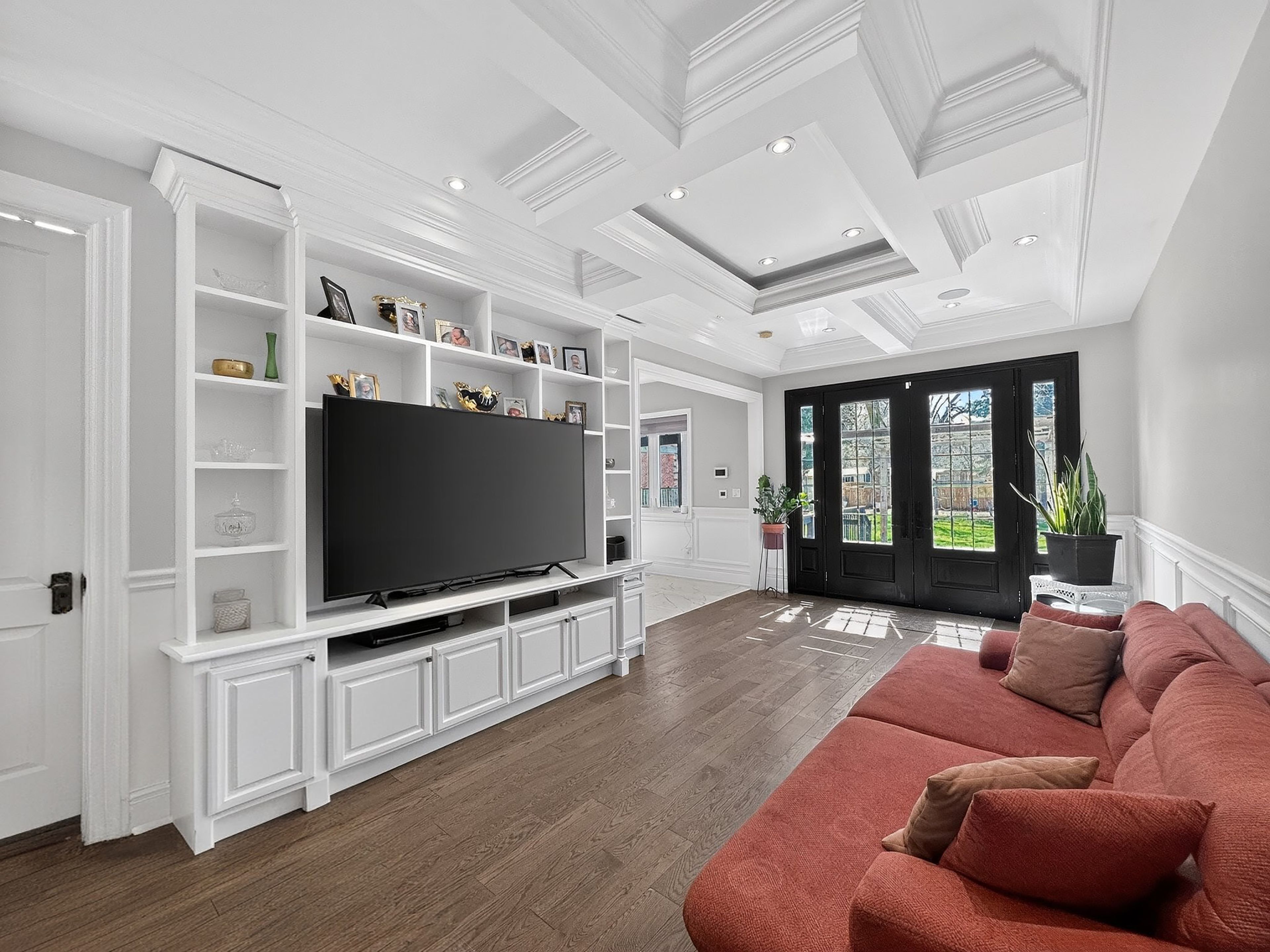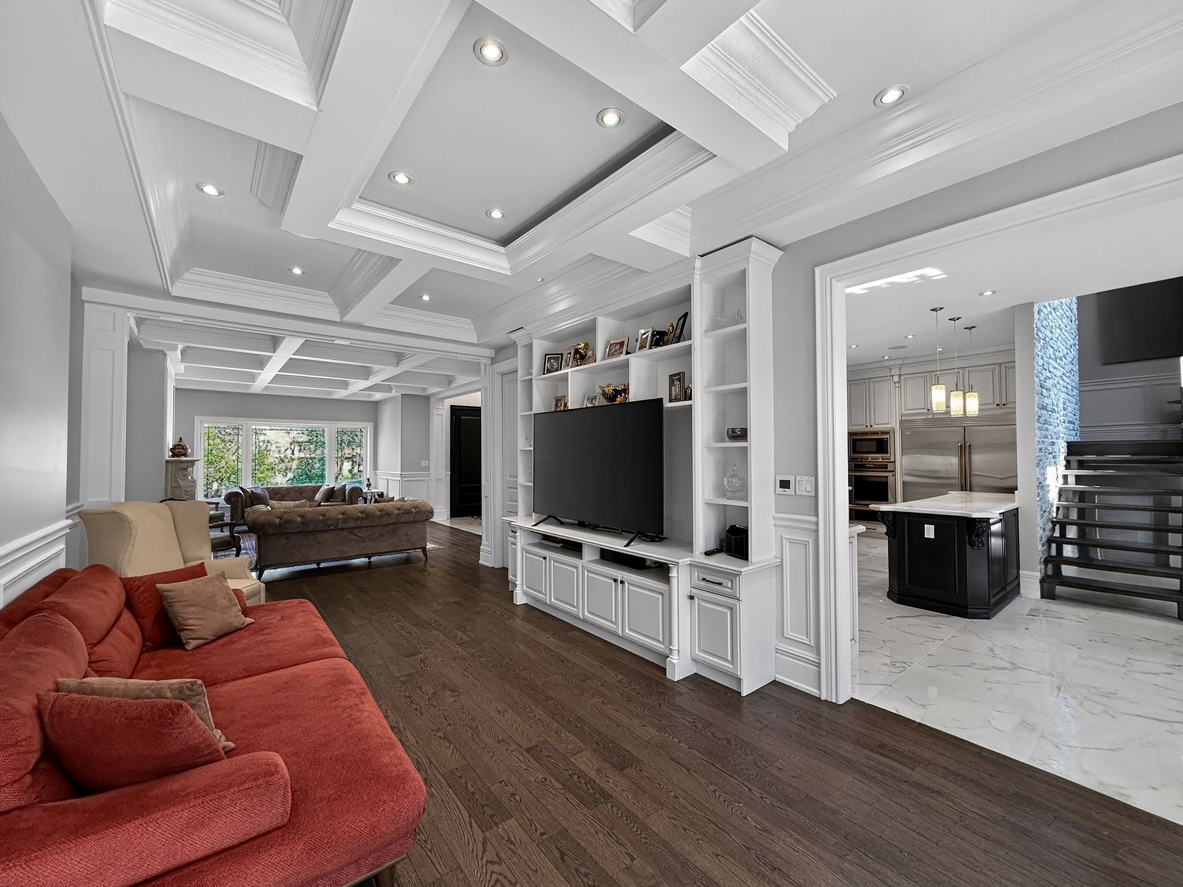 An extraordinary opportunity awaits with this prestigious half-acre estate in one of etobicoke's most serene and coveted neighborhoods. This custom-built masterpiece defines luxury living, designed with impeccable attention to detail. Upon entry, you're greeted by high-end finishes, coffered ceilings, elegant wainscoting, and a grand gas fireplace that anchors the spacious living area. The soaring 14-foot ceilings create a light and airy ambiance, enhancing the homes grandeur . The magnificent master suite offers a private retreat, showcasing lavish design elements and custom millwork, all crafted to exude timeless elegance . Outside, an impressive l-shaped driveway, with space for up to 12 vehicles, perfectly complements the homes sophistication, ideal for hosting grand events or enjoying everyday luxury . This bespoke residence offers a rare opportunity to own a truly exceptional home in a highly sought-after location.
