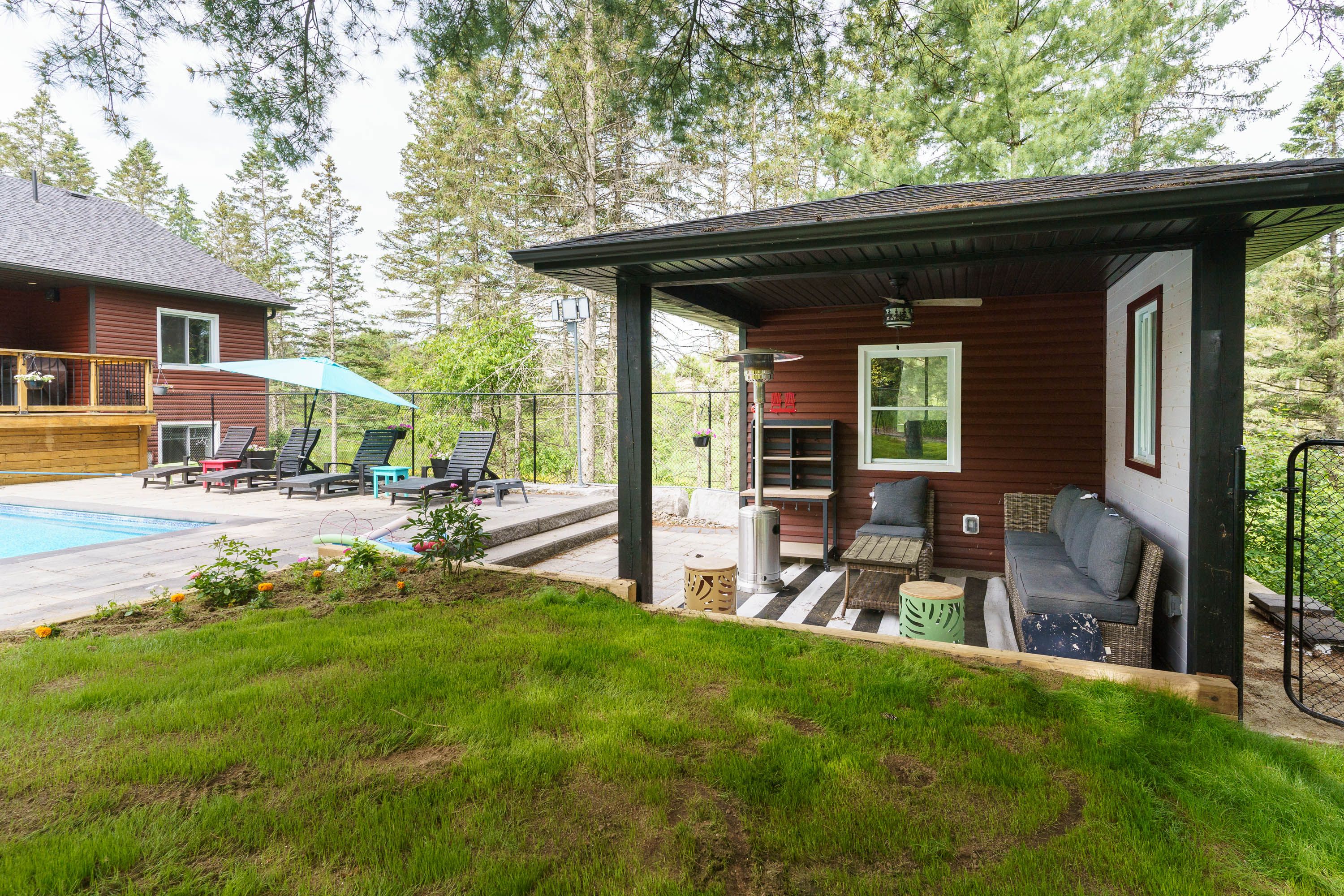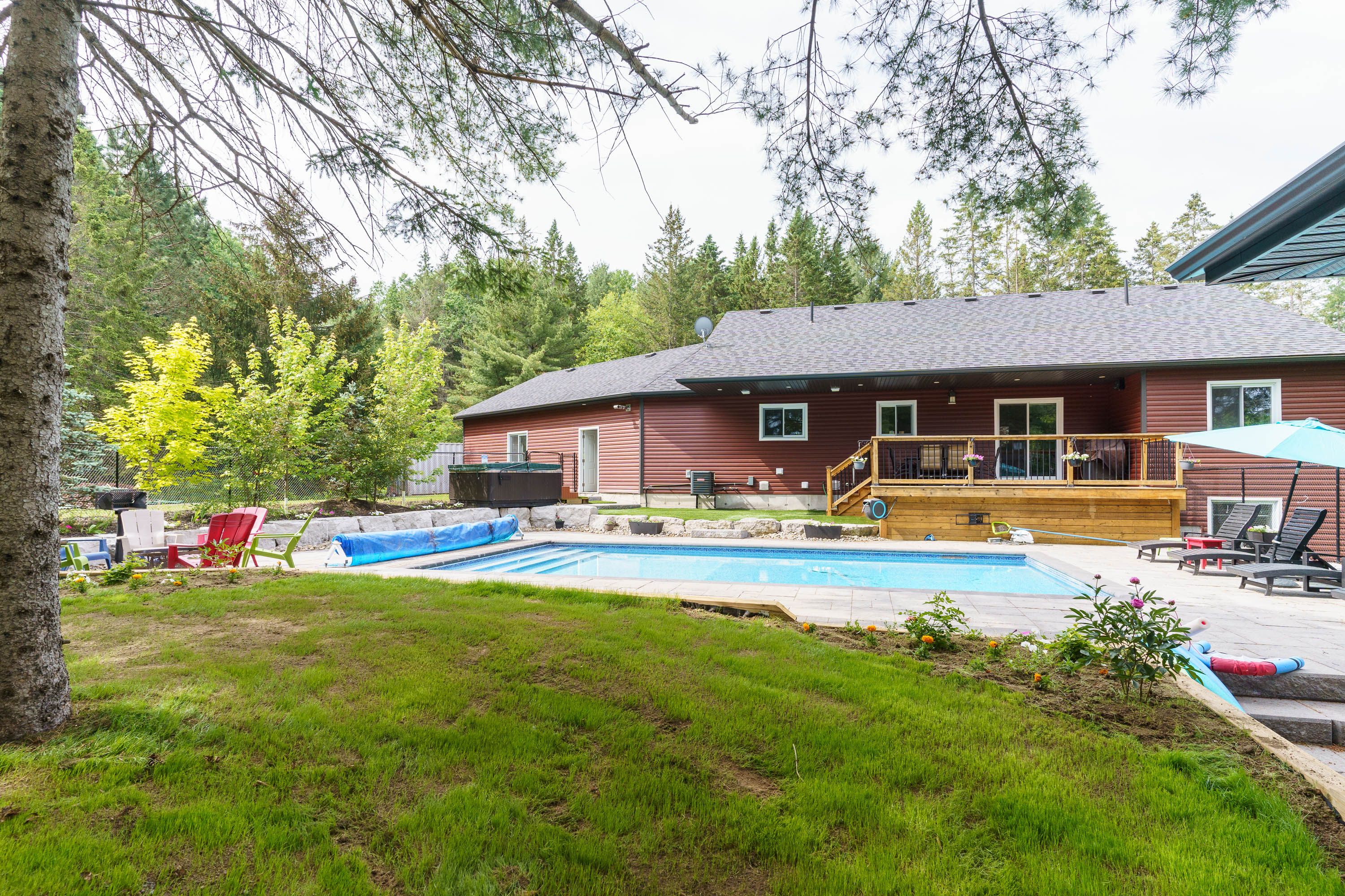 This absolutely gorgeous and newer custom/quality build (2022) in town park like setting on a very private 2+ acres well treed lot in burks falls. This family home offers 4 bedrooms, 3 full washrooms, full finished lower level with walkout (in-law potential). Natural gas ceiling furnace in 32x26'6 attached garage. Municipal services (sewer & water), no septic and well. Beautiful in-ground heated salt water pool and private patio with hot tub & fire pit area in nicely landscaped rear yard. Road side covered porch and decking poolside. Accessed by scenic private drive , offering ultimate privacy. Close to the health center. Shopping, downtown, and recreational facilities. Located within the limits of the village of burk's falls, ( 20 minutes north of huntsville). Lots of upgrades, must see home!! Also comes with all the existing furniture/electronics/patio furniture (beds, dressers, sofa sets, dining table, tv's, bbq, all patio and around the pool furniture etc.) included (as is where as).