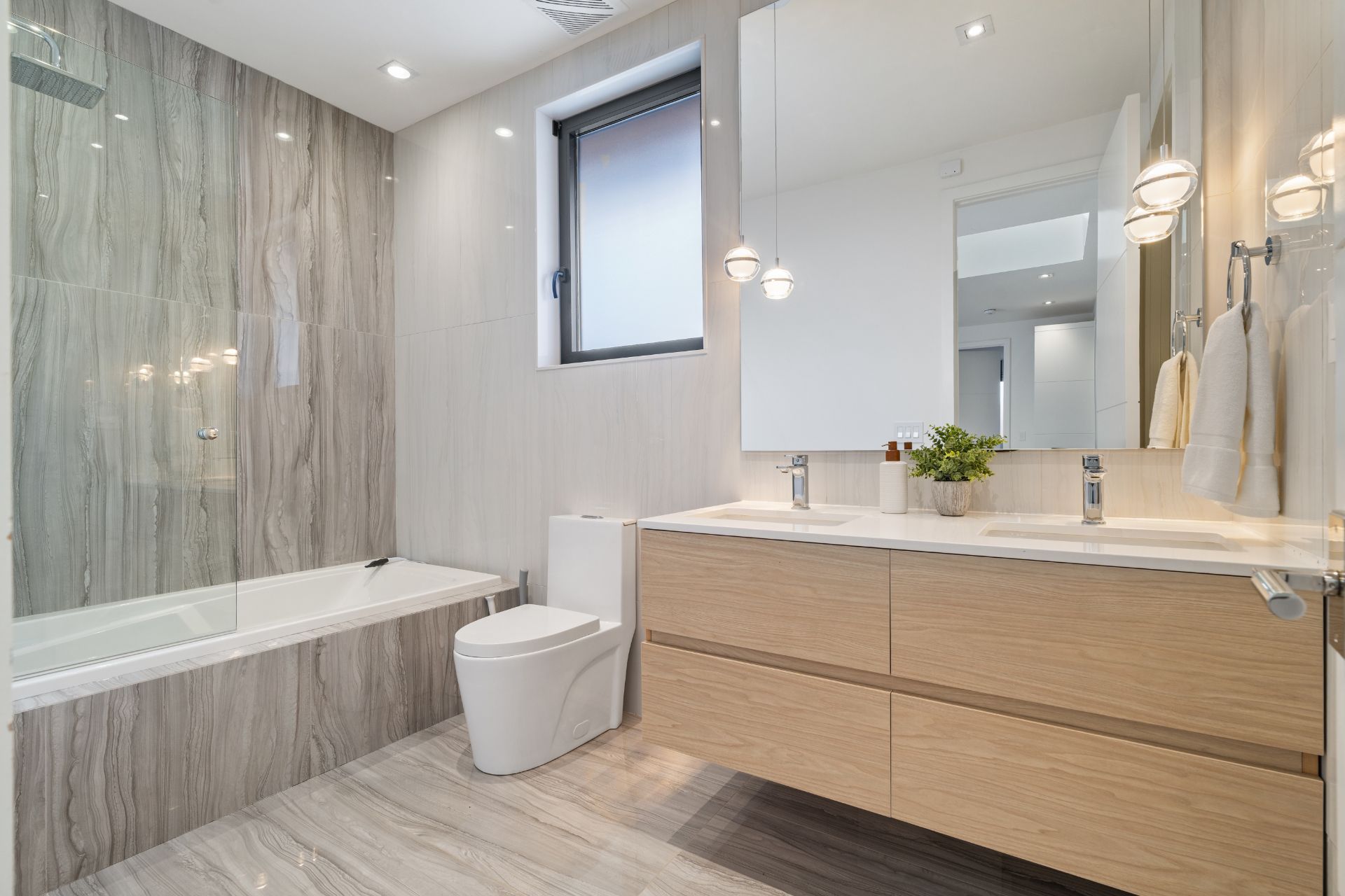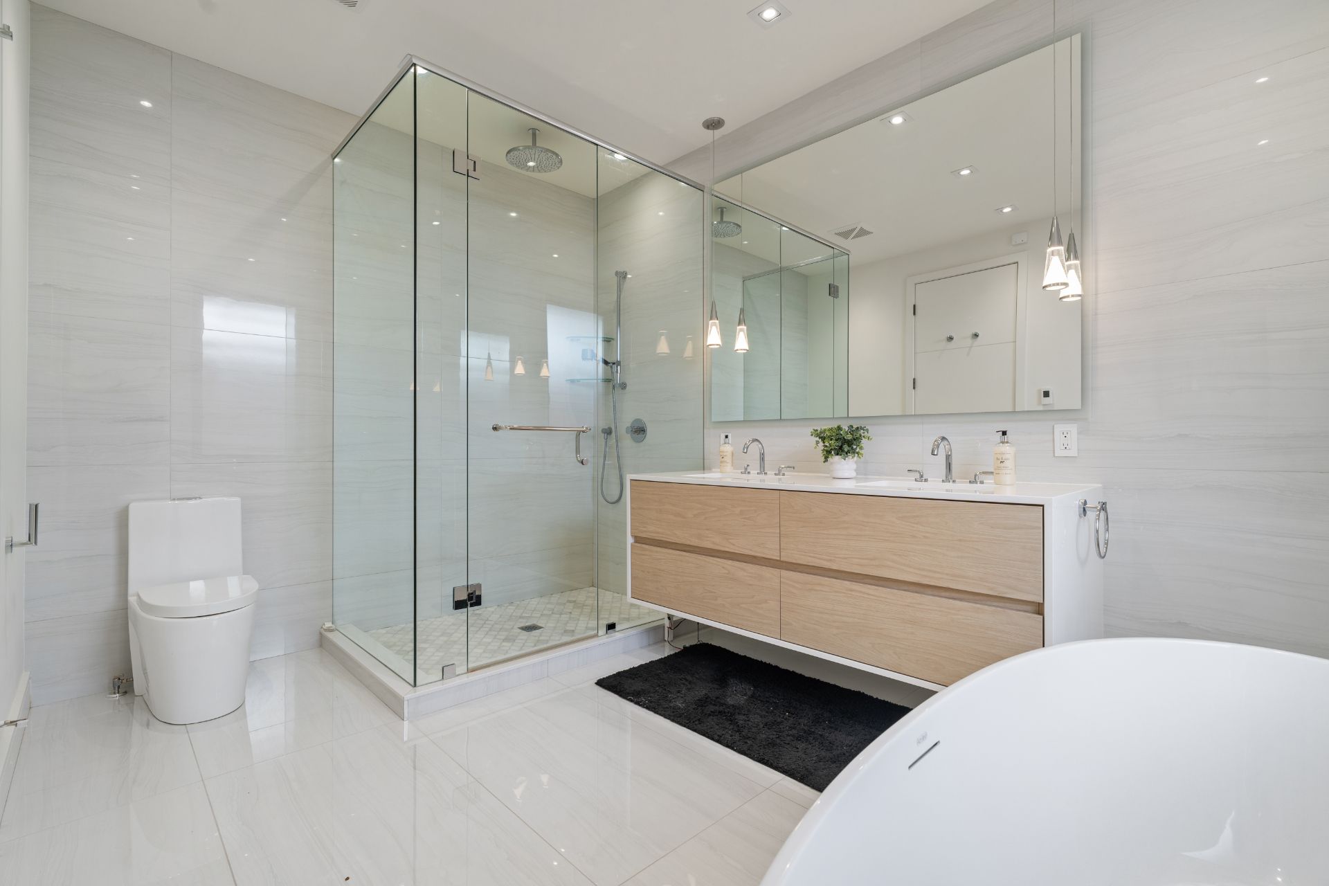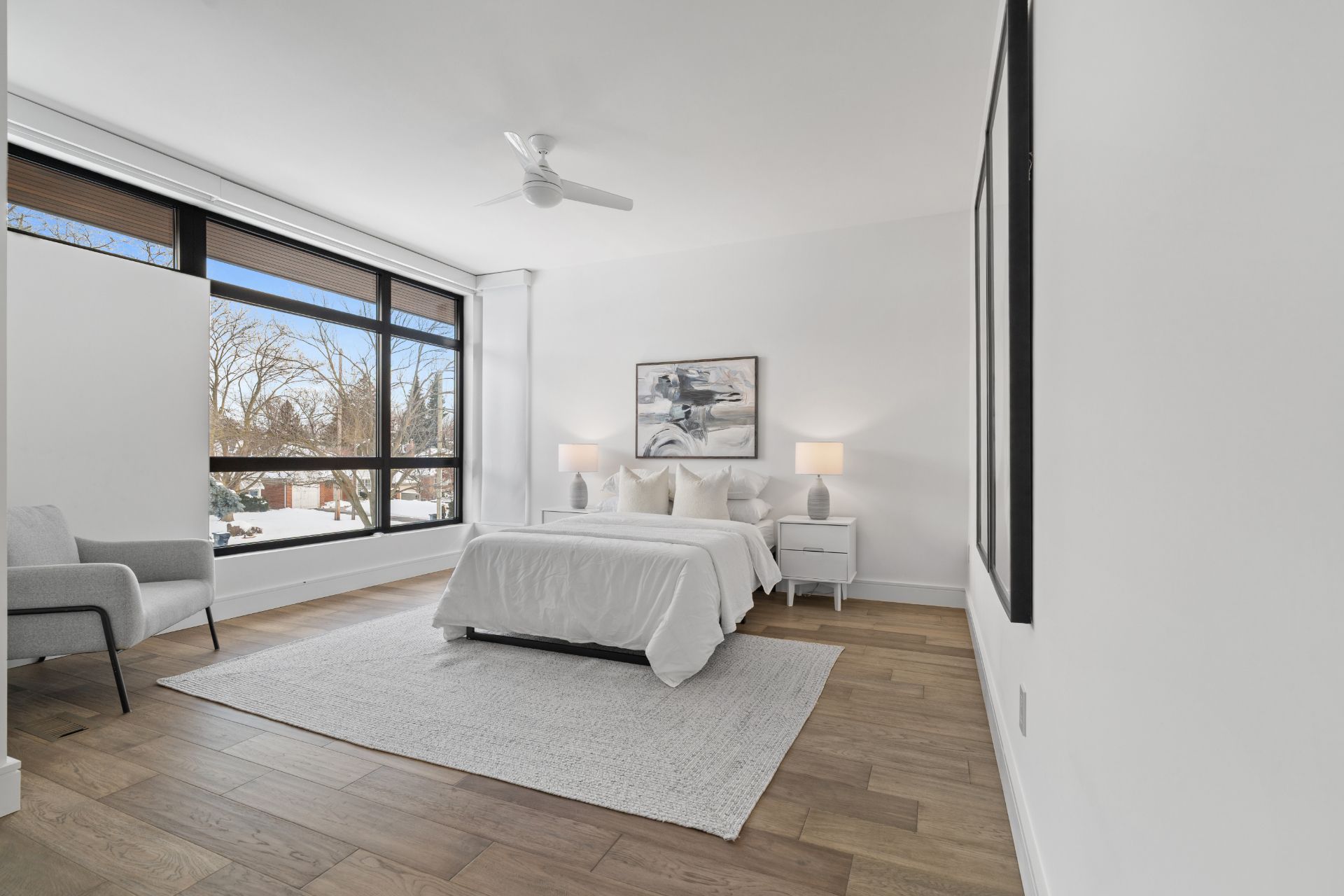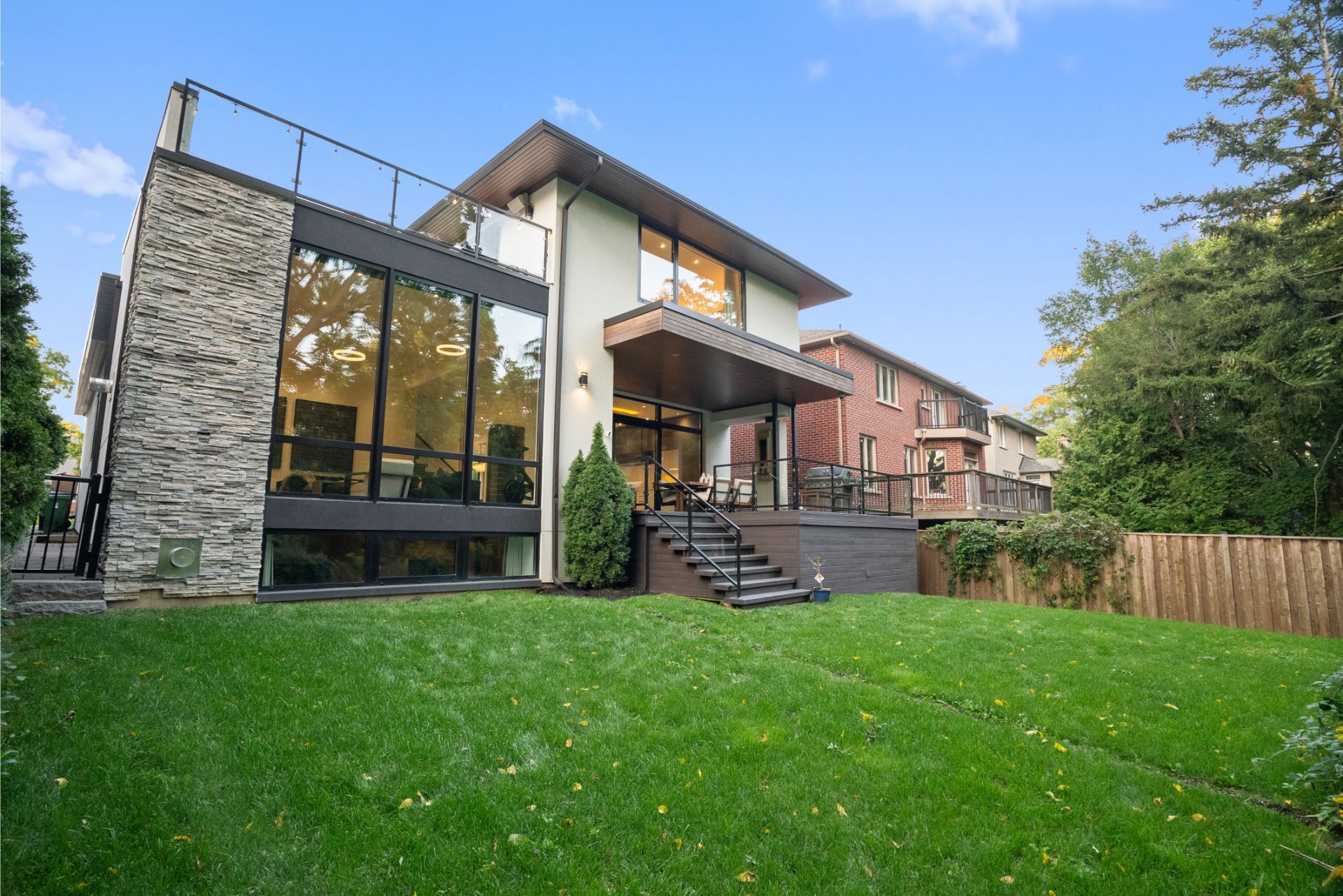 • Custom-built modern home on a rare 54 x 199 ft ravine lot.