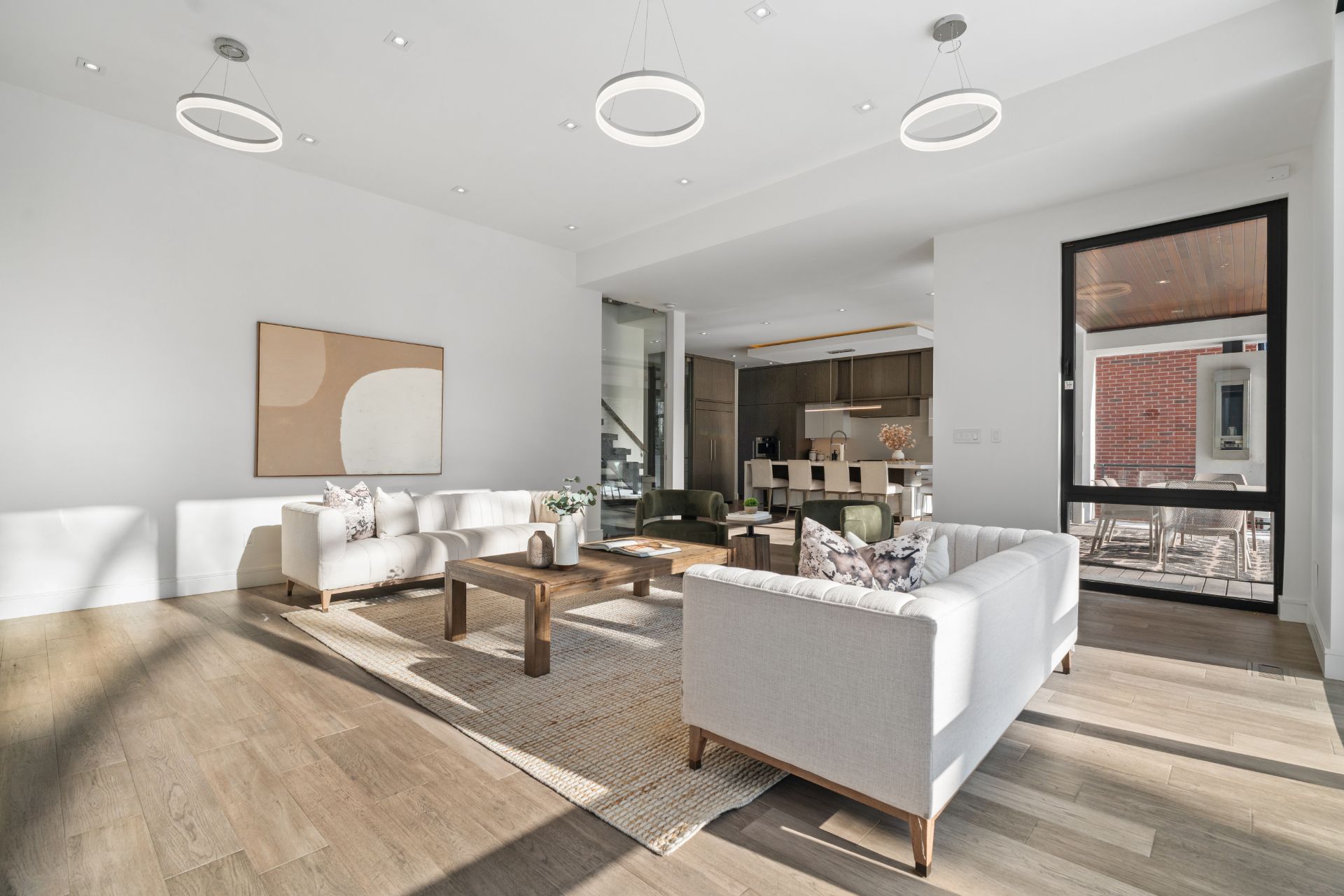 Stunning modern-contemporary custom residence in the heart of the kingsway, offering an exceptional combination of design, scale, and location. Situated on a rare 54 x 199 ft ravine lot backing onto tom riley park, this home provides a private and tranquil setting surrounded by mature greenery, while remaining just steps from transit, top-rated schools, and the vibrant shops and restaurants along bloor street. Spanning approximately 5,200 sqft of total living space, this 4+2 bedroom, 5 bathroom home showcases innovative architecture, premium finishes, and a highly functional layout across all levels. The main floor is anchored by a contemporary chefs kitchen with caesarstone countertops and backsplash, jenn-air, bosch, and wolf appliances, a built-in coffee station, and custom wine display, seamlessly flowing into open concept living and dining spaces. Expansive glass doors connect to a covered 340 sqft patio with fireplace, perfect for year round entertaining. Upstairs, a skylit hallway leads to generously sized bedrooms, spa-like baths, and a 326 sqft upper terrace with ravine views, while the lower level offers a dedicated wine cellar, recreation room with fireplace, and state-of-the-art home theatre with 98" 4k screen and custom sound system. Additional highlights include multiple gas fireplaces (indoor and outdoor), heated basement floors, engineered hardwood throughout, illuminated stair features, dual laundry rooms, smart-home automation, and a private backyard oasis designed for relaxation. Rarely does a property of this calibre become available in such a prestigious and family-friendly neighbourhood.