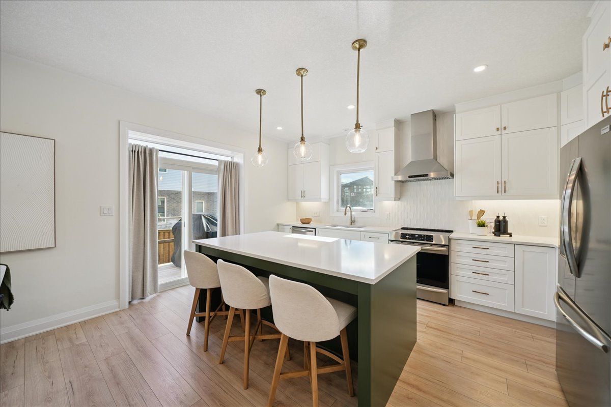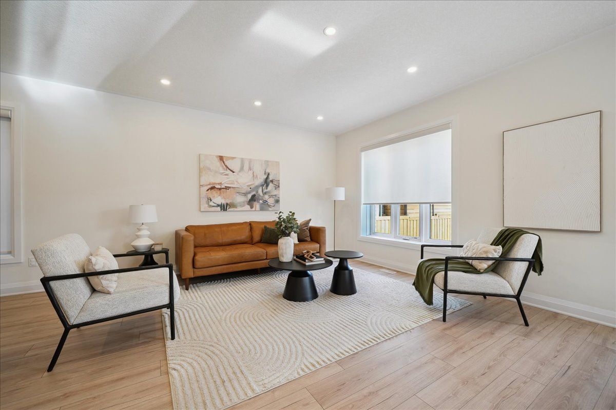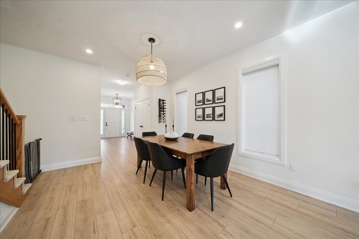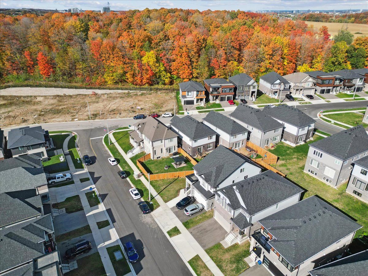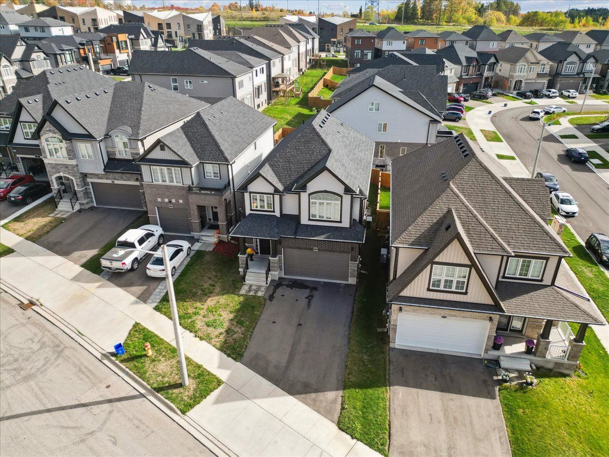 Discover your dream home in the heart of kitchener's new, family-friendly trussler west community. Nestled on a quiet street, this exquisite 2,382 sq. Ft. Residence blends tasteful modern finishes with timeless craftsmanship, creating a truly magnificent living space. From the moment you arrive, the home impresses with its classic brick facade and a double-car garage offering parking for four vehicles. Step into a bright, open-concept main level where 9-foot ceilings & continuous engineered hardwood floors establish a modern, airy atmosphere right from the foyer. The living and dining areas, illuminated by pot lights and chandeliers, create the perfect ambiance for both entertaining guests and quiet family evenings. The heart of the home is the stunning modern kitchen, a chef's delight featuring a large quartz centre island,custom backsplash,extended cabinetry, and stainless steel appliances. From here, slide open the doors to a walk-out deck. A main-floor office provides a quiet space for work or study. Upstairs, the primary bedroom serves as a personal sanctuary,a large walk-in closet, and a luxurious ensuite. Unwind in the elegant soaker tub or the spacious glass shower, and appreciate the privacy of a separate water closet and the convenience of double sinks. Three additional generous bedrooms share a well-appointed 5-piece main bath, thoughtfully designed with a water closet and double sinks to streamline morning routines. The home's potential continues with a large, unfinished basement-a blank canvas awaiting your personal touch. This net zero home is future-ready, with rough-ins for solar panels, an electric vehicle charger, and a basement bathroom and bar. Enjoy the perfect balance of tranquil nature, with the trails of trussler woods nearby, and commuter convenience, with easy access to highways 7/8 & the 401. You're also just minutes from major shopping hubs like the sunrise shopping centre. This is more than a house-it's the home you've been waiting for.