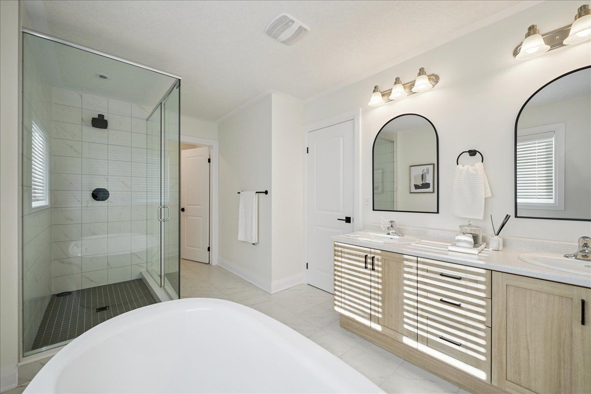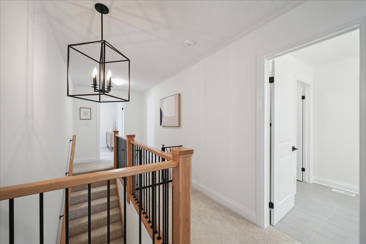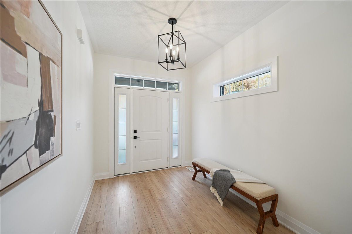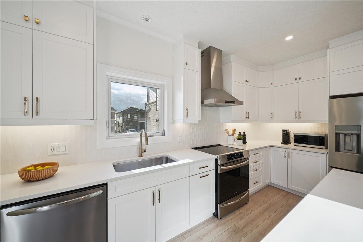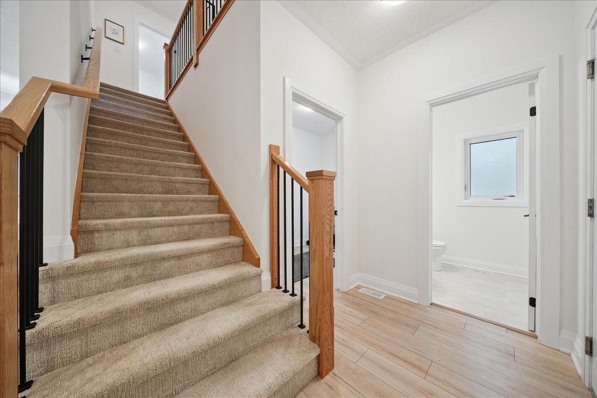 Discover your dream home in the heart of kitchener's new, family-friendly trussler west community. Nestled on a quiet street, this exquisite 2,382 sq. Ft. Residence blends tasteful modern finishes with timeless craftsmanship, creating a truly magnificent living space. From the moment you arrive, the home impresses with its classic brick facade and a double-car garage offering parking for four vehicles. Step into a bright, open-concept main level where 9-foot ceilings & continuous engineered hardwood floors establish a modern, airy atmosphere right from the foyer. The living and dining areas, illuminated by pot lights and chandeliers, create the perfect ambiance for both entertaining guests and quiet family evenings. The heart of the home is the stunning modern kitchen, a chef's delight featuring a large quartz centre island,custom backsplash,extended cabinetry, and stainless steel appliances. From here, slide open the doors to a walk-out deck. A main-floor office provides a quiet space for work or study. Upstairs, the primary bedroom serves as a personal sanctuary,a large walk-in closet, and a luxurious ensuite. Unwind in the elegant soaker tub or the spacious glass shower, and appreciate the privacy of a separate water closet and the convenience of double sinks. Three additional generous bedrooms share a well-appointed 5-piece main bath, thoughtfully designed with a water closet and double sinks to streamline morning routines. The home's potential continues with a large, unfinished basement-a blank canvas awaiting your personal touch. This net zero home is future-ready, with rough-ins for solar panels, an electric vehicle charger, and a basement bathroom and bar. Enjoy the perfect balance of tranquil nature, with the trails of trussler woods nearby, and commuter convenience, with easy access to highways 7/8 & the 401. You're also just minutes from major shopping hubs like the sunrise shopping centre. This is more than a house-it's the home you've been waiting for.