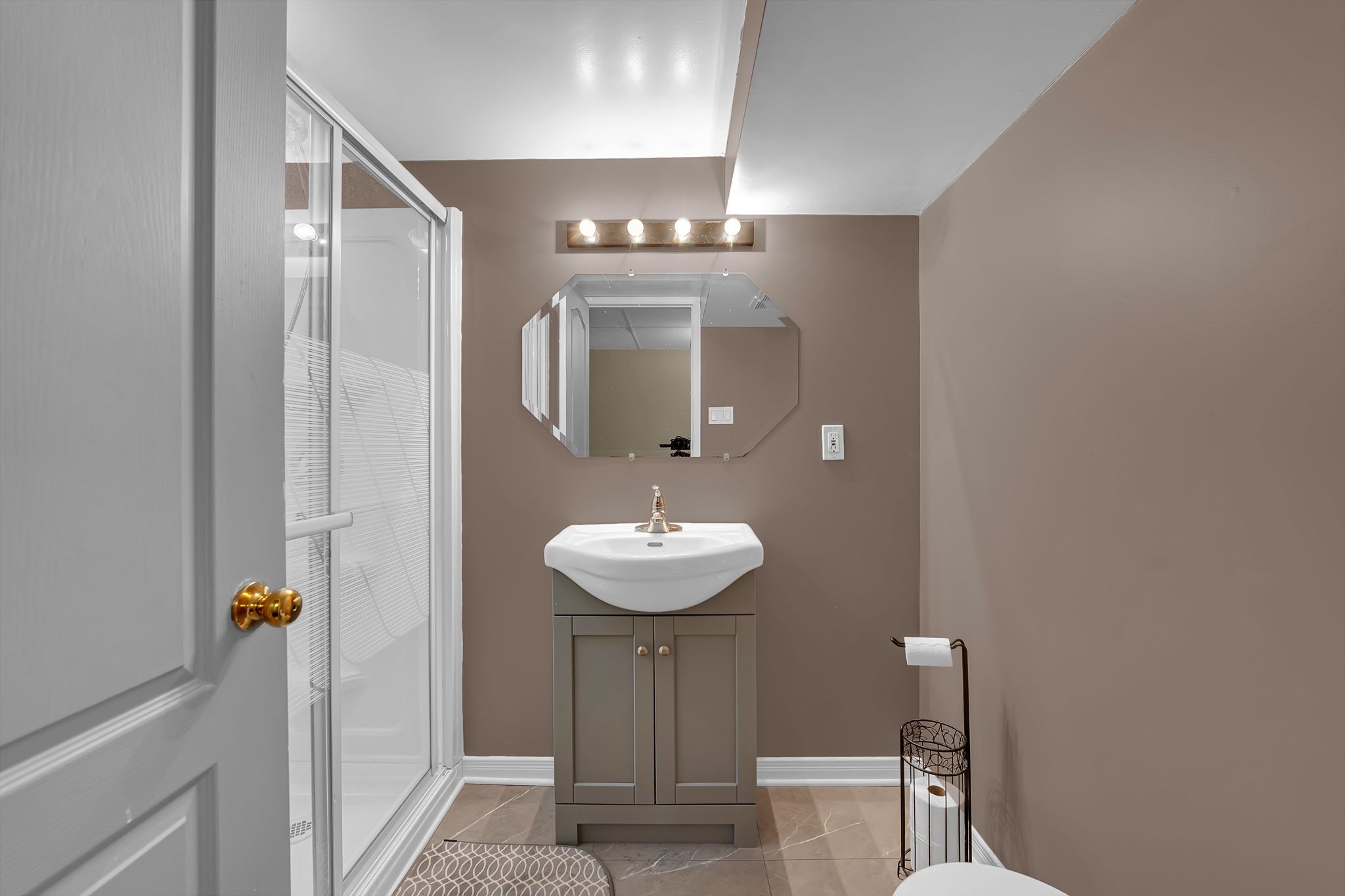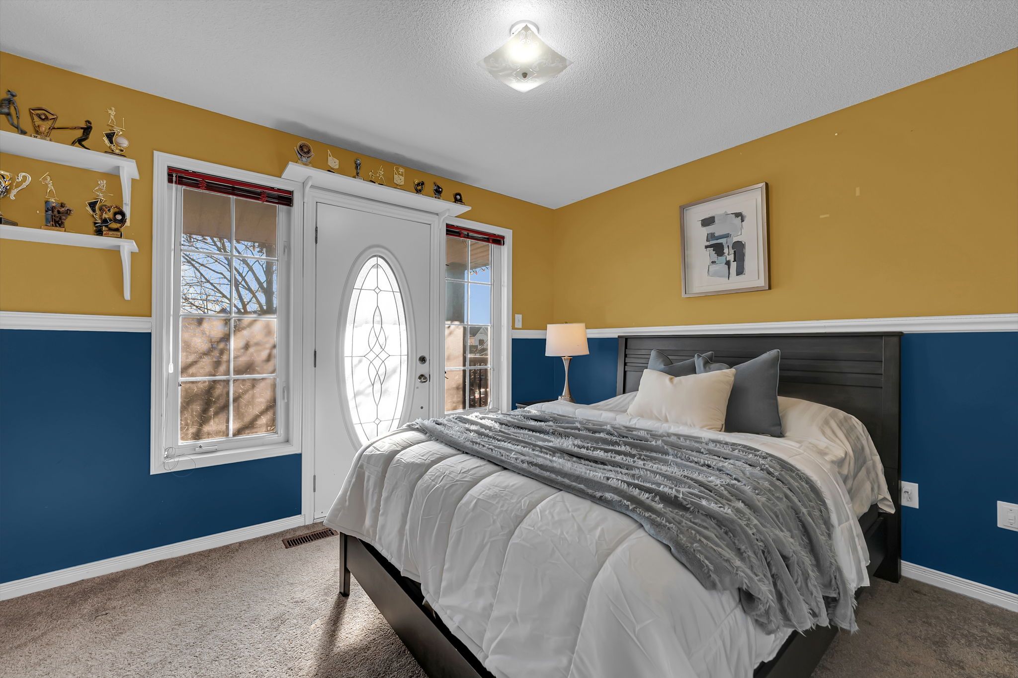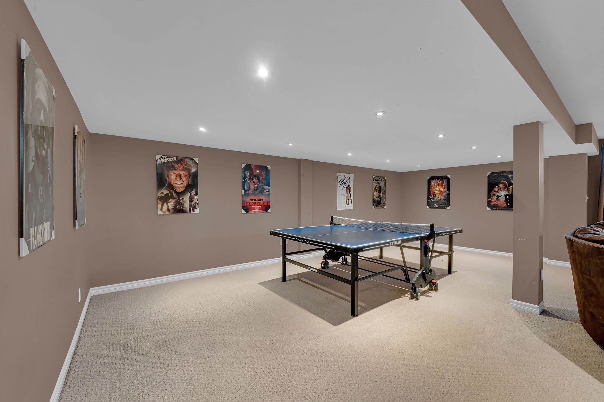 • Finished basement with large windows, fireplace, and extra bedroom for guests.