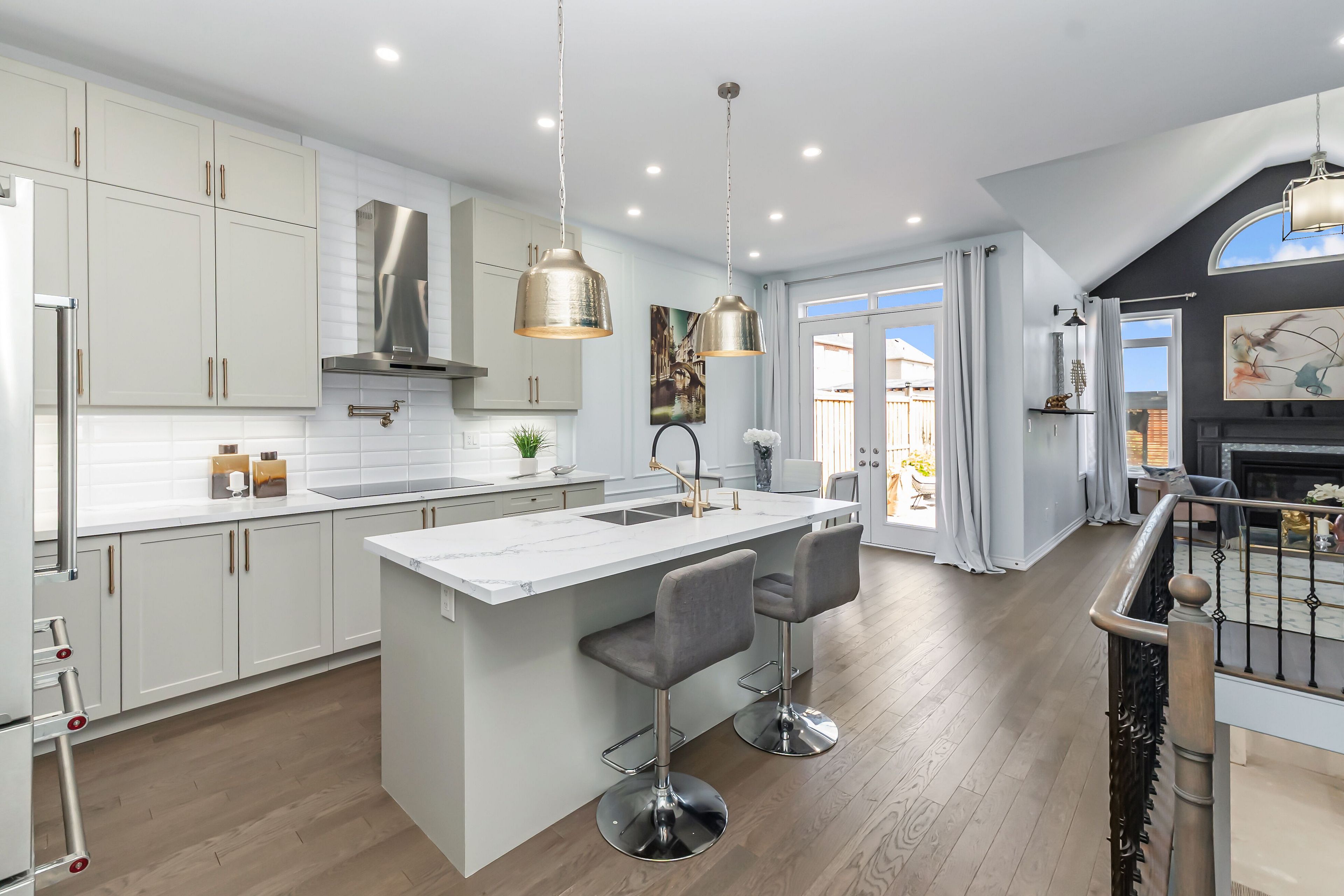Experience refined living in this exquisite primrose model, thoughtfully upgraded with designer touches throughout! Nestled on a premium 150-foot deep lot with upgraded stucco and stone exterior, this exceptional home offers modern curb appeal with professionally landscaped grounds. The backyard is an entertainers dream, featuring a built-in gas fireplace, pergola with 120v power, and a spacious patio area perfect for relaxing or hosting. Inside, the main level impresses with soaring vaulted and 10-foot ceilings, oversized doors and windows, smooth ceilings, and top-tier finishes throughout. The gourmet kitchen is a chefs delight, showcasing quartz countertops, built-in stainless steel appliances, induction cooktop, double oven, and warming drawer. The open-concept living area is filled with natural light from expansive windows and features a vaulted ceiling and cozy gas fireplace. Custom bathrooms offer tiled showers and floors, freestanding tub, and stone-topped vanities. The partially finished basement includes oversized windows, an electric fireplace, bathroom rough-ins, and a spacious cold cellar ready for your personal touch. Located on a quiet, no-through street just steps from parks and walking trails, this home perfectly blends elegance, comfort, and convenience. Sold under power of sale. Being sold as is, where is