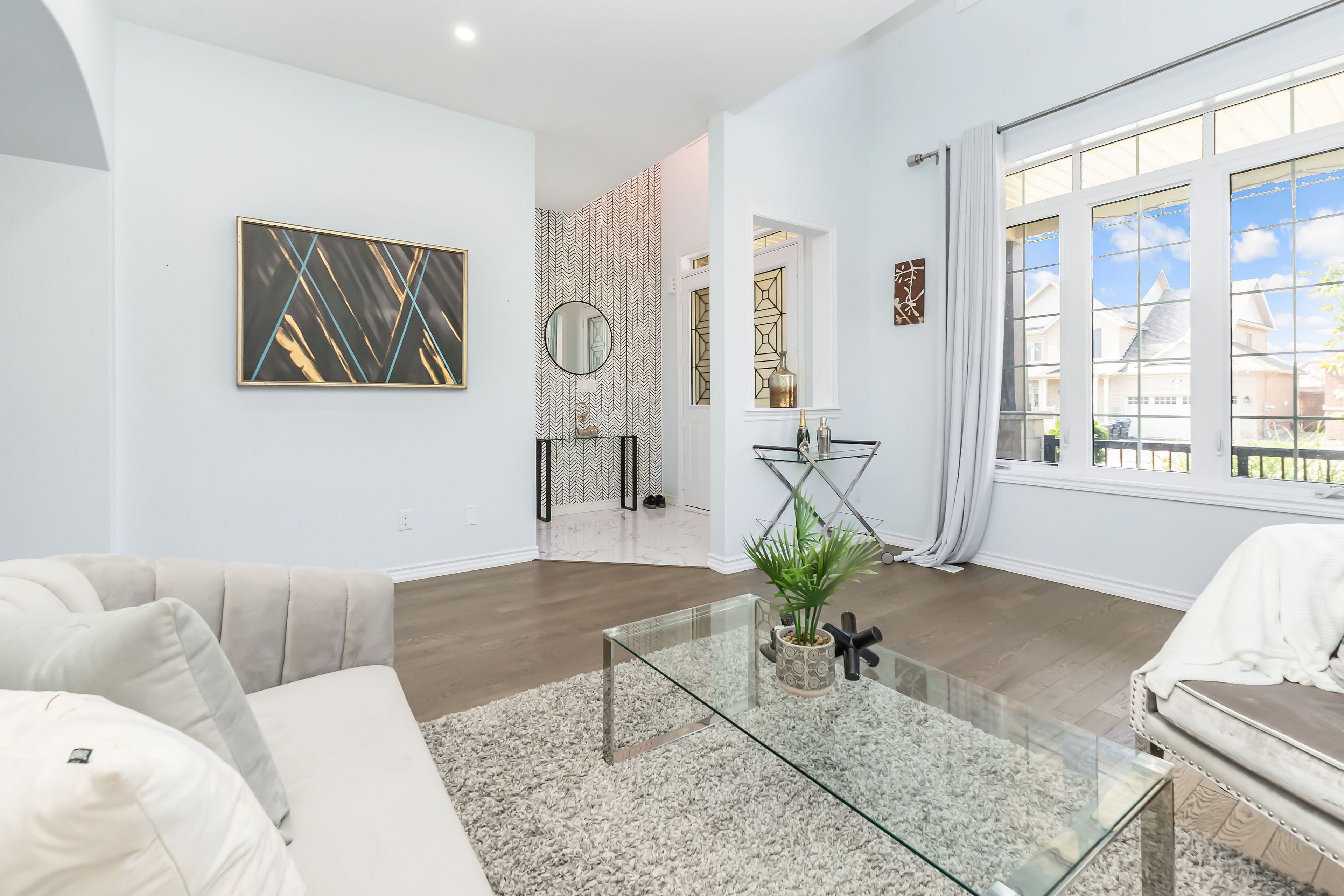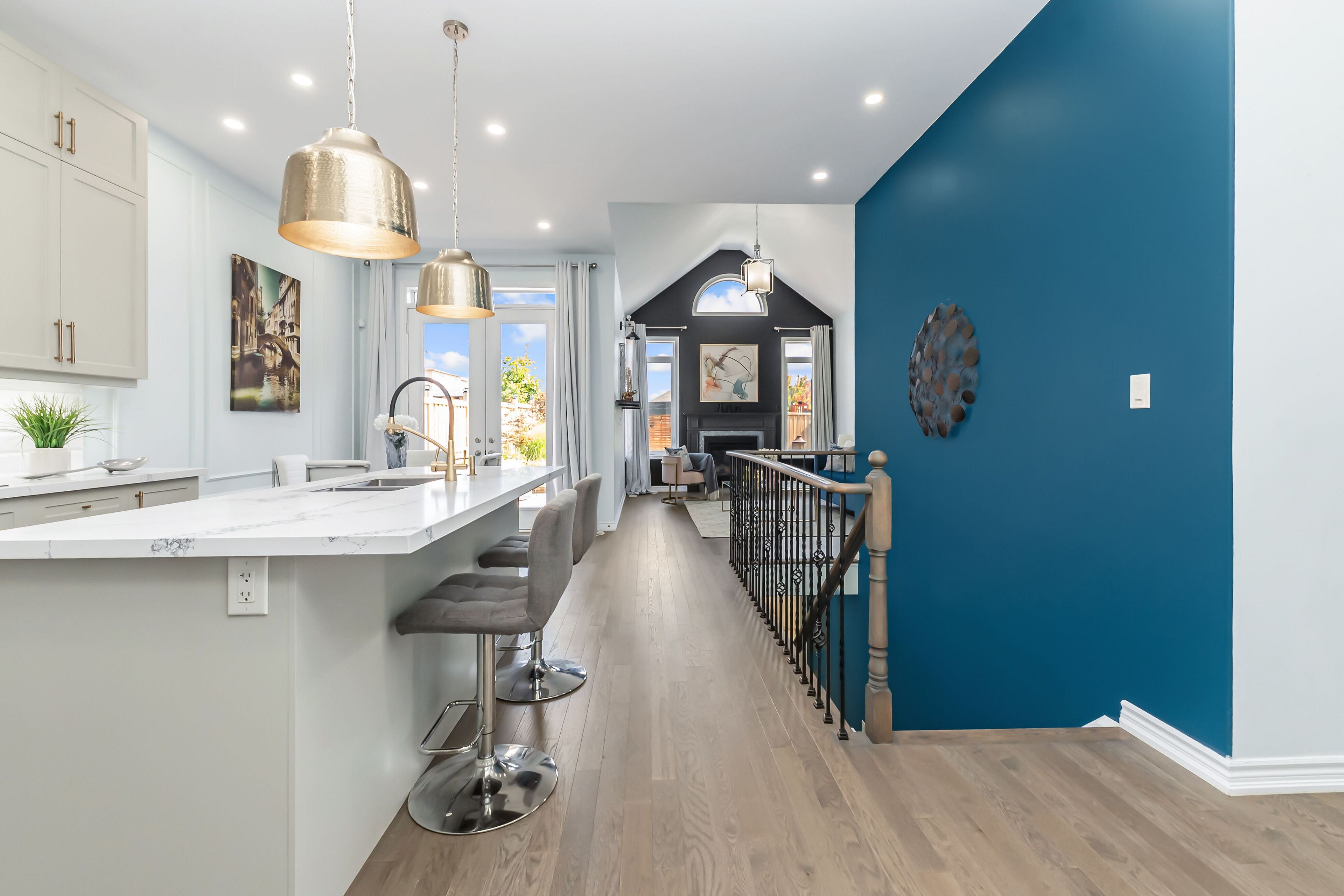 • Main level boasts vaulted ceilings and oversized windows for natural light.