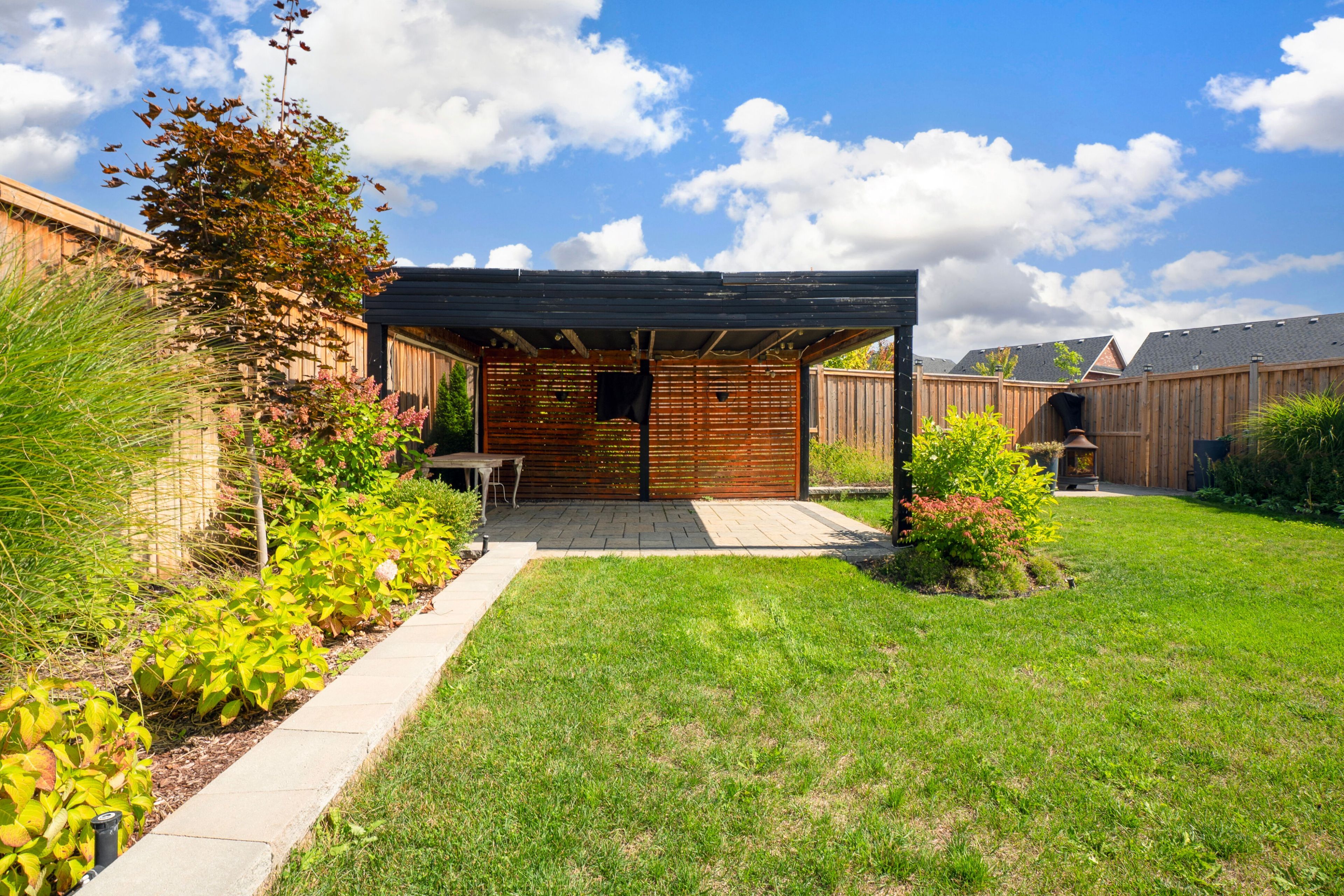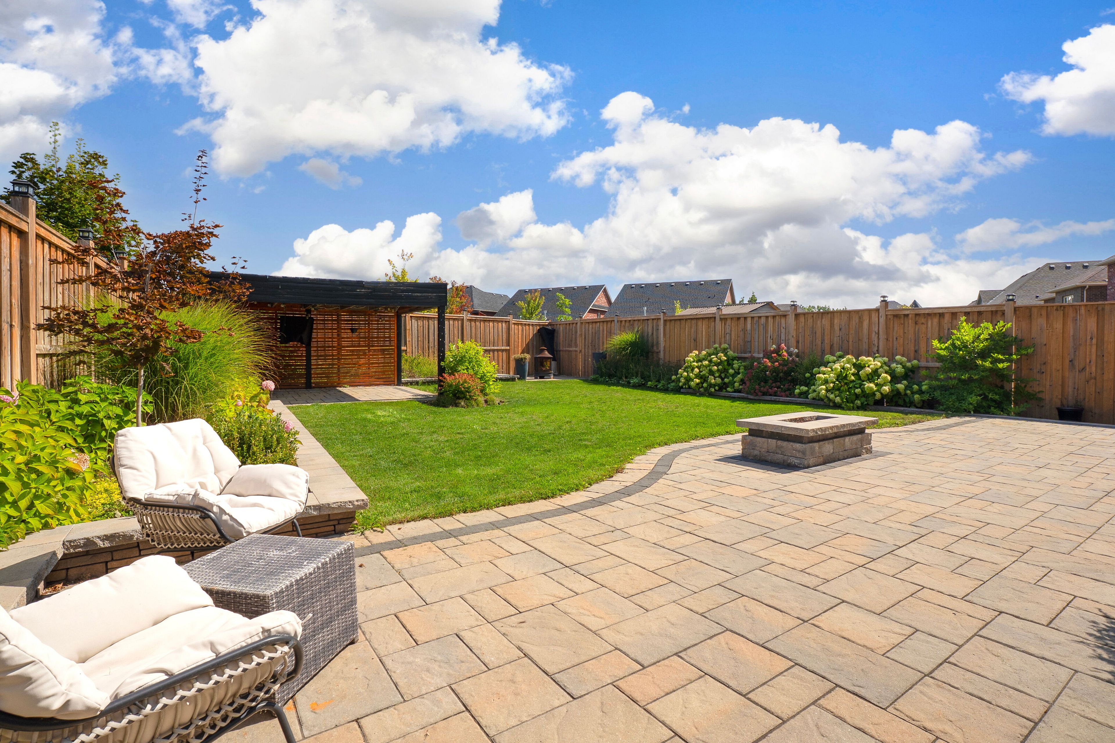 • Backyard features a built-in gas fireplace and spacious patio for entertaining.