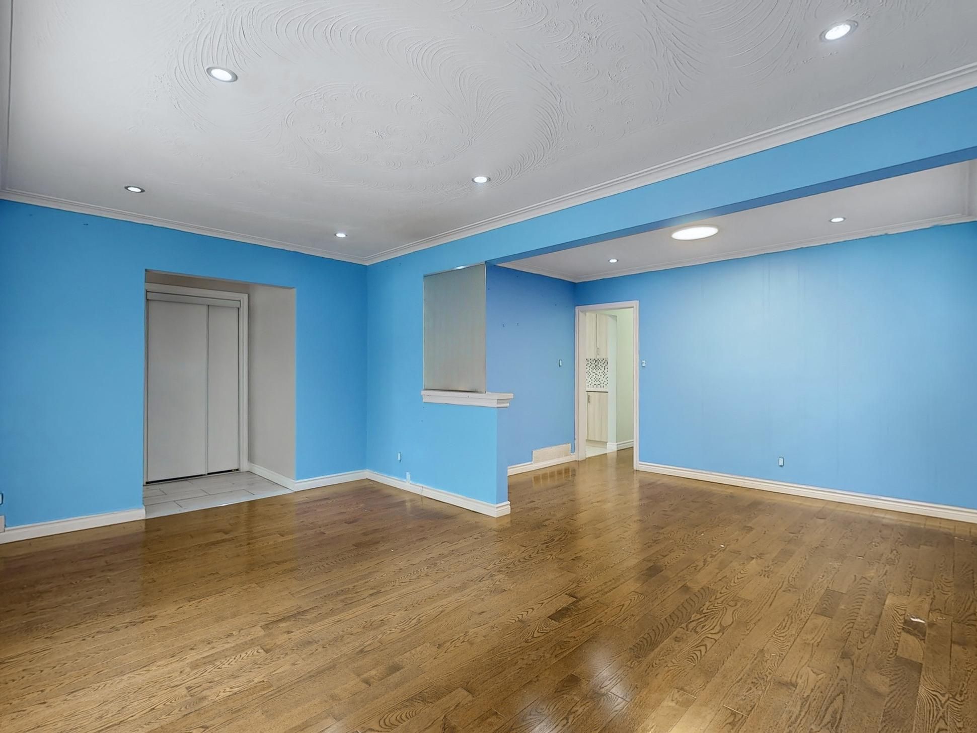This bright and spacious open-concept bungalow has been thoughtfully upgraded for modern living. Featuring hardwood floors on the main level. The sleek kitchen is equipped with granite countertops, while the open living and dining area is illuminated by a large bow window for more sun-filled in main floor, with natural light. With 2 full bathrooms (convenience is a priority) on the main floor. Separate laundry setups (one on each floor). Excellent location- easy access to highways 401/404/ ttc / go station, shopping, and restaurants. Includes three parking spot **extras** fridges, stoves, washers, dryers, 1 backyard sheds.