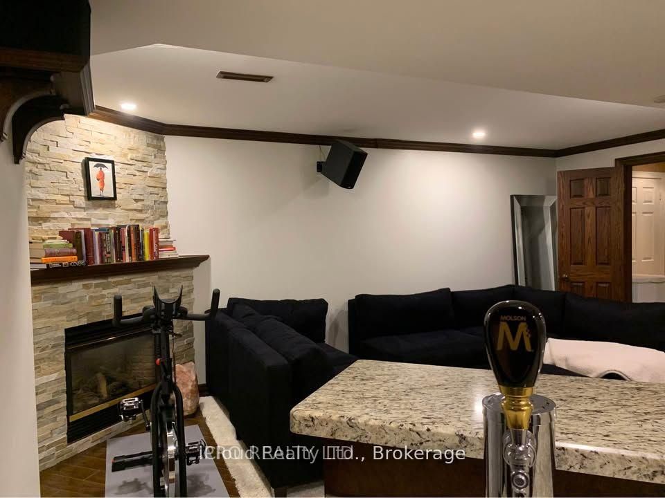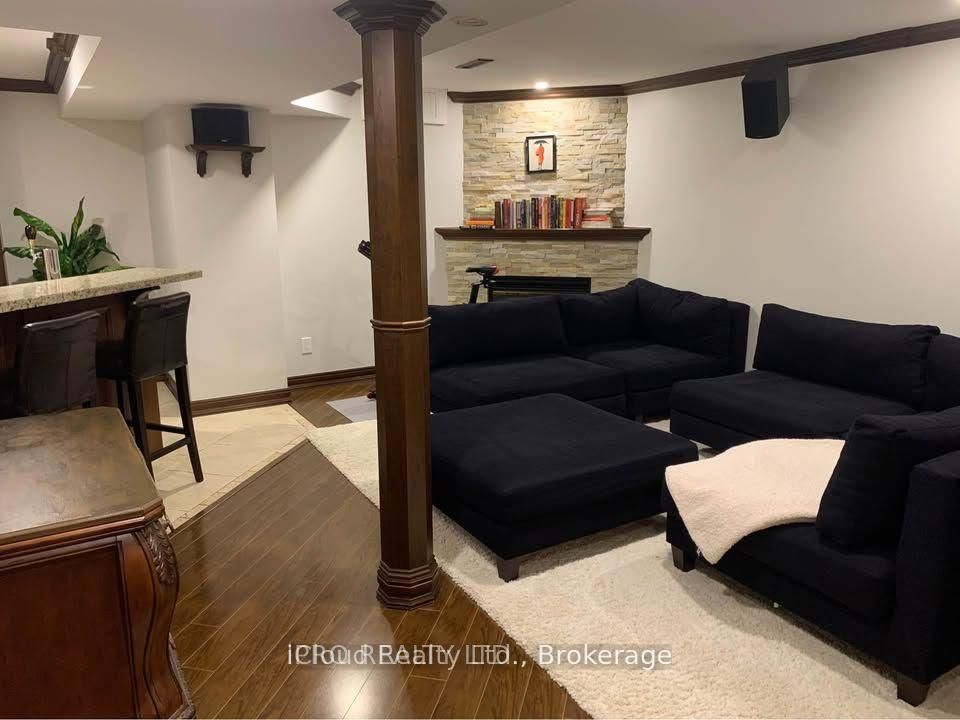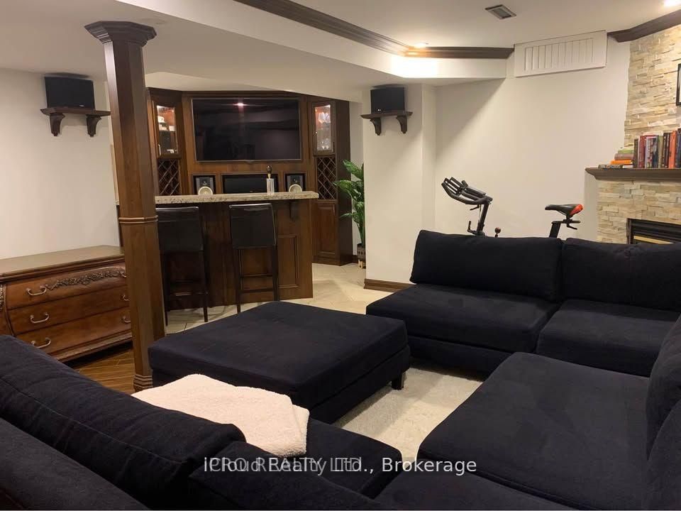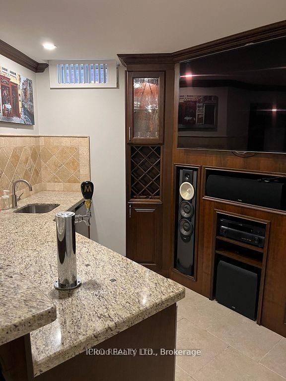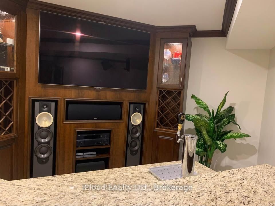 • Finished basement includes a wet bar and built-in entertainment unit.