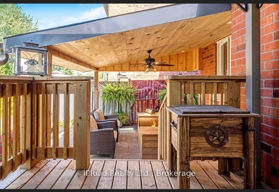 Upgraded home, 3 bedrooms, 3 bathrooms, fully detached. Totally done up from professional landscaping and built in irrigation system to high end bathrooms, custom stonework in powder room and kitchen, master bedroom with custom built in walk in closet, second bedroom with barn door and wall mounted t. V. Finished basement with custom wet bar and large built in entertainment unit (includes paradigm surround sound speaker system). Wet bar area includes sink, wine display. Cozy living room and formal dining room with brazilian hardwood floors. Gourmet kitchen, granite counter top with s/s kitchen aid appliances and built in surround sound system as well as walk out to deck and bbq area. Backyard is an entertainer's dream with large weber bbq, fire pit, mounted tv and lots of privacy. Upgraded windows, exterior doors and garage door. California shutters on every window.