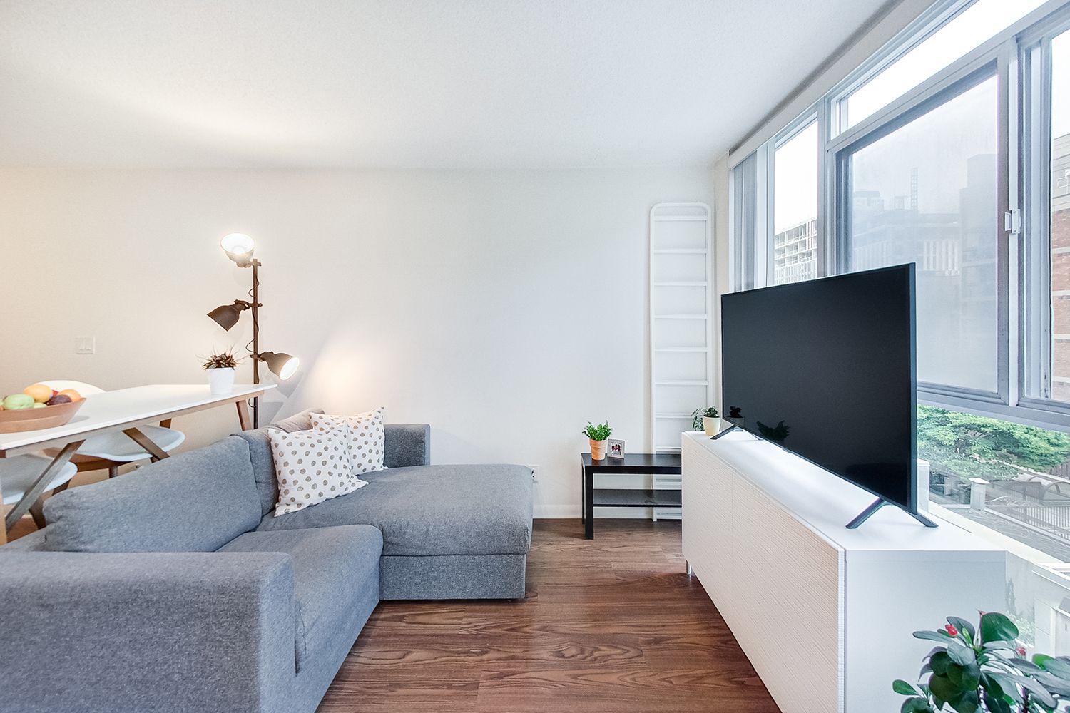 Gorgeous clean and bright luxury one bedroom condo at 9t6! Great layout with floor to ceiling windows, fresh paint & custom blinds. Suite in excellent condition, overlooking private gardens away from the street with no noise. Incredible amenities. Gynm, 24 hr concierge, 3rd floor terrace w/bbq's hot tub, party room, library, guest suite & visitor parking. Walkscore 100! Walk to eaton centre, toronto general, mount sinai, sick kids, chinatown, queen west, uoft, ryerson & the financial & entertainment districts. 2 minute walk to subway stations and 24 hr streetcars. Parking is available upon request.