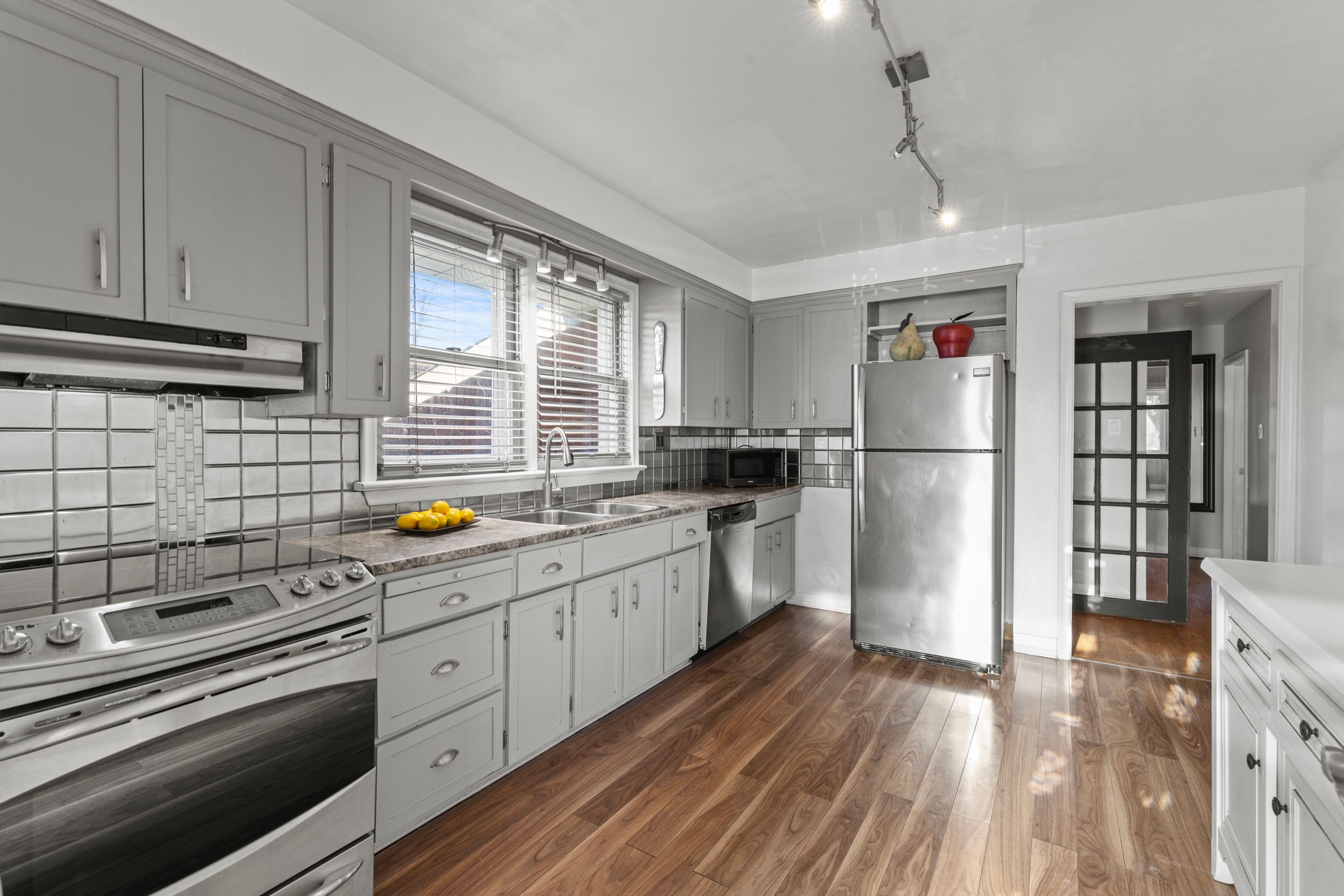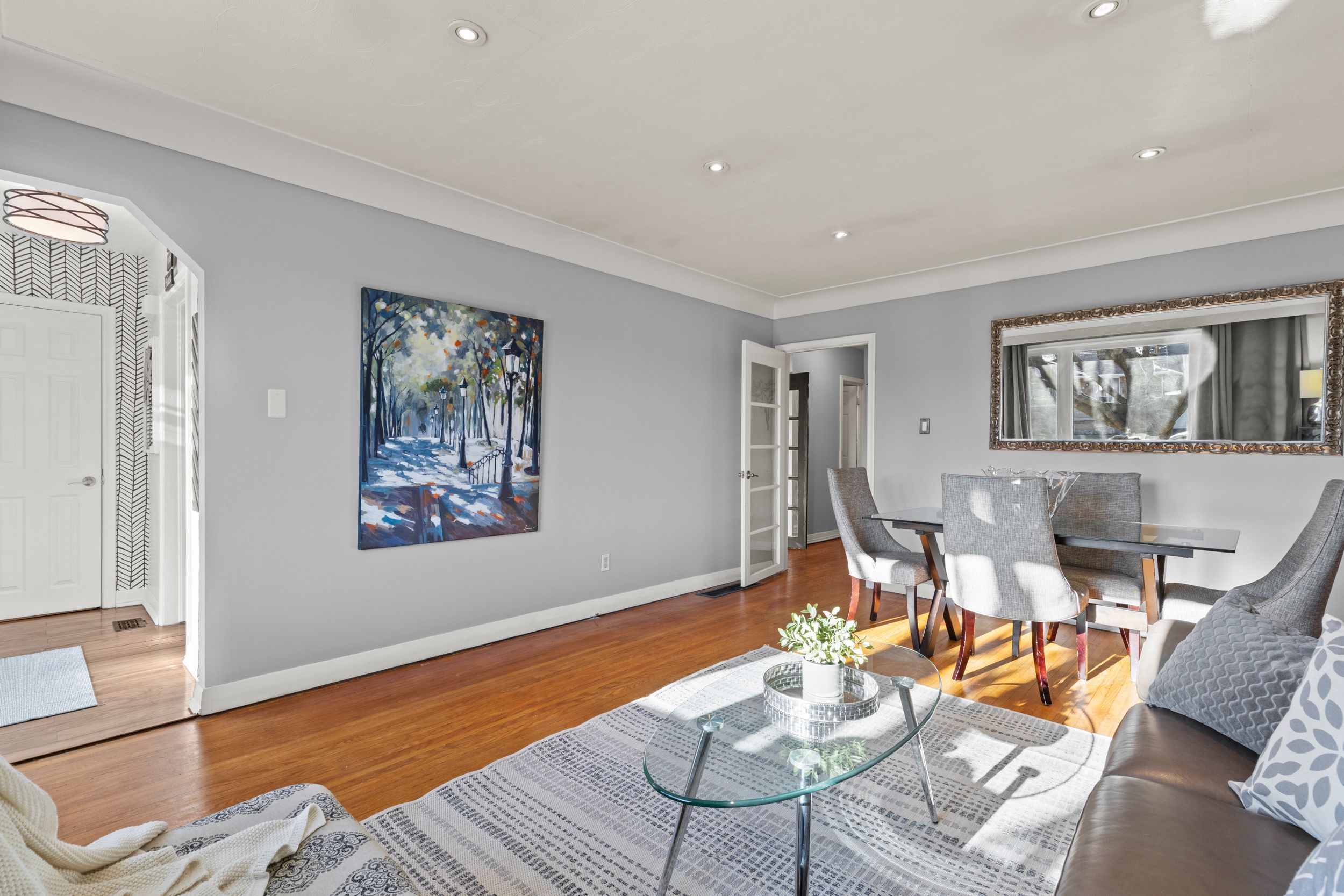 • Bright open-concept living and dining area with three spacious bedrooms.