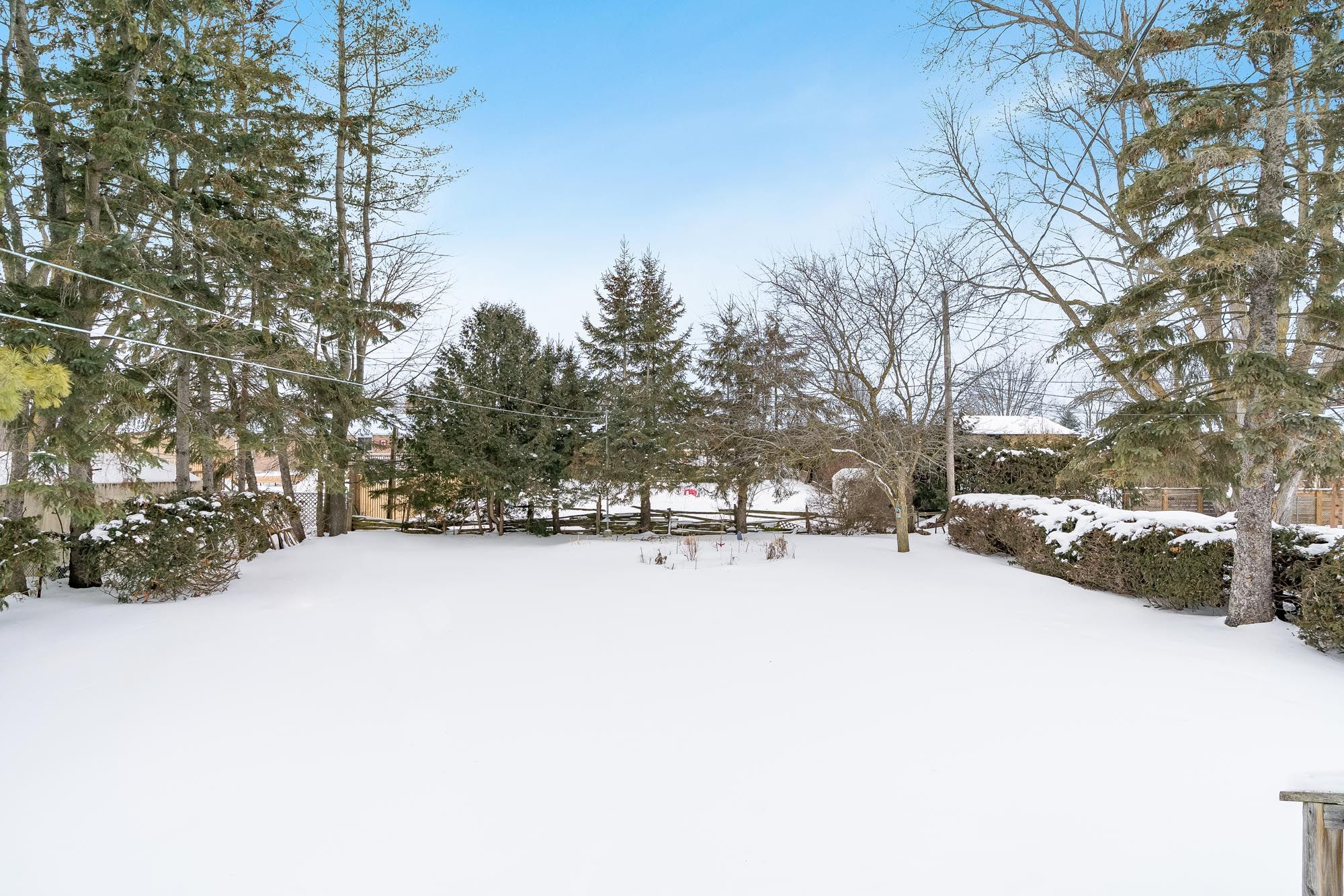 • Generously sized lot with mature trees offering privacy and outdoor space.