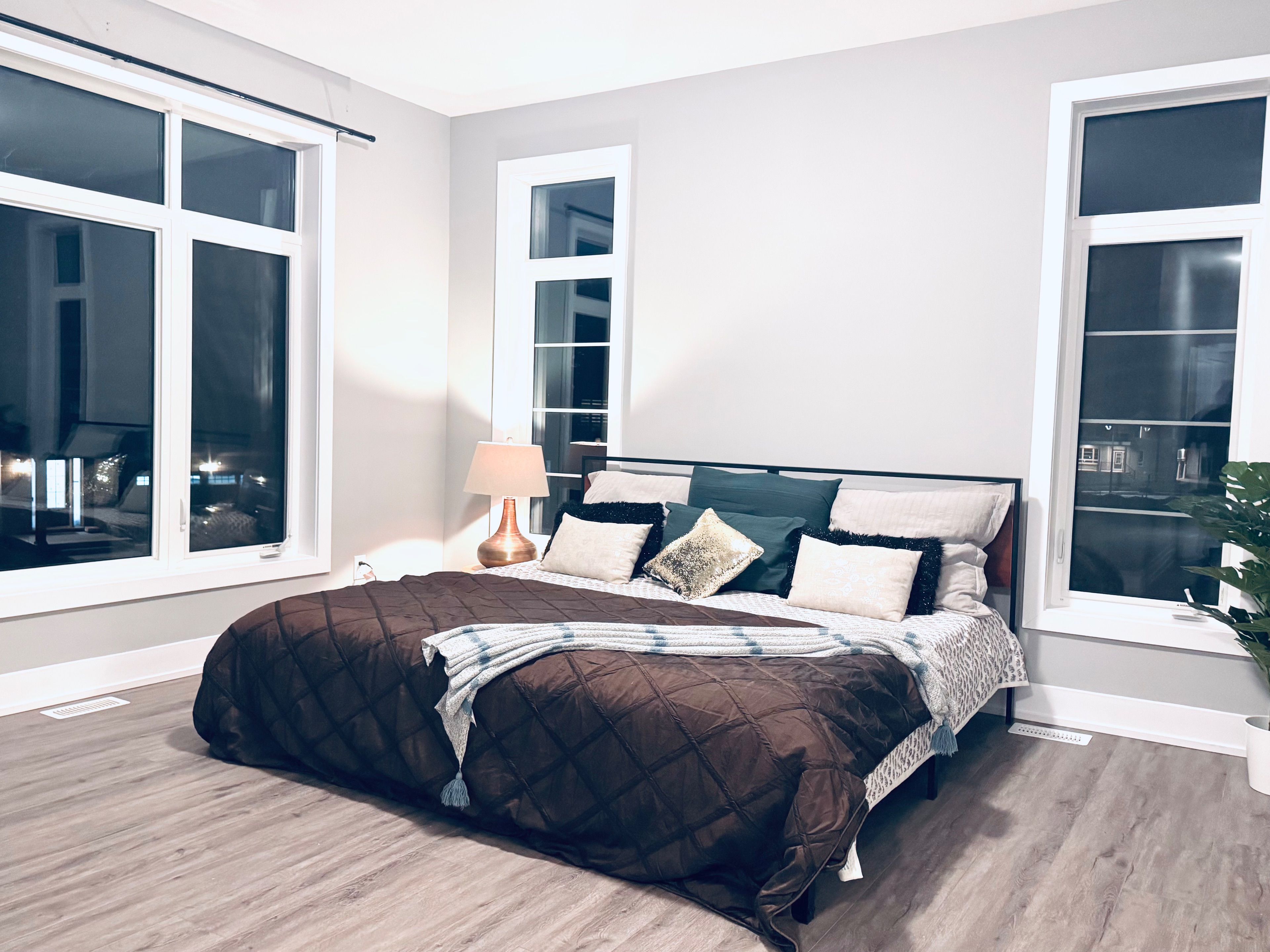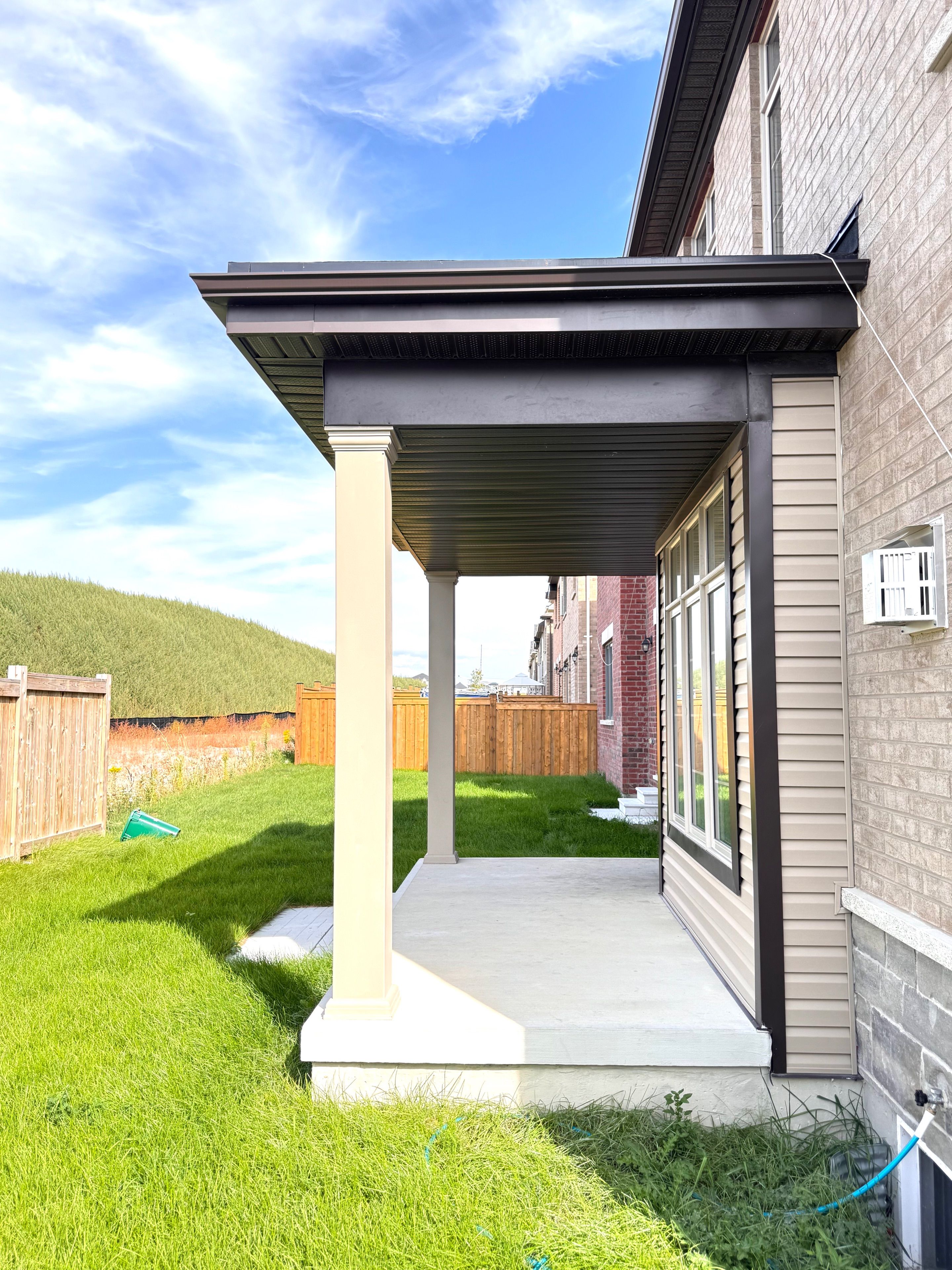 Welcome to this premium 4+1 bedroom all-brick and stone premium corner-lot double garage detached home in the prestigious kedron community of north oshawa. Built in november 2023 on a rare 62' frontage lot, this property features over $150,000 in upgrades including 9' smooth ceilings, premium flooring, upgraded oak staircase with iron pickets, sun-filled family room with upgraded gas fireplace with elegant mantel in living room, and an open-concept dining area with walk-out to a fully upgraded loggia-style covered porch-a beautifully finished outdoor living space enhanced with approximately $40,000 in custom upgrades for year-round enjoyment. The chef-inspired kitchen offers extended custom cabinetry, granite countertops, stylish backsplash, premium built-in stainless steel appliances, a centre island with breakfast bar, champagne bronze hardware, and a dual-fuel compatible cooktop connection (electric or gas) with a gas line installed. A spacious main-floor office/den provides flexible living space. Upstairs features a luxurious primary suite with walk-in closet and spa-like 5-piece ensuite with freestanding soaker tub and frameless glass shower, along with three additional bedrooms and second-floor laundry. The full basement includes a cold room and offers endless potential. Additional highlights include direct garage access, private double driveway for 4 vehicles, hrv system, energy-efficient mechanicals, central vacuum, smart home package (video doorbell, programmable thermostat, water leak sensor), and full tarion warranty. Ideally located minutes from durham college, ontario tech university, costco, shopping, restaurants, top-rated schools, lakeridge hospital, parks, hwy 407/7, and backing onto a future school site with no rear neighbours.