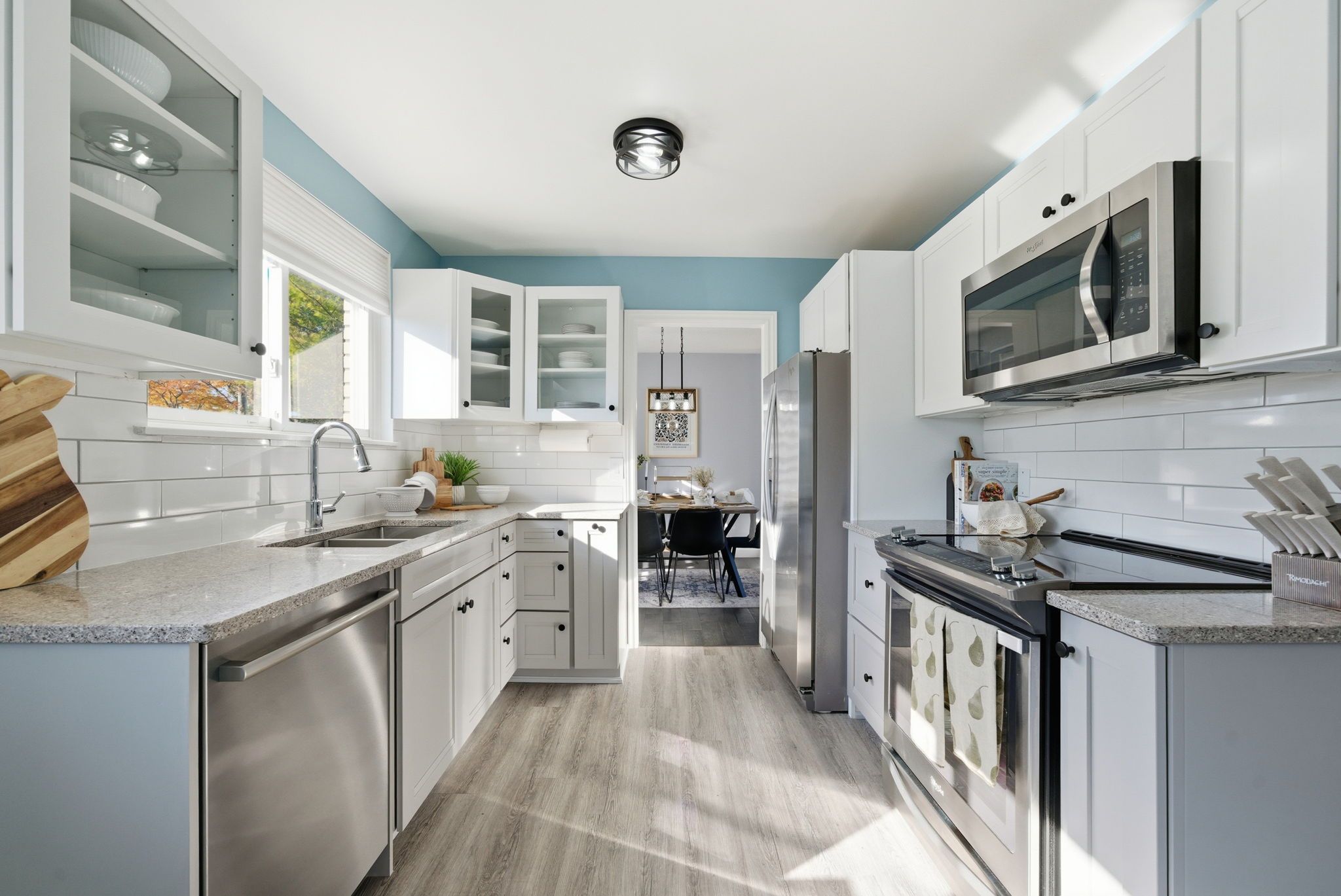 • Spacious, updated kitchen opens to dining and living areas for entertaining.