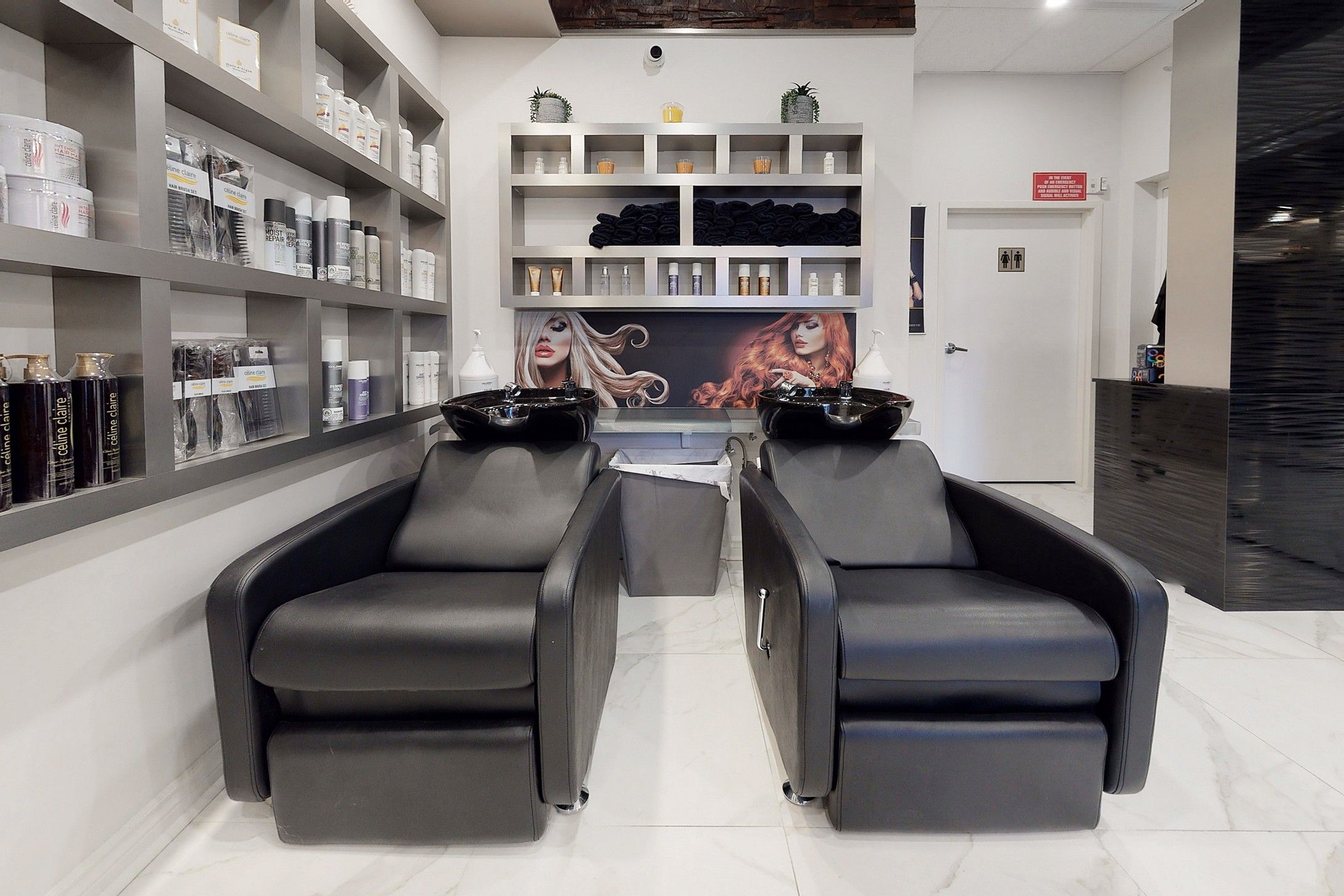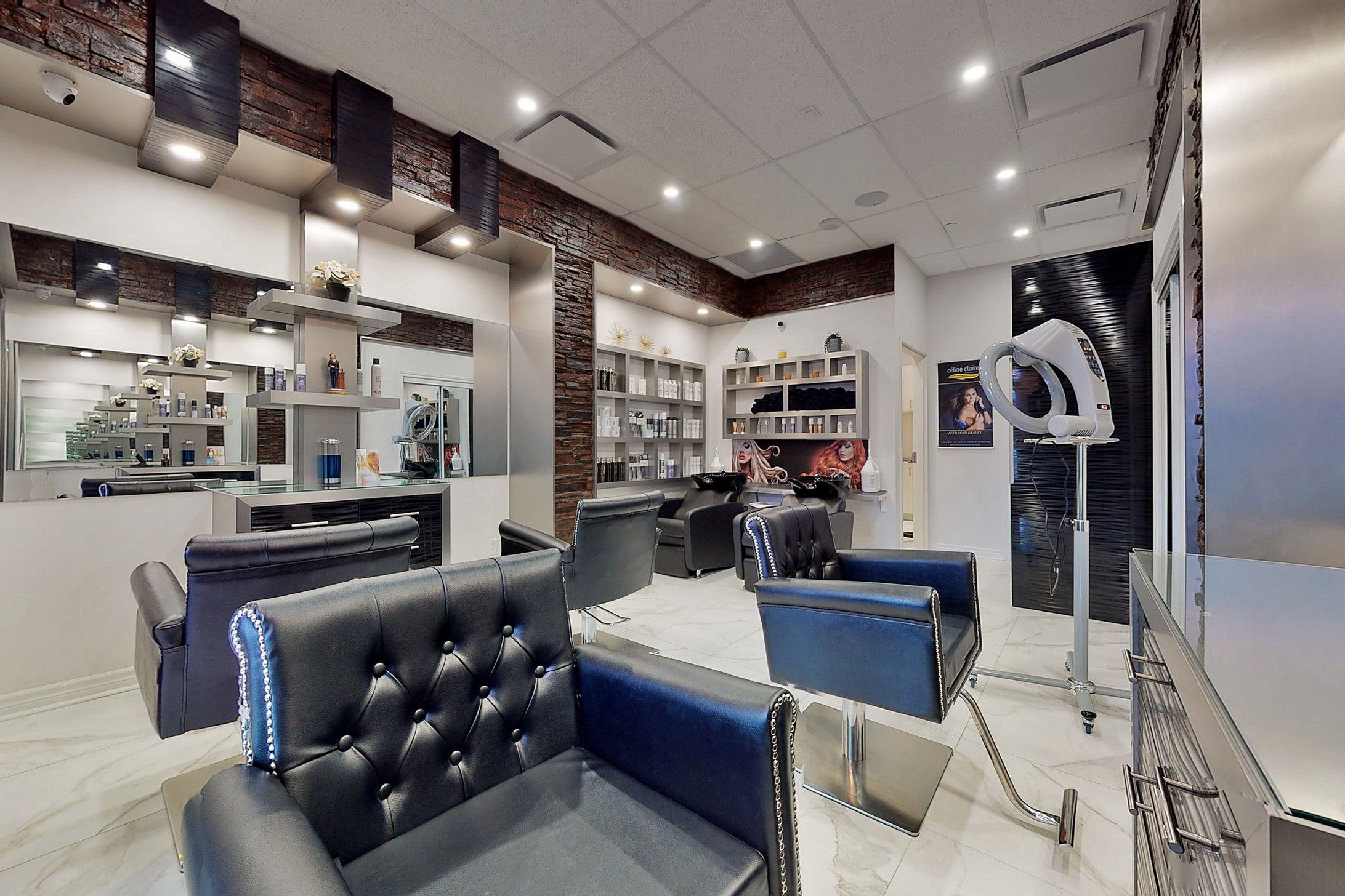 Rare turnkey opportunity in the heart of richmond hill's sought-after north richvale community! This listing offers the unique chance to acquire both a prime commercial condo property and an established, fully operational hair salon business for one price. Situated on bustling yonge street with excellent visibility , this 650 sq. Ft. Unit is surrounded by high-traffic anchor tenants including t&t supermarket, shoppers drug mart, and major banks. The unit features a modern configuration with a welcoming reception, spacious styling area, private office, and bathroom. Perfect for beauty professionals looking to stop paying rent and start building equity in their own business and property.