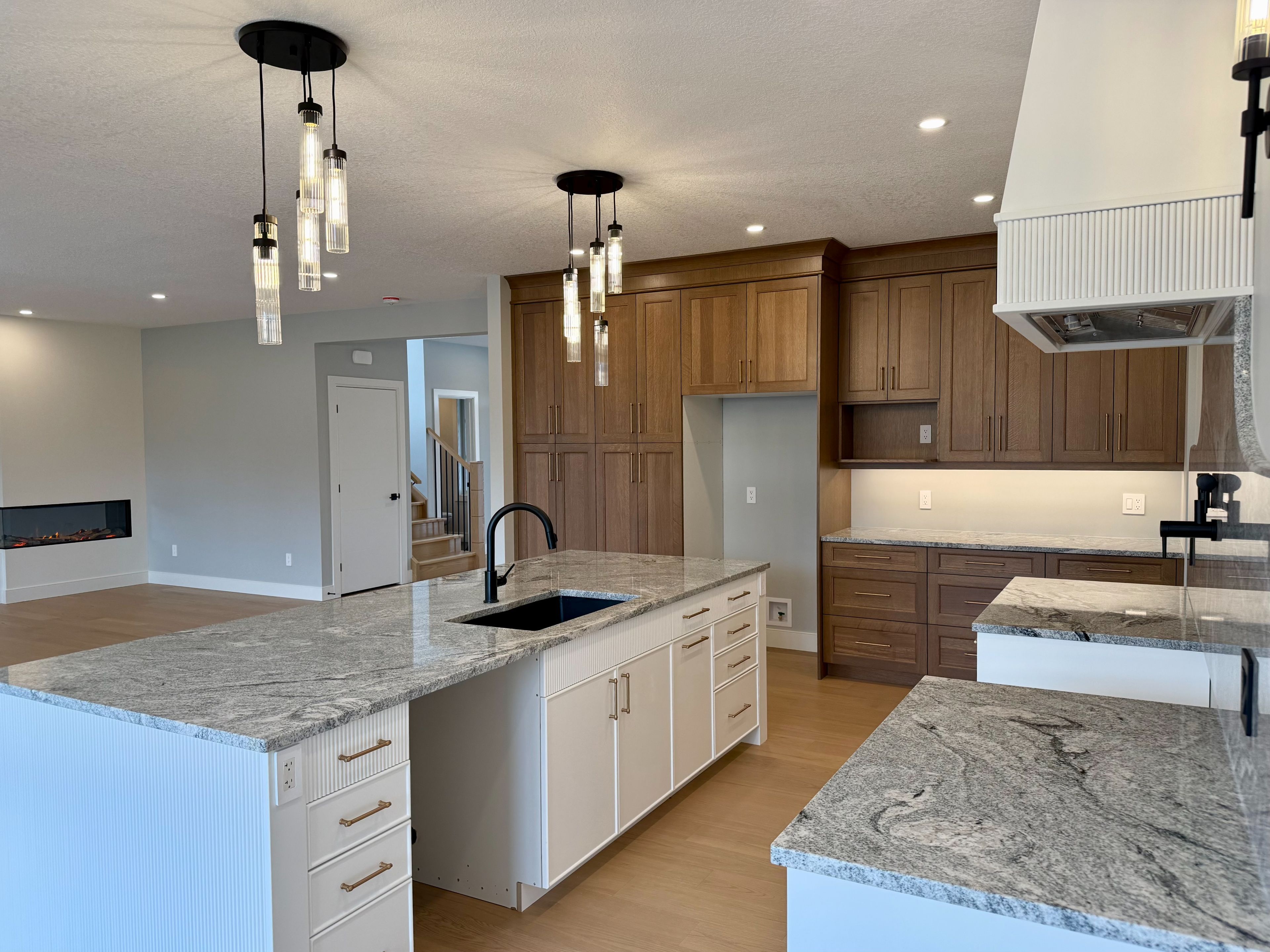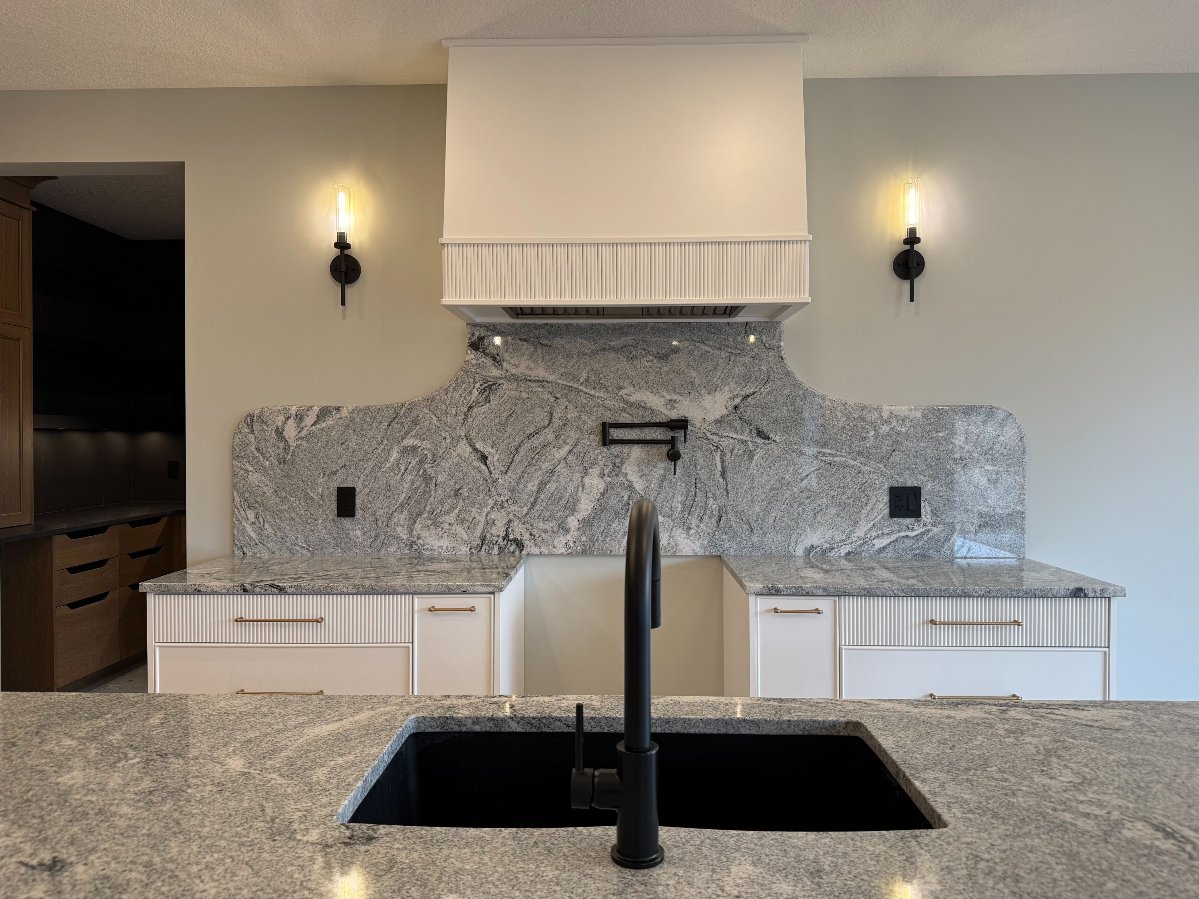 • Gorgeous kitchen with granite backsplash, large island, and walk-in pantry.