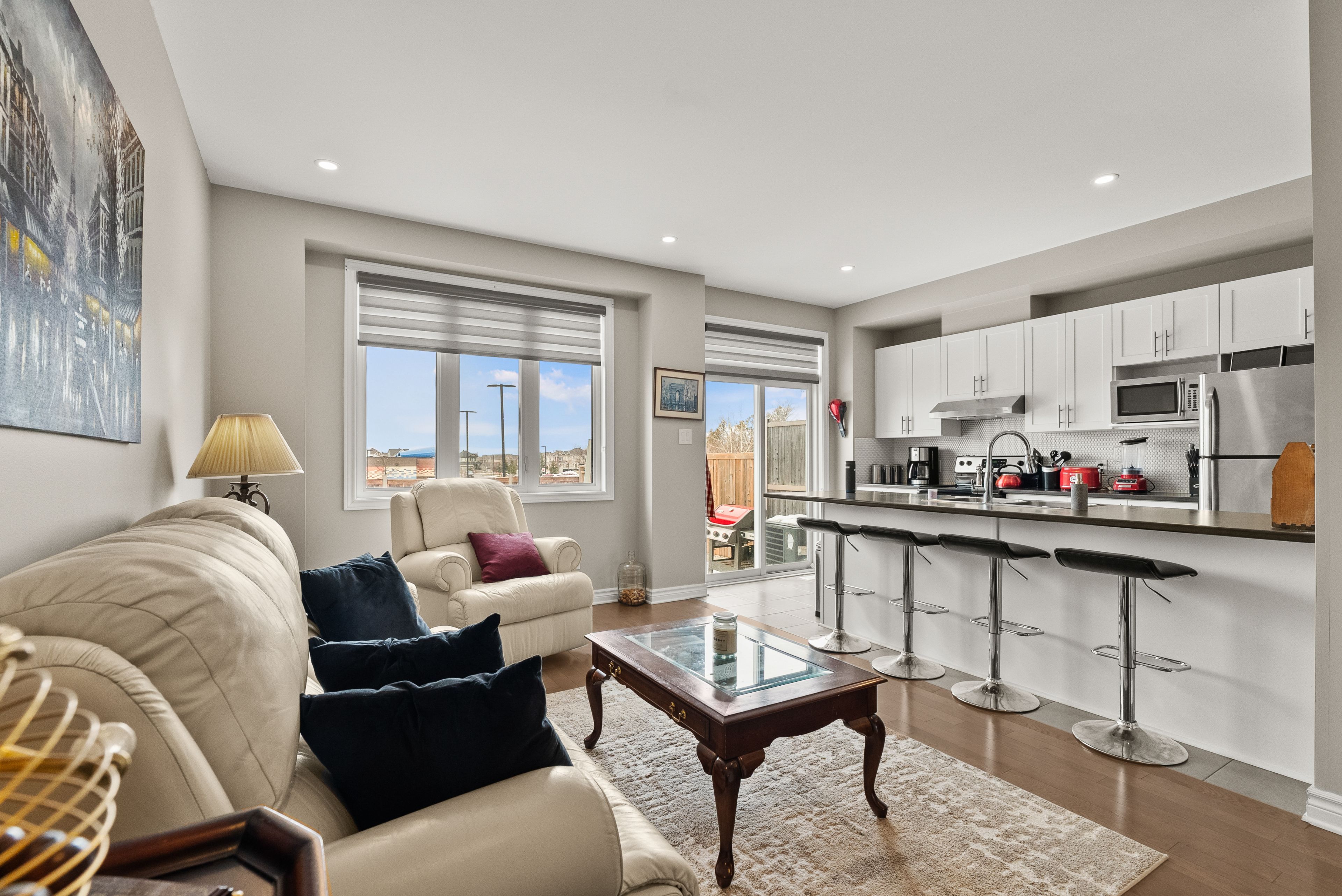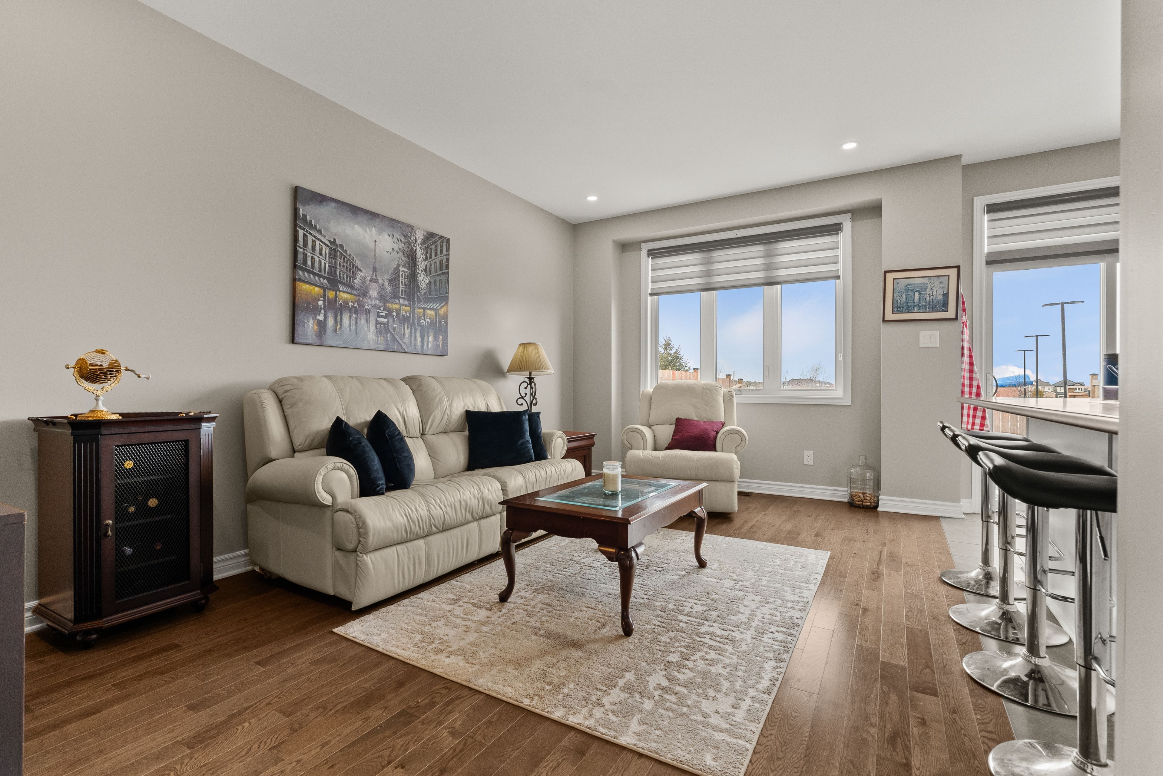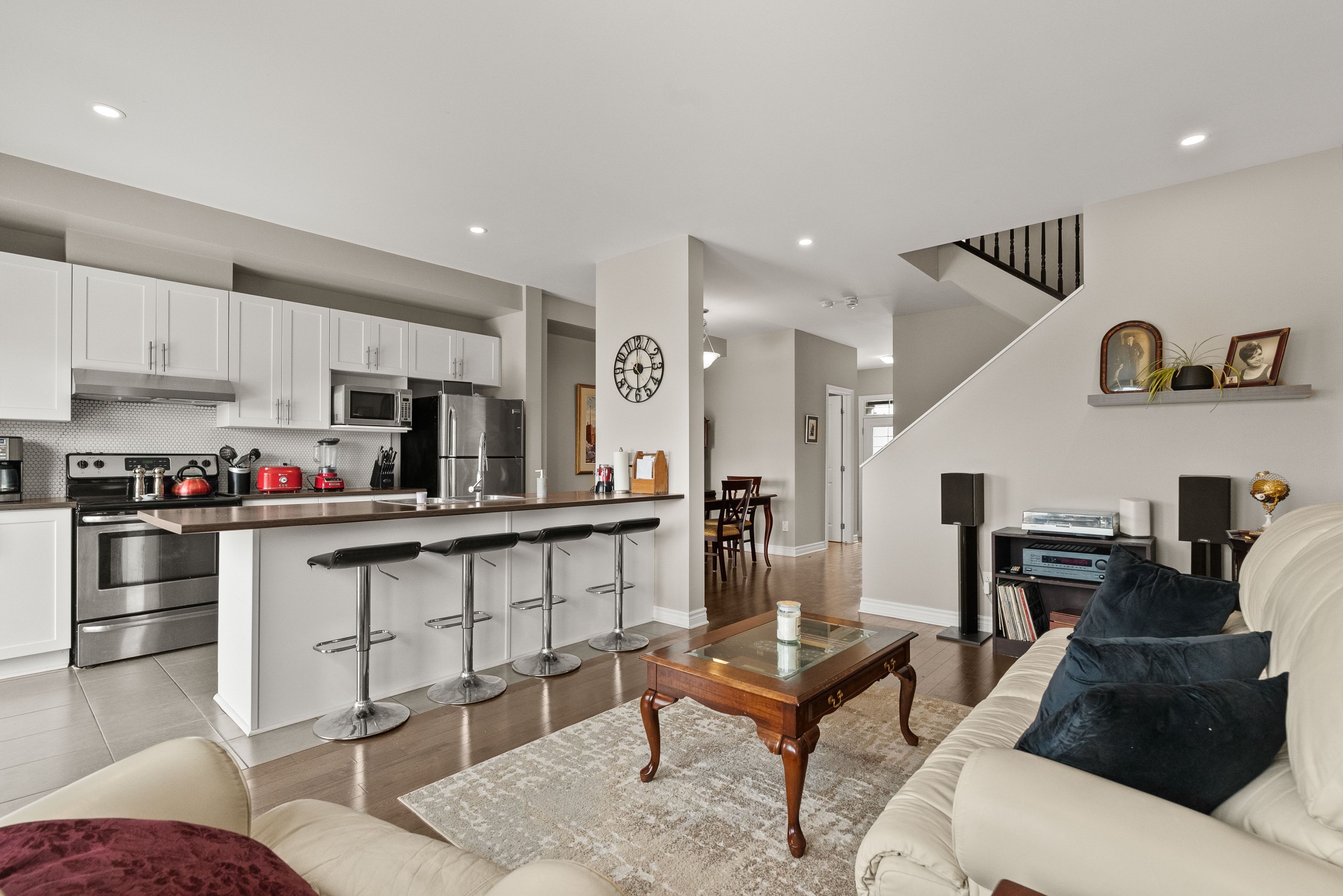 • Bright open-concept living and dining area with beautiful hardwood flooring.