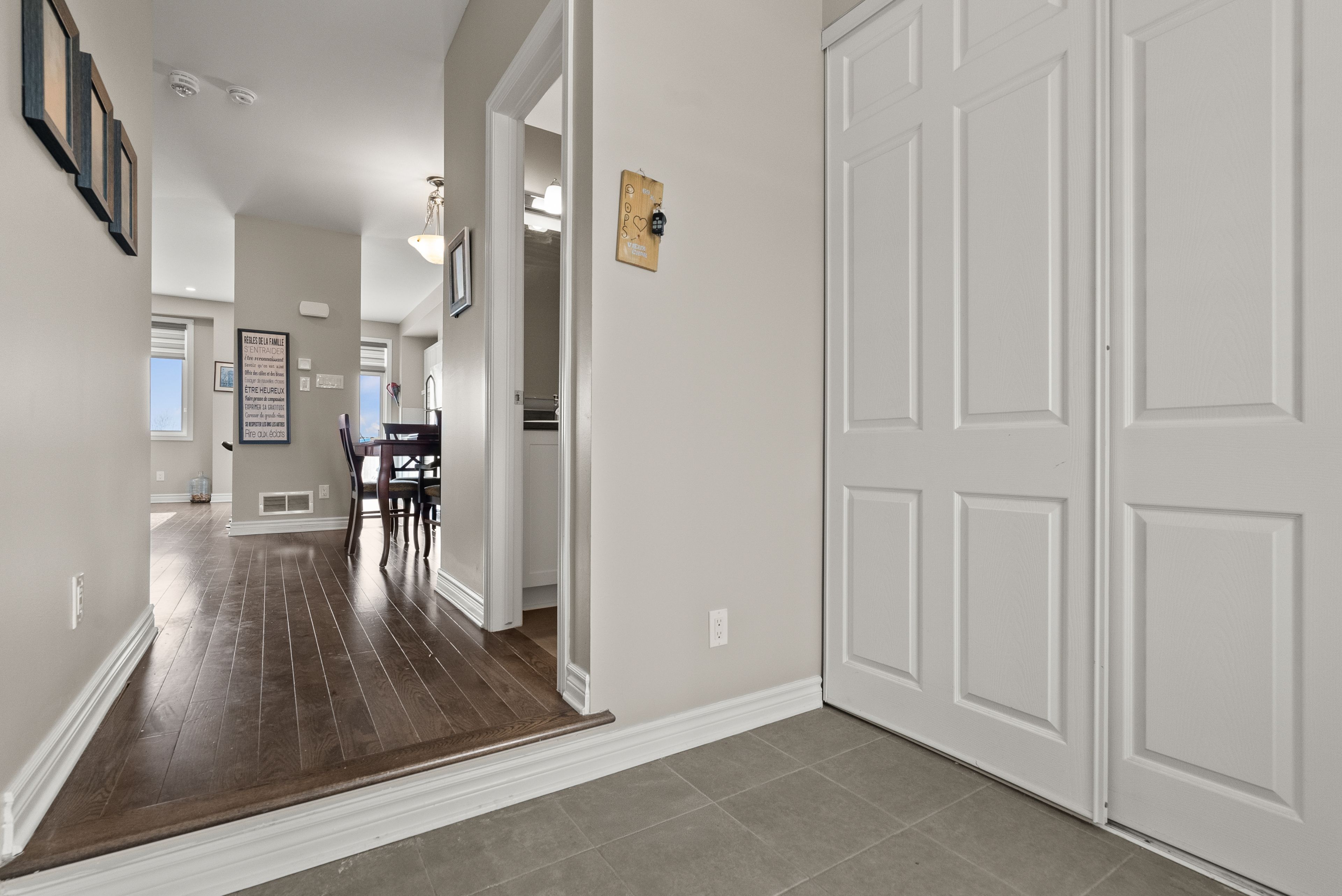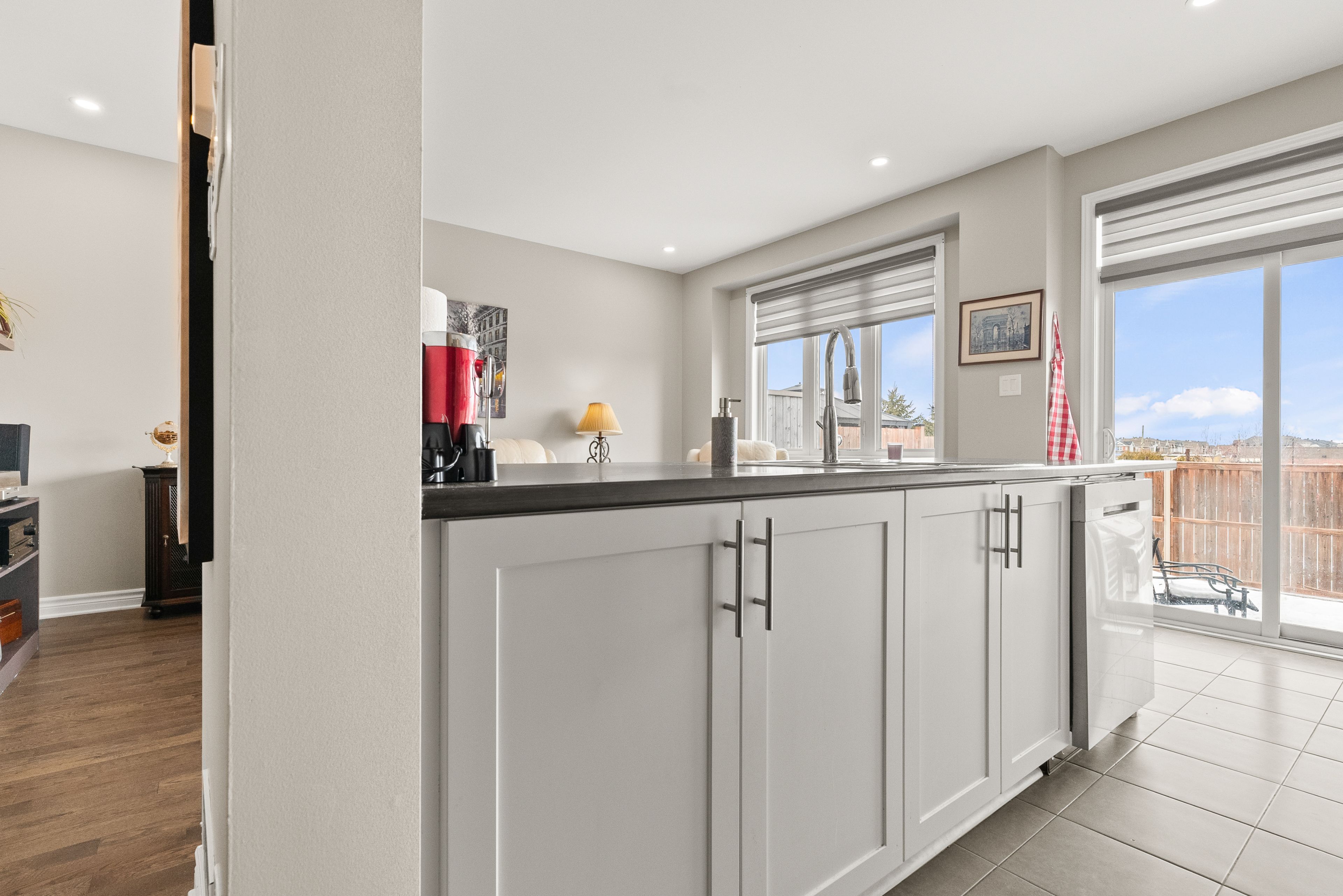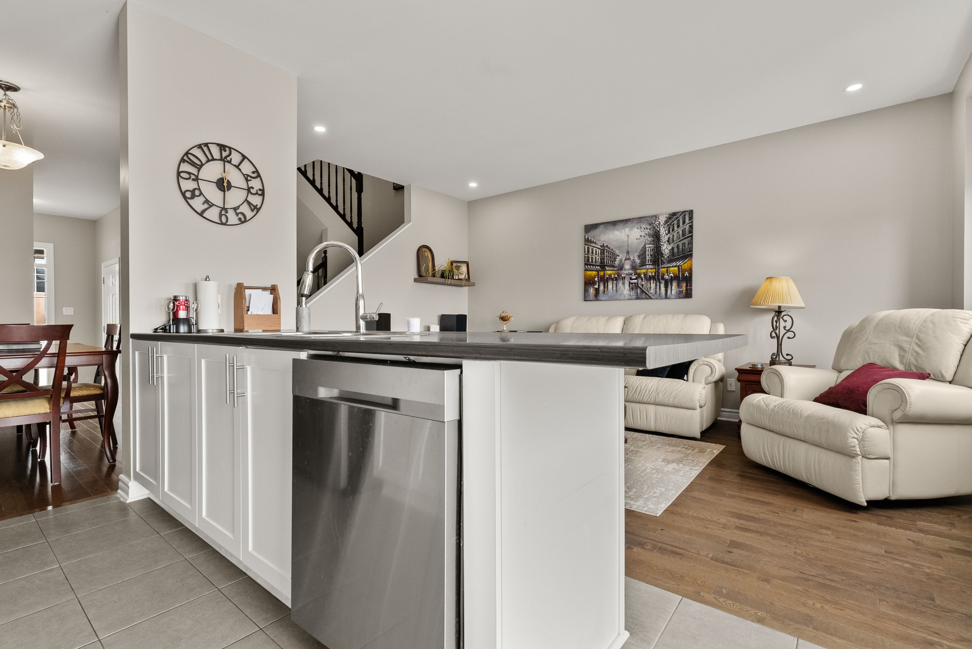• Bright open-concept living and dining area with beautiful hardwood flooring.