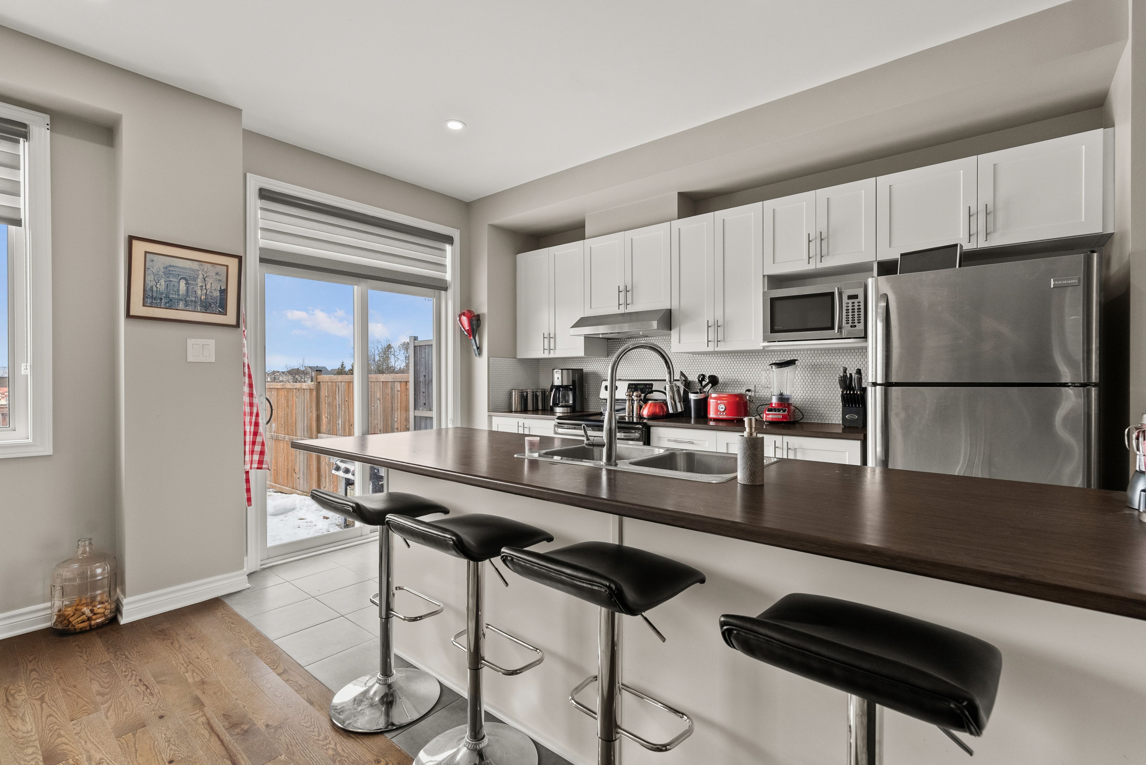 Come and discover this charming two-storey townhome offering 3 bedrooms and 2. 5 bathrooms, perfectly suited for comfortable living. The home features gorgeous hardwood flooring across the main level and a bright, open-concept living and dining area-ideal for both everyday living and entertaining. The beautiful kitchen is highlighted adding a modern touch. Upstairs, the spacious primary bedroom includes a walk-in closet and a private ensuite, while two additional well-sized bedrooms share a full main bathroom. The finished basement provides a versatile family room along with plenty of storage space. Enjoy added privacy with no direct front or rear neighbours, as the home is ideally positioned with schools both in front and behind. The fully fenced backyard offers a great space for relaxing or outdoor activities. Perfect for young couples, growing families, or retirees, this home is conveniently located close to schools, recreational facilities, public transit, and more. A wonderful opportunity you won't want to miss!