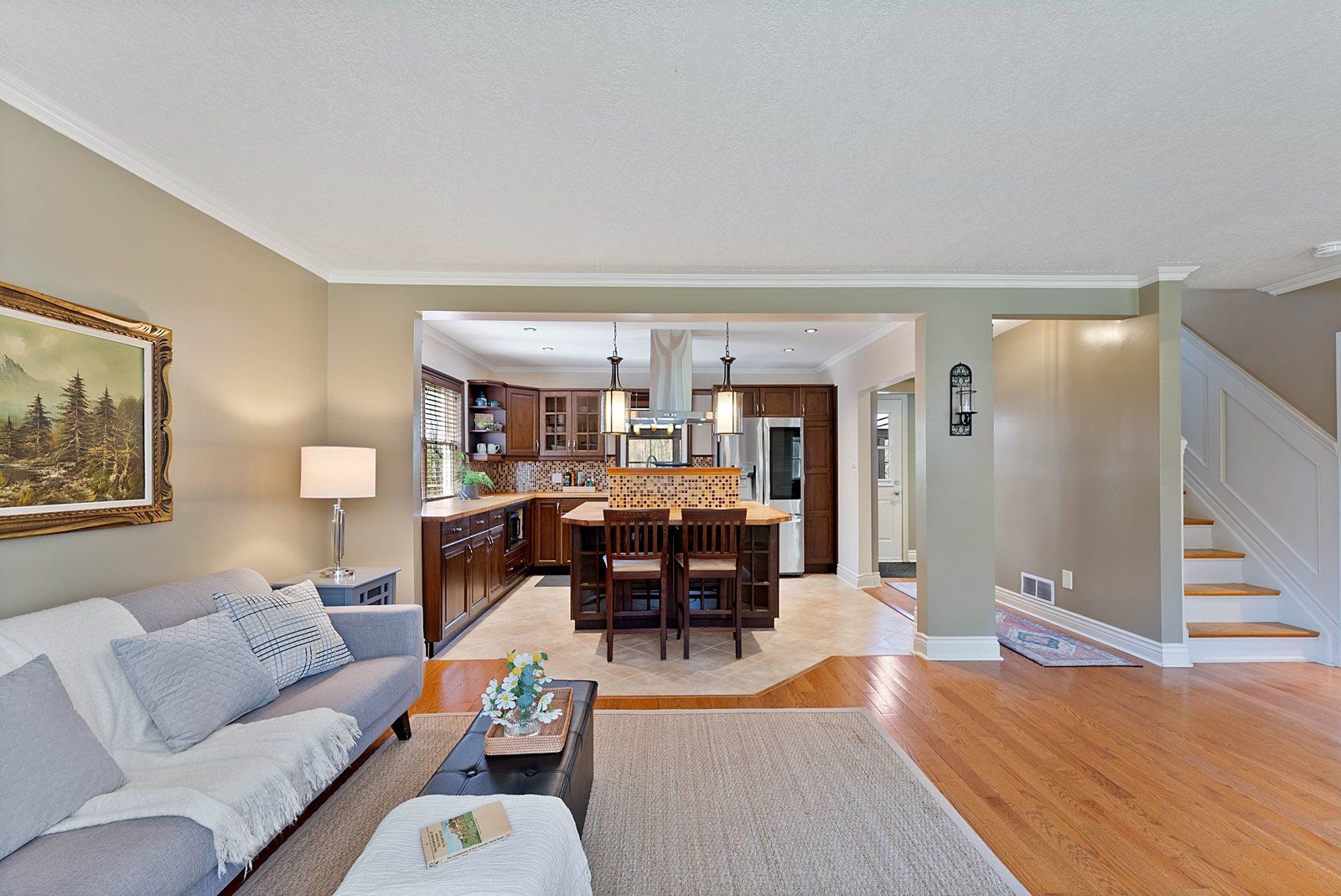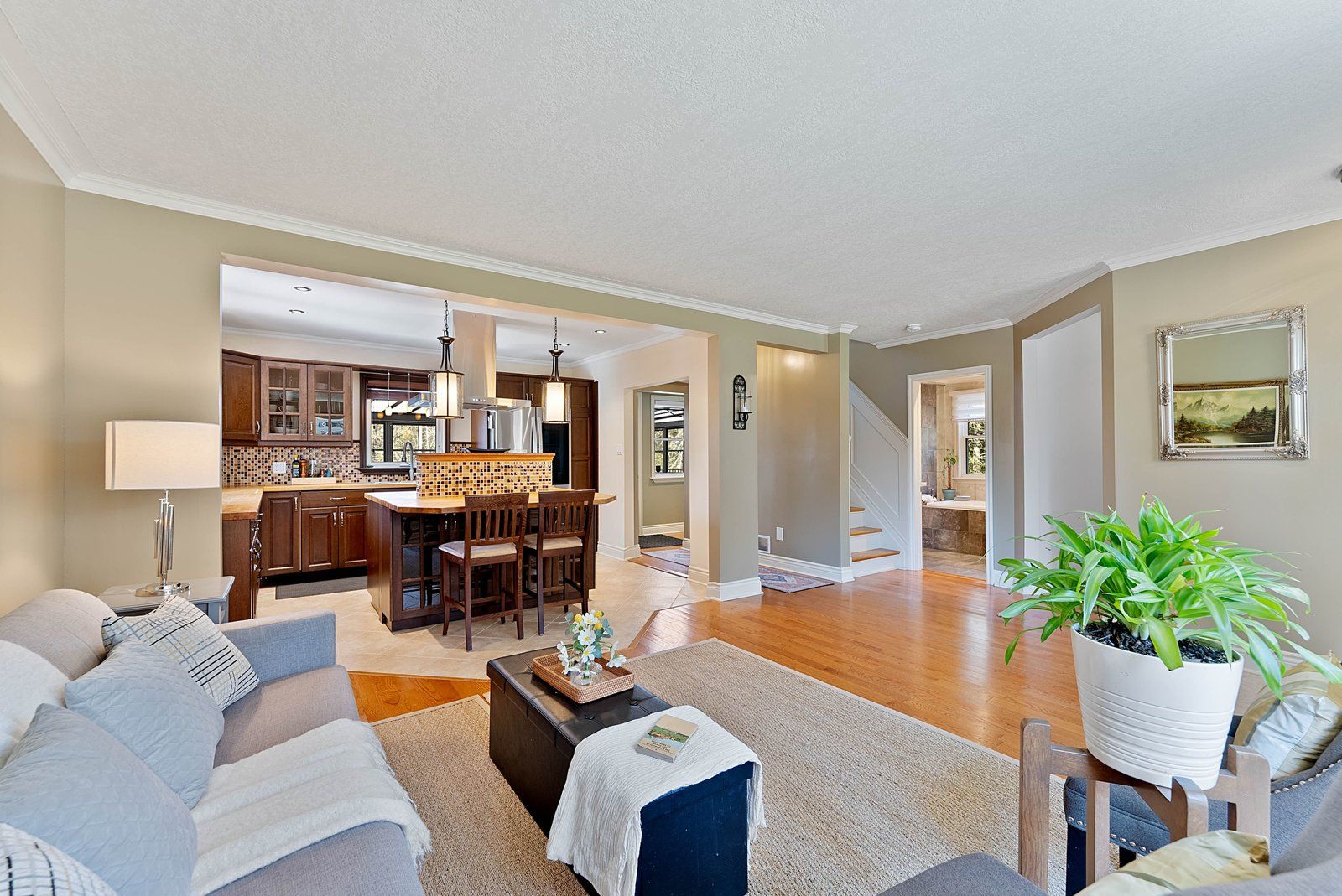 • Bright open-concept main floor with hardwood floors and spacious living area.