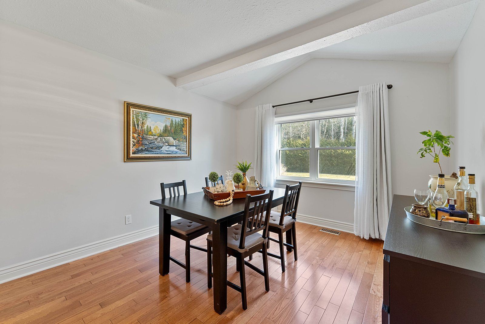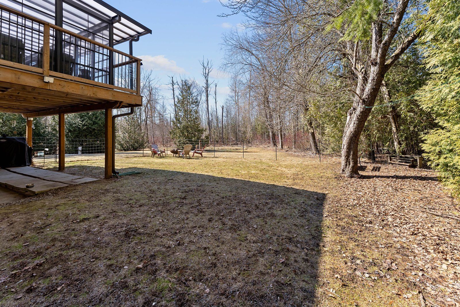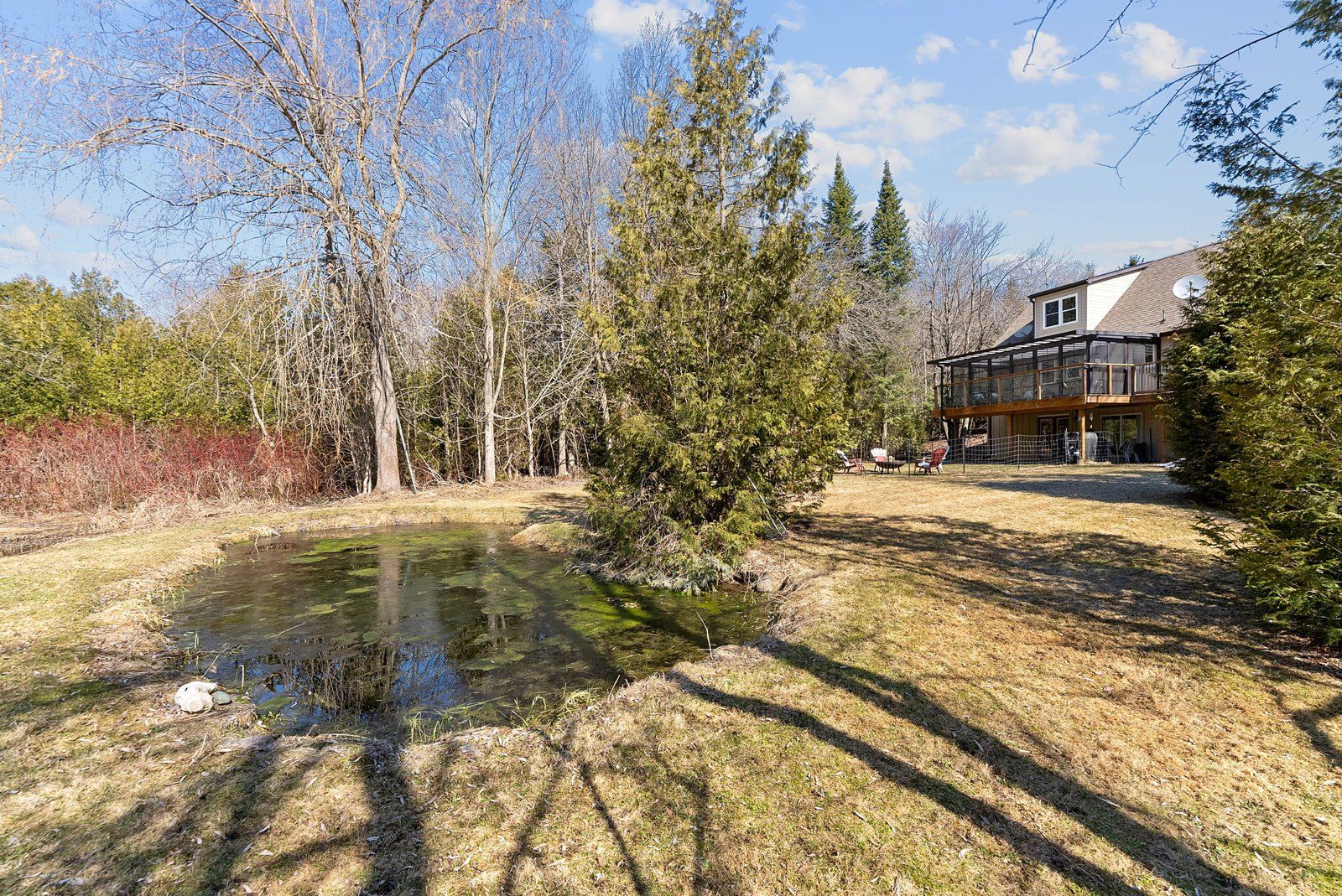 Set on approximately 4. 5 acres, this beautifully maintained custom home offers a rare blend of privacy, nature, and thoughtful upgrades. The welcoming front elevation opens to a bright open-concept main floor featuring hardwood floors, a spacious living area, and a chef-inspired kitchen with gas stove, new appliances, butcher block counters, and walk-out to a wrap-around deck overlooking the scenic landscape. A stunning sunroom addition enhances the main level, creating the perfect space to relax and enjoy the views. The main floor also features a 4-piece bath with soaker tub and glass shower. The walk-out basement offers high ceilings, pot lights, high-end laundry, and a 3-piece bath, providing excellent additional living space. The property is beautifully landscaped with sweeping willow trees, forested areas, a groundwater-fed wildlife pond, and two creeks supporting a diverse natural ecosystem. Zoned residential, with a portion of the land designated conservation and eligible for the annually renewable conservation land tax incentive program (cltip), offering significantly reduced property taxes. Updates include a high-efficiency heat pump and furnace (2024), ecobee smart thermostat (2024), new sump pump by flow water solutions with automatic battery backup (2024), property corners professionally surveyed and marked (2024), new fence (2024), energy-efficient interior light fixtures (2025), and added pot lights (2025). Over 200 native evergreen saplings have been planted through the green legacy programme. Propane tank is rented through bryan's fuel, with the range being the only propane appliance, and the furnace automatically supplements the heat pump with propane during extreme cold (below -15c). Regular water testing through public health has been completed with no concerns reported. Included as-is: snow blower, lawn mower, barbecue, and fire bowl.