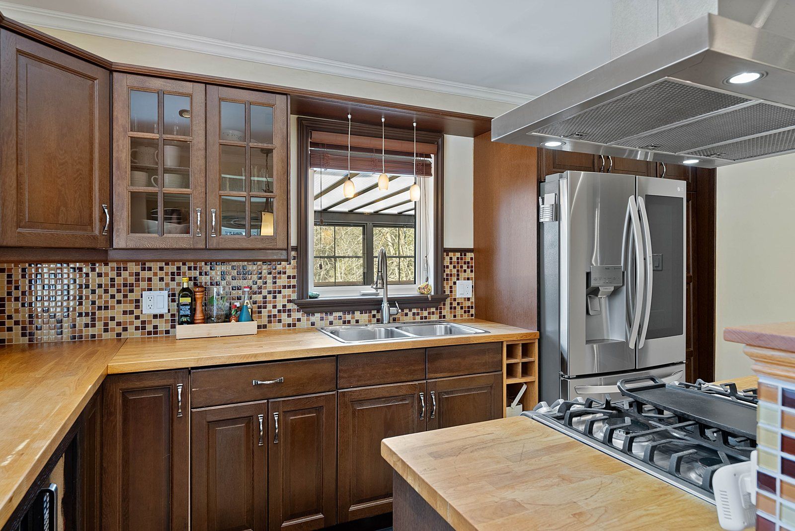 • Chef-inspired kitchen with new appliances and butcher block counters.