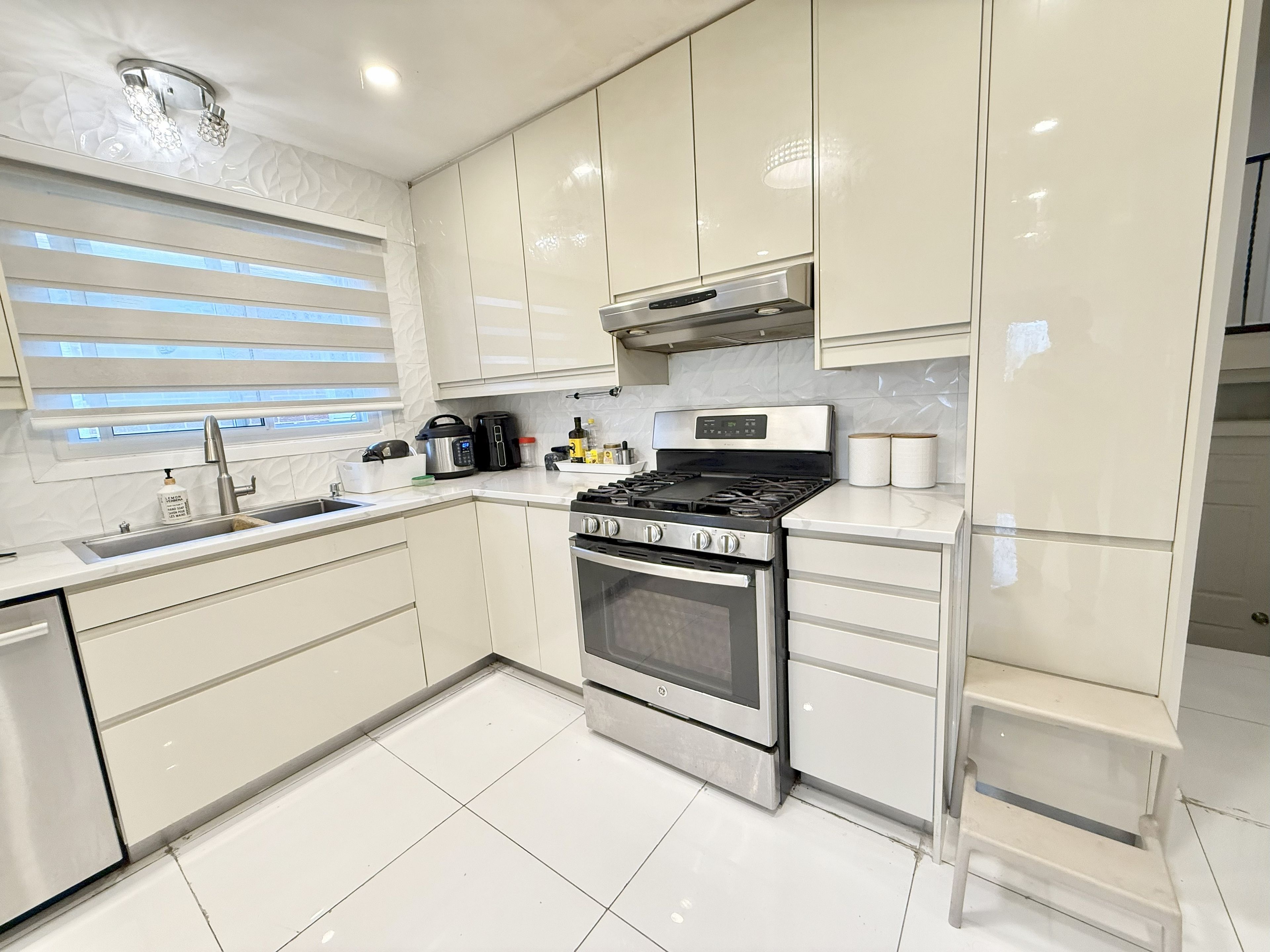 • Upgraded gourmet kitchen with quartz countertops and stainless steel appliances.