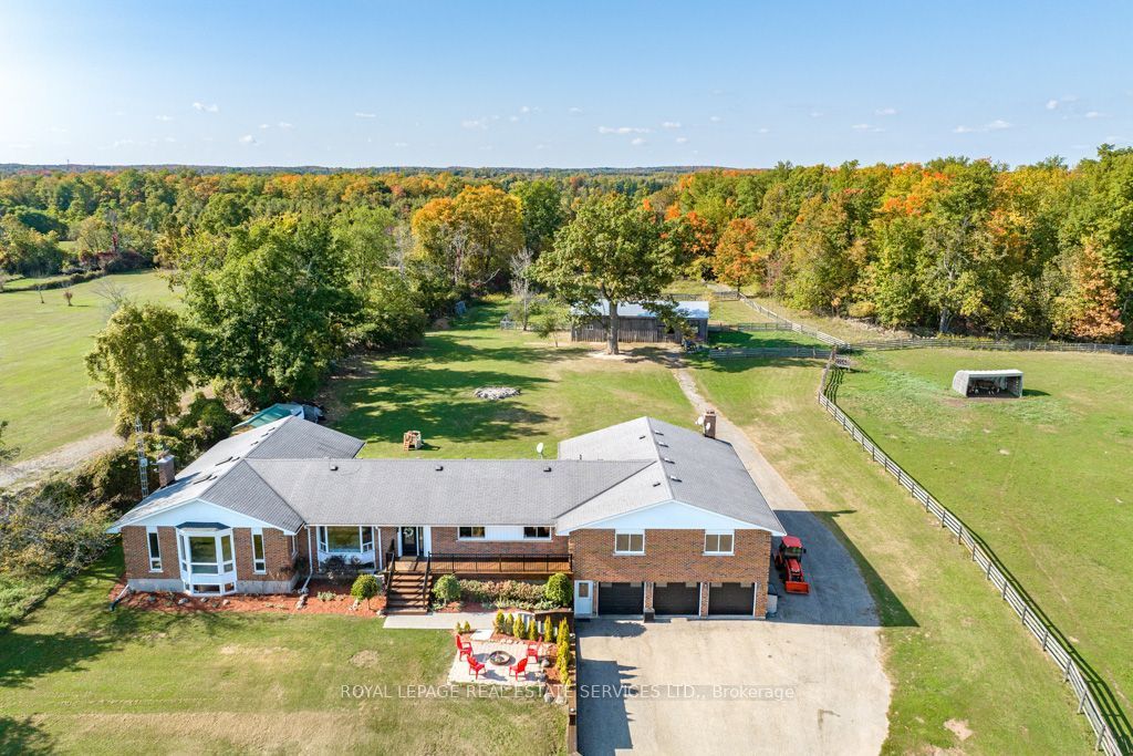 Now on standard broadband fibre optics! Note 6 separate walkouts. Beautiful property to be your forever family home, ideal for multi generational living. Impressive (8 bedroom total) 4,500+ square feet (6 bedrooms on main level) bungalow with 3,000+ square foot lower level with walkout at grade level entry which includes a 2 bedroom 1,983 square foot inlaw suite (with lots more room to expand) all on a huge 25 acre parcel of land full of personality comprising a balance of workable land, mixed woods with amazing trilliums, all sure to please the most discerning buyer! Bring your wish list here and check off your boxes! If privacy is a factor, this fine family home is set well back off the road, and is nicely elevated affording beautiful views off all windows and ideal for the nature lover. Additionally for the car collector or multi vehicle family, a total garage space accommodating 7 vehicles or specialty toys, atv's, snowmobiles, etc., of which the tandem 4 car garage with double o/h door is 45'x23'. The updated pole barn with water and hydro has been improved with 3 system equine stalls for your equine, goats, chickens, miniature horses, alpacas, llamas, donkey, and more! Fantastic location for pearson airport commuters per google only 30 minutes.