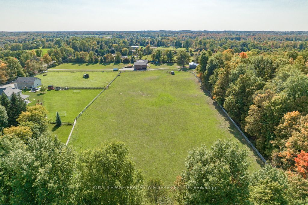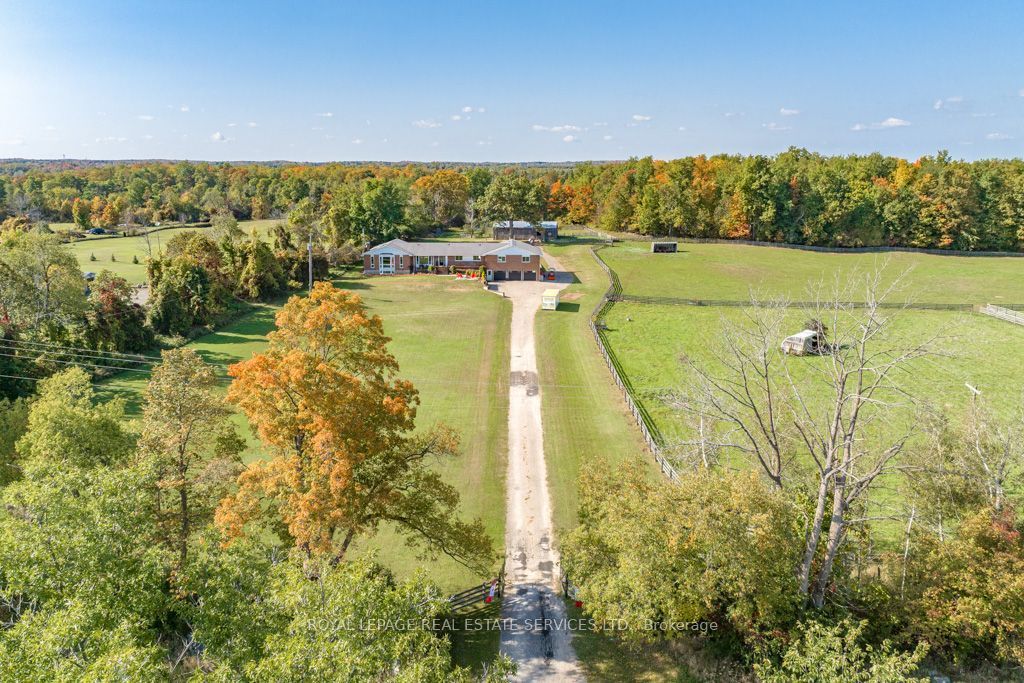 Now on standard broadband fibre optics! Note 6 separate walkouts. Beautiful property to be your forever family home, ideal for multi generational living. Impressive (8 bedroom total) 4,500+ square feet (6 bedrooms on main level) bungalow with 3,000+ square foot lower level with walkout at grade level entry which includes a 2 bedroom 1,983 square foot inlaw suite (with lots more room to expand) all on a huge 25 acre parcel of land full of personality comprising a balance of workable land, mixed woods with amazing trilliums, all sure to please the most discerning buyer! Bring your wish list here and check off your boxes! If privacy is a factor, this fine family home is set well back off the road, and is nicely elevated affording beautiful views off all windows and ideal for the nature lover. Additionally for the car collector or multi vehicle family, a total garage space accommodating 7 vehicles or specialty toys, atv's, snowmobiles, etc., of which the tandem 4 car garage with double o/h door is 45'x23'. The updated 24'x40' pole barn with extra double doors on west end, has water and hydro and 3 system equine stalls for your horses, goats, chickens, or many more parking spaces for your vehicles/trailers. Fantastic location for pearson airport commuters per google only 30 minutes.