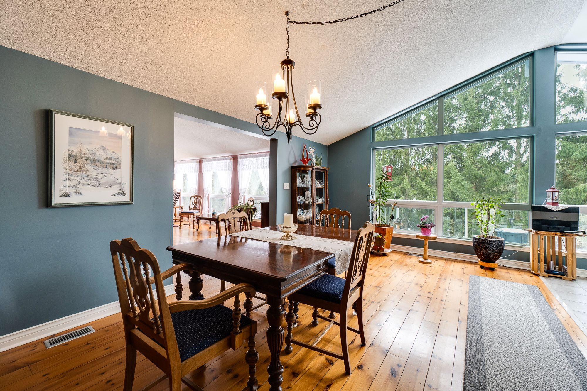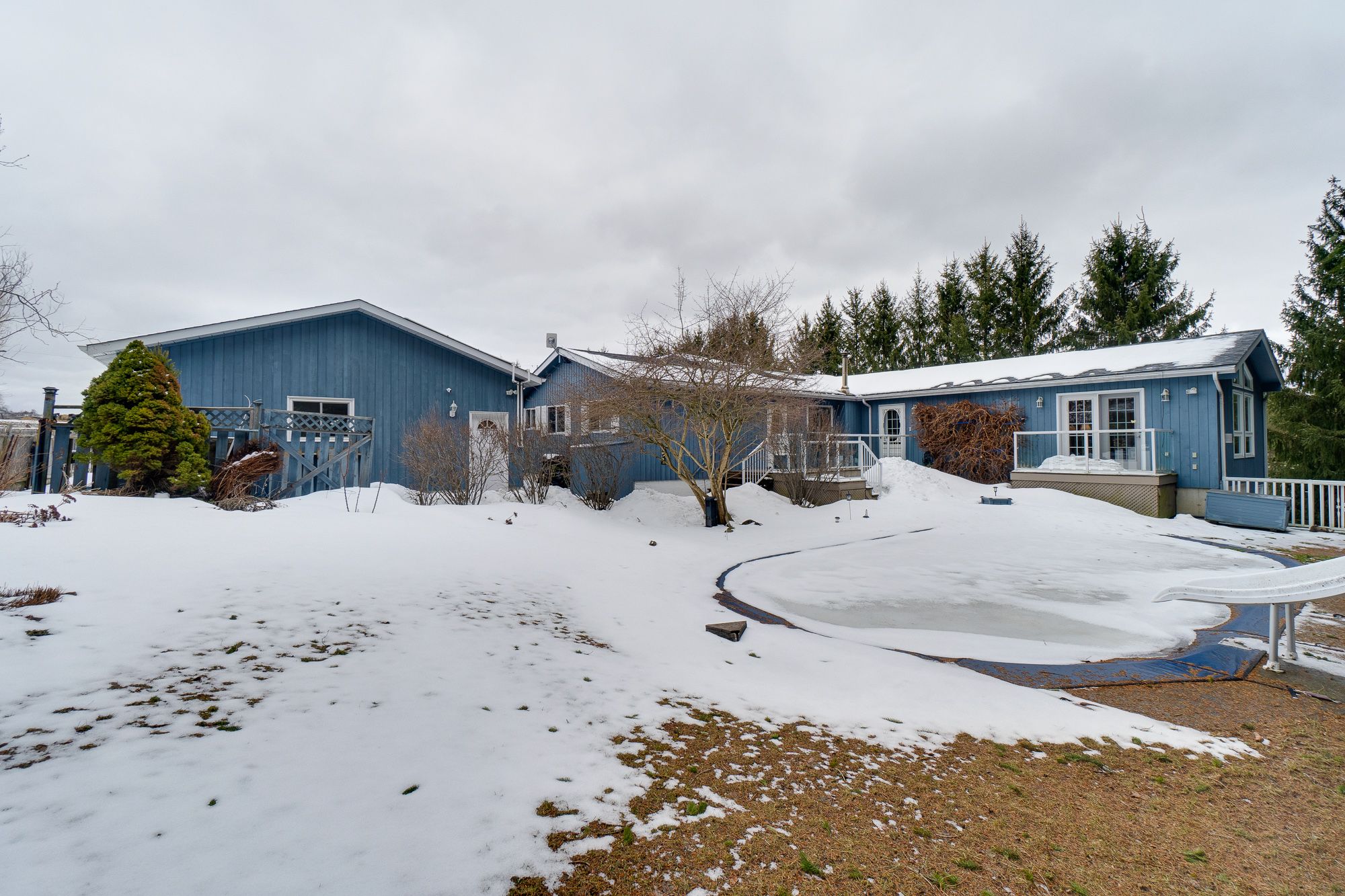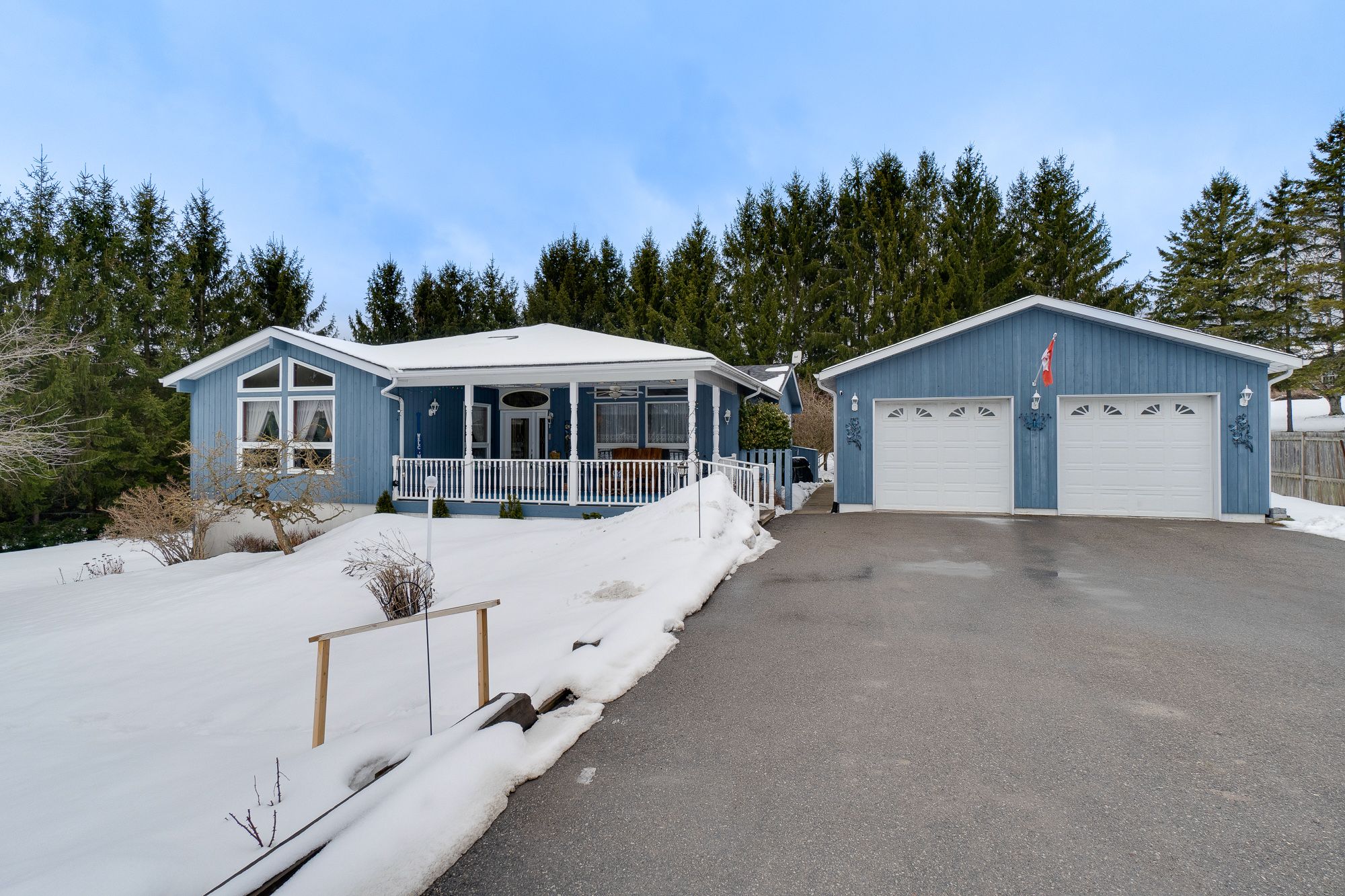Exceptional meticulously maintained multi-family country home in a charming board and batten exterior with a matching large detached workshop/garage on scenic acreage - minutes to highways 407, 401 & 115 and the ganaraska conservation. Welcome to your dream retreat! Nestled on a quiet country road and surrounded by rolling hills, picturesque horse farms and the ganaraska forest at your doorstep, this property offers a rare blend of privacy, natural beauty, and convenient access to major highways and amenities. Enjoy a true four-season lifestyle-hike, bike, ride, or snowmobile right from your doorstep and immerse yourself in the surrounding outdoor paradise. This spacious bungalow offers over 4000+ sq ft of living space with 5 total bedrooms across both levels is thoughtfully designed for both comfort and connection to nature, featuring three decks/balconies on the main level and a fully finished lower level with three walkouts, providing seamless indoor-outdoor living and stunning views of the private landscape. Inside, the home boasts bright, expansive principal rooms, vaulted ceilings, gorgeous pine wood plank floors, three full bathrooms, and a chef's kitchen complete with granite countertops and ample cabinetry. A full second kitchen offers excellent flexibility, allowing the home to function as two separate living spaces-ideal for multi-generational living or income potential. Step outside to your heated, in-ground saltwater pool, surrounded by beautiful perennial gardens-perfect for relaxing or entertaining. Additional features include a 26' x 36' insulated garage/workshop with heater, a tool shed, a large storage tent for all your recreational equipment, and a charming gazebo to enjoy the peaceful surroundings.