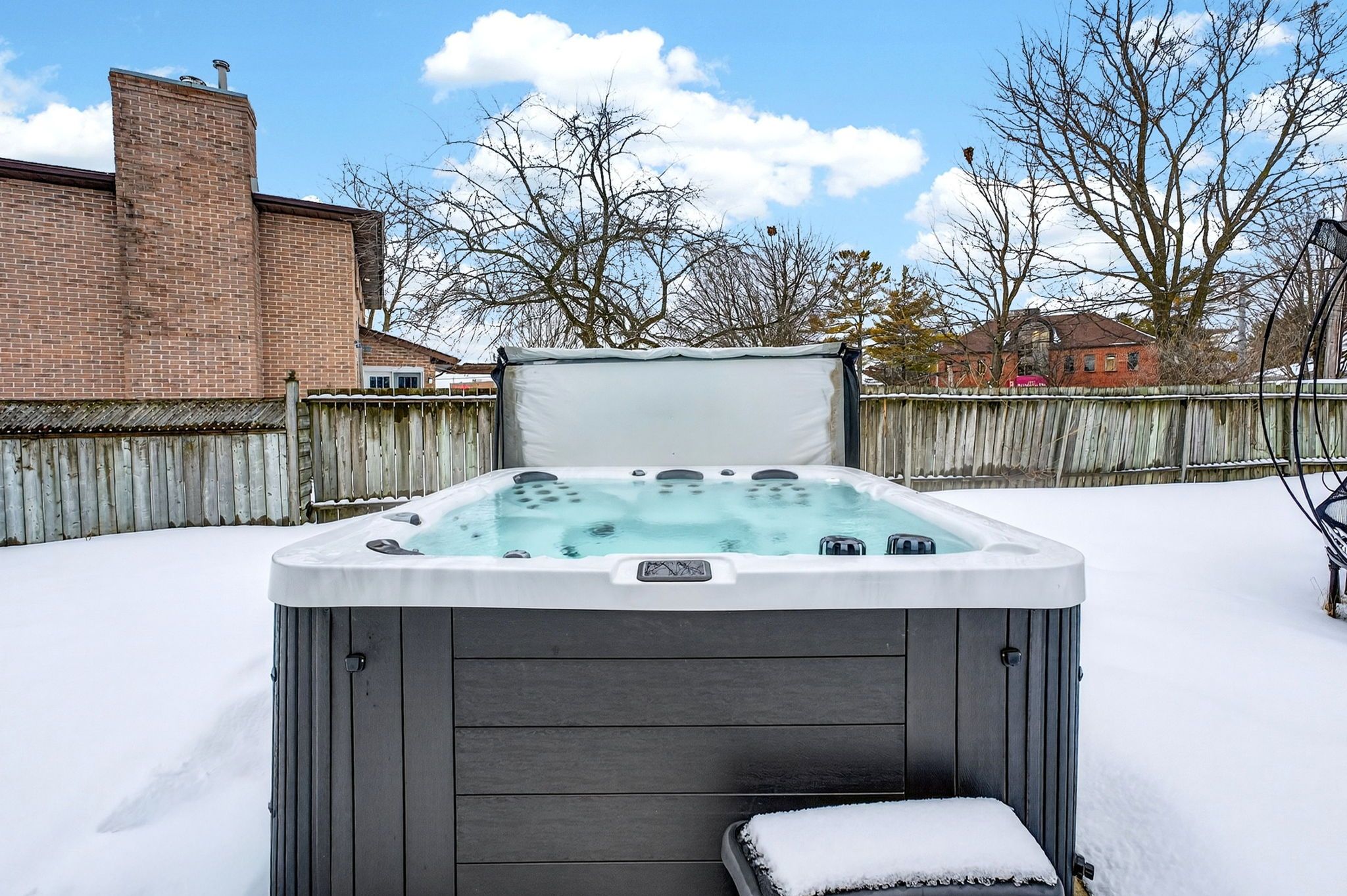 • Private backyard with a hot tub and heated above-ground pool for family fun.