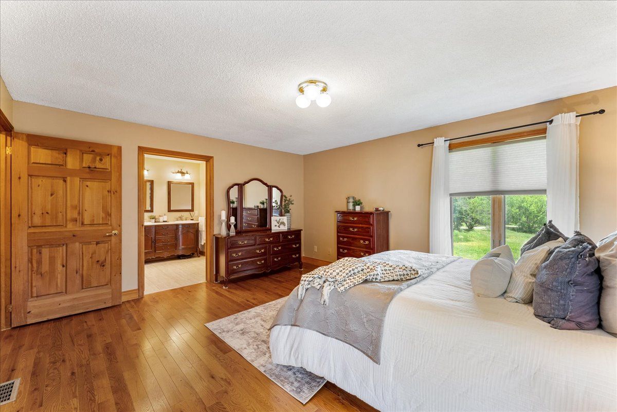 Private 10-acre whitby retreat - bungalow with walkout basement, workshop garage & space for family, business or hobby living! Rare opportunity to enjoy country living on 10 acres in rural whitby, just minutes from brooklin and major highways. This 3-bedroom, 2-bathroom detached bungalow with walkout basement offers bright living spaces, hardwood floors, and large windows overlooking the surrounding landscape. The main floor features an eat-in kitchen, formal dining area, and a spacious primary retreat with private balcony, walk-in closet, and 5-piece ensuite with soaker tub and separate shower. The walkout basement offers excellent potential for an in-law suite or multigenerational living, while the detached three-door garage/workshop and extensive parking provide incredible flexibility for entrepreneurs, tradespeople, hobbyists, or vehicle storage. Enjoy the freedom of approx. 10 acres with space for recreation, gardens, hobby farming, or simply peaceful country living, all within a short drive to whitby amenities, schools, shopping, and highways 407 & 412 for easy commuting.