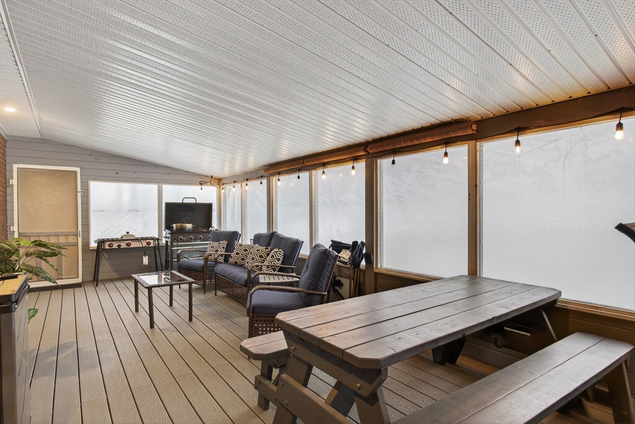 • 40' x 12' screened-in porch with hot tub for relaxation and enjoyment.