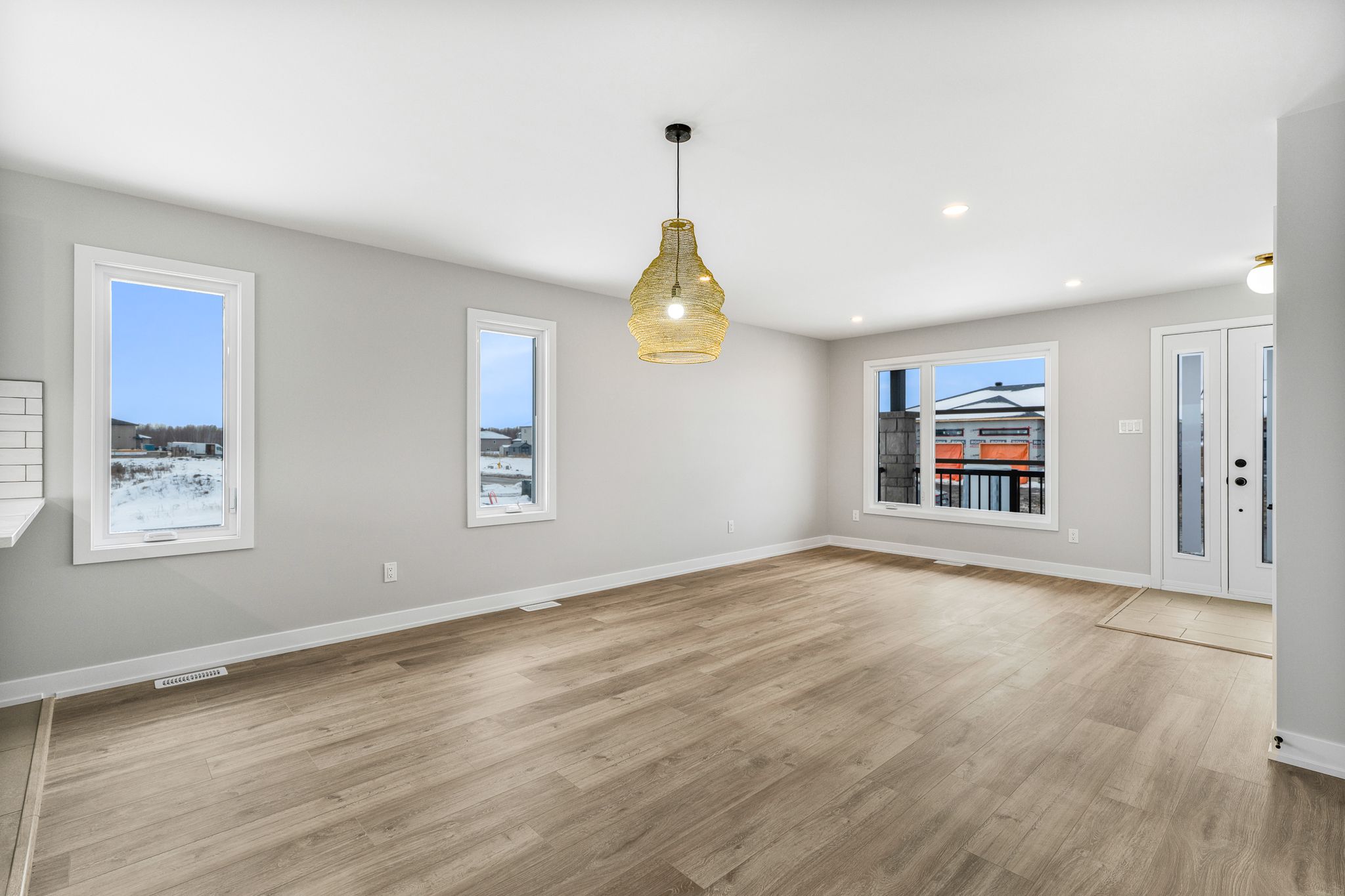 • Open-concept living, dining, and kitchen areas maximize natural light.