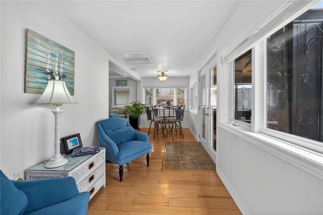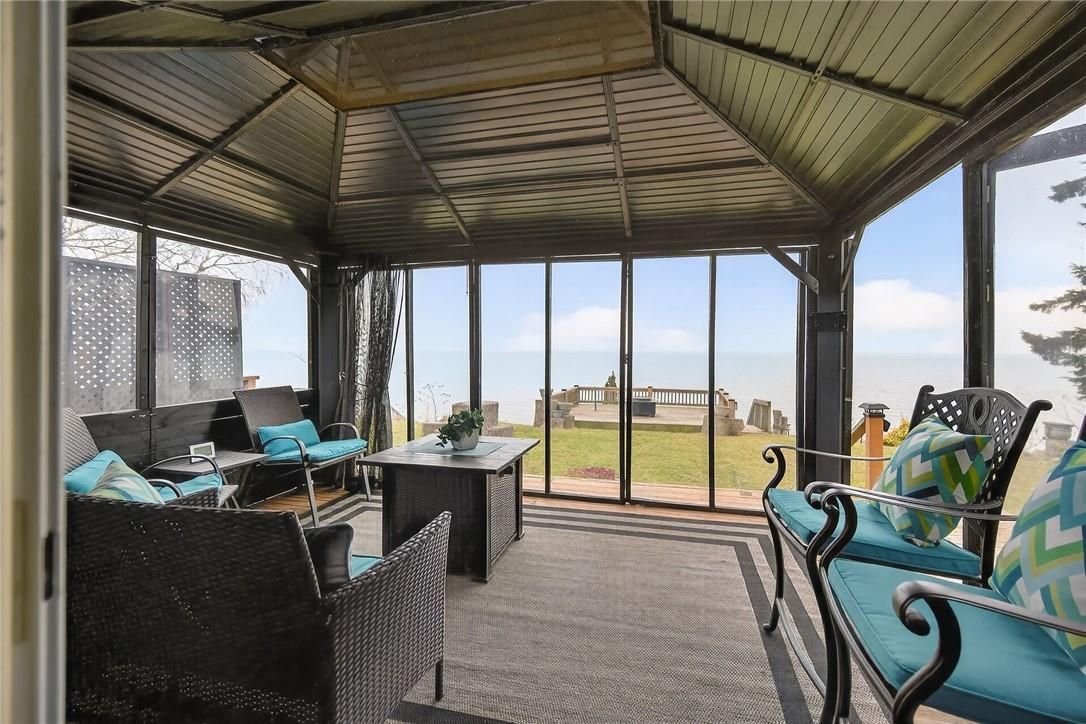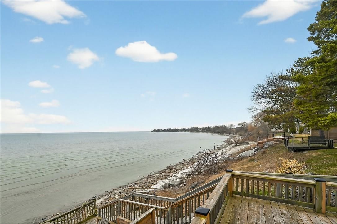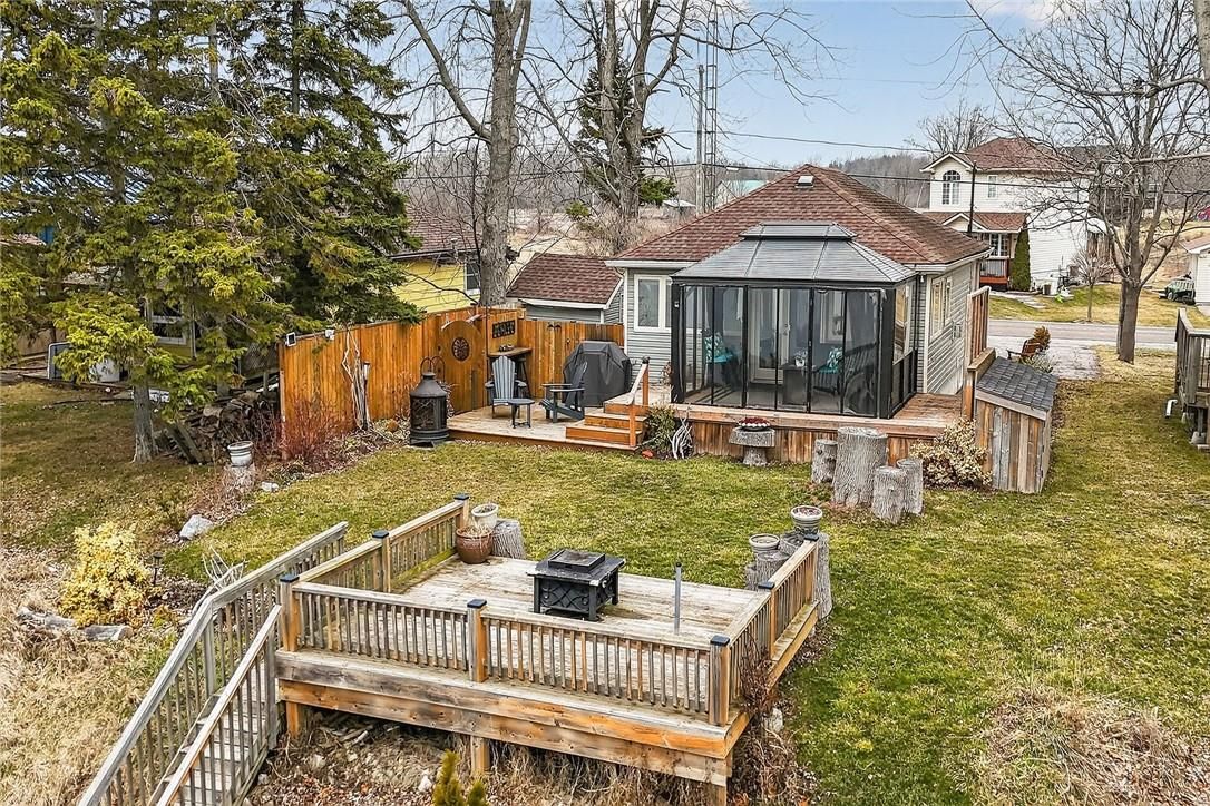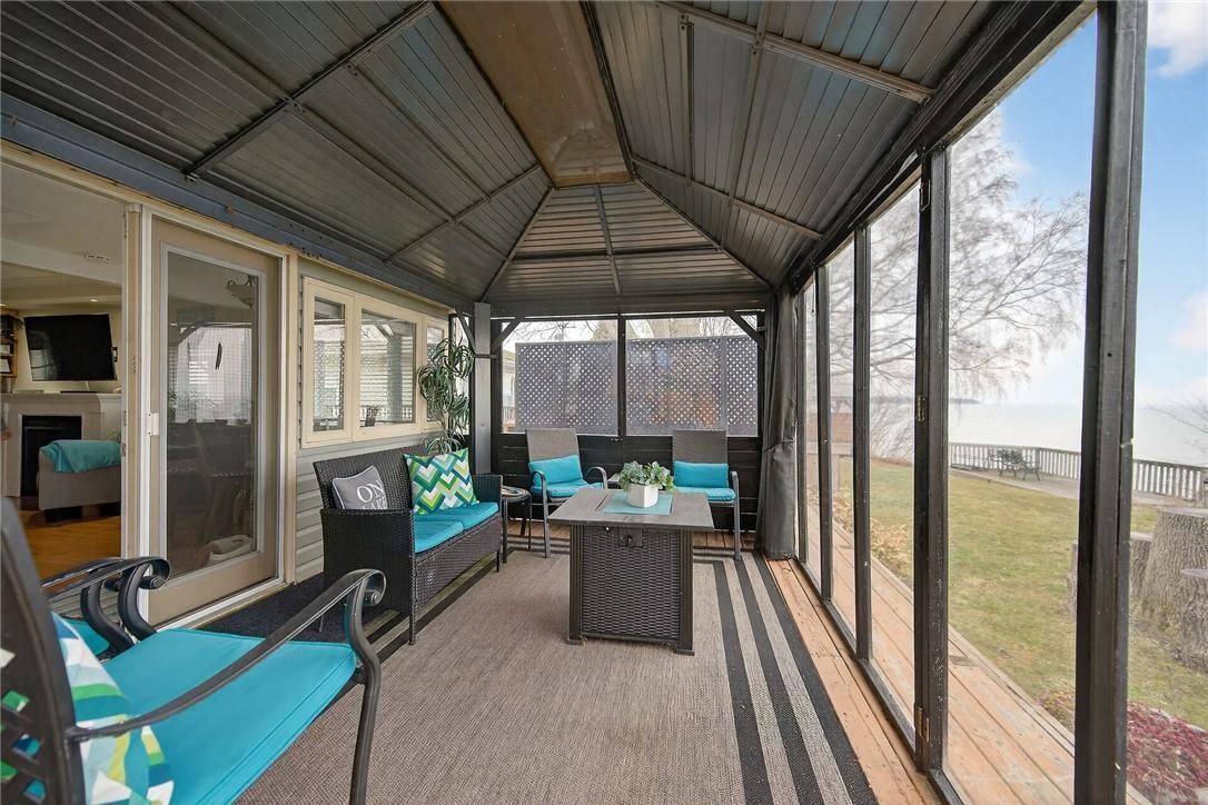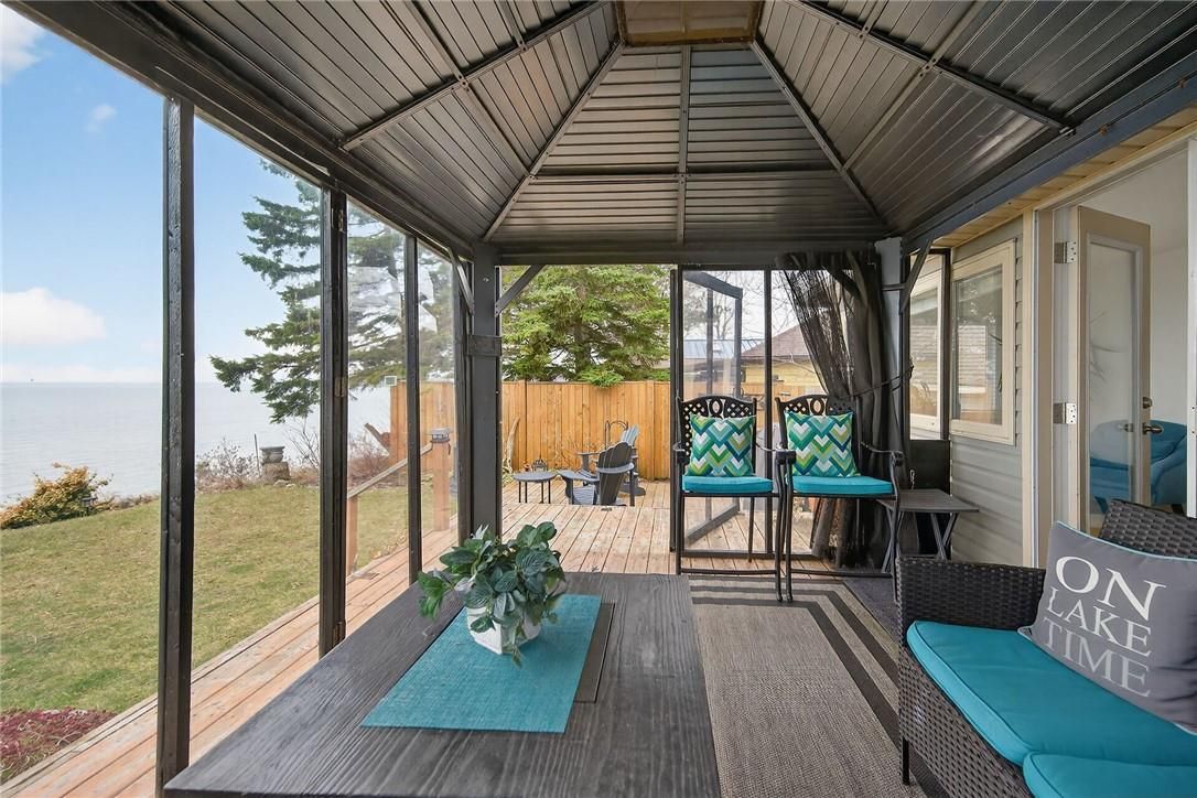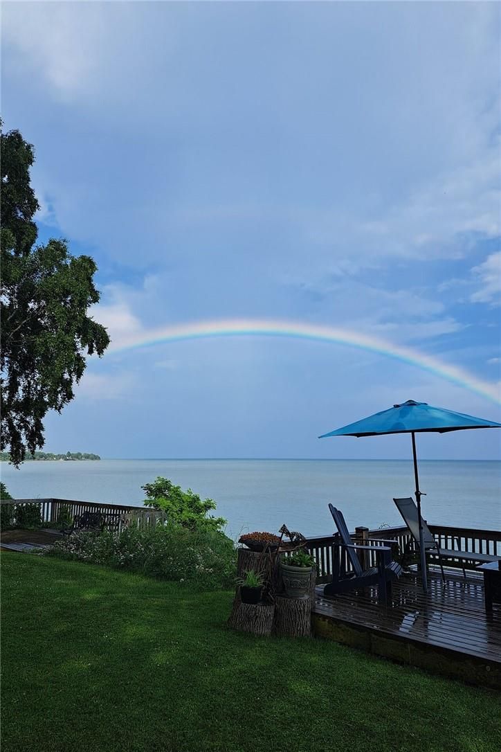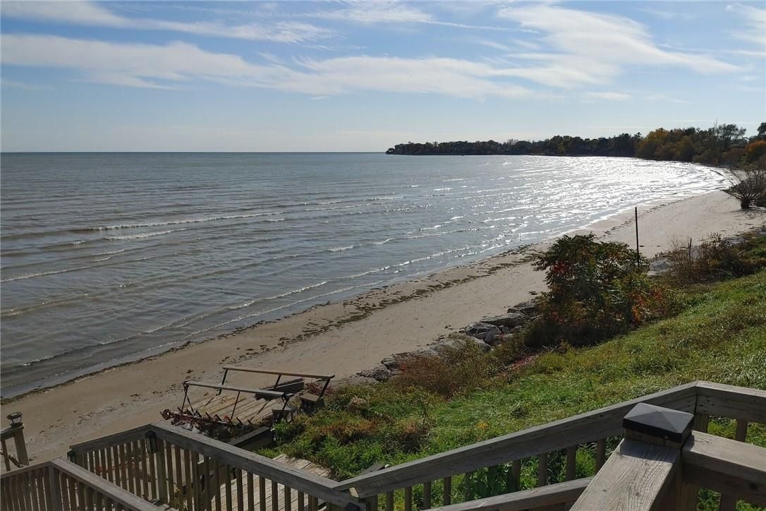 Gorgeous lake erie waterfront property offering prime west of prestigious woodlawn point location & similar distance east of the sea-side community of peacock point. Imagine sipping a morning coffee or nursing a late night beverage while savouring erie's majesty from this incredible "erie treasure" incs beautifully renovated year round cottage situated on mature lot. Introduces 735sf of immaculate living space, 735sf finished basement, 264sf lake facing entertainment deck incs enclosed metal gazebo & adjacent 168sf grade level deck - enjoys gentle sloping rear yard extending to waterfront observation deck offering wooden steps descending to paver stone patio built on armour stone break-wall w/removable staircase accessing golden sand beach continuing for hundreds of feet into glistening lake. After a day of aquatic adventures it's time to retreat indoors & embrace nautical ambience of this tastefully presented home highlighted w/open concept kitchen sporting modern cabinetry & dinette - segues to living room ftrs patio door walk-out to deck/gazebo. Impressive 9ft tray ceilings, gleaming hardwood flooring, oversized windows & warm ambience of recently installed gas fireplace compliment décor. 2 sizeable bedrooms & modern 4pc bath complete main level design. Spacious 462sf family room showcases hi/dry basement - perfect venue for large family gatherings or simply a place to relax - completed w/3rd bedroom, utility room & storage room. Notable updates since 2020 inc 100 amp hydro, hot water heater & jet water pump/pressure tank - additional features inc quality appliances, n/g furnace, ac, fibre internet, water cistern, economical septic system (no costly pump outs), exterior vinyl siding, windows, asphalt roof shingles, low profile kayak shed & more. Relaxing 45-50 min commute to hamilton, brantford & 403 - 15 min drive to port dover's popular amenities - mins west of selkirk. Versatility redefined -stylish comfort for year round living or ultimate weekend getaway!