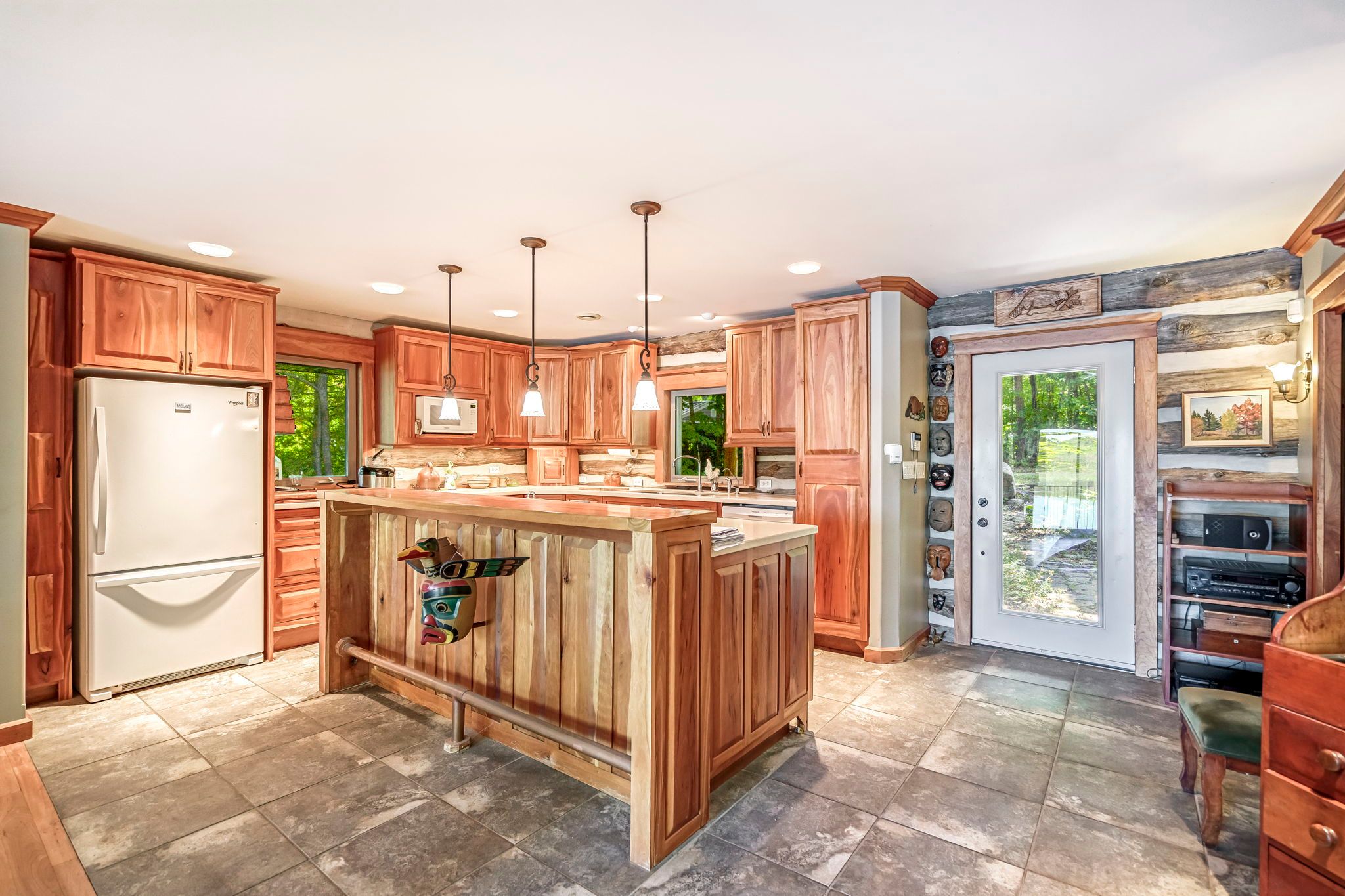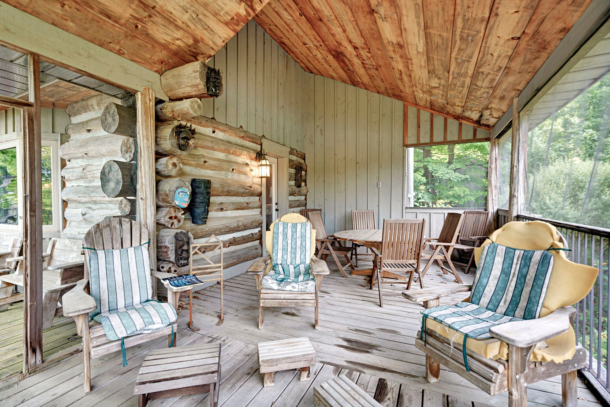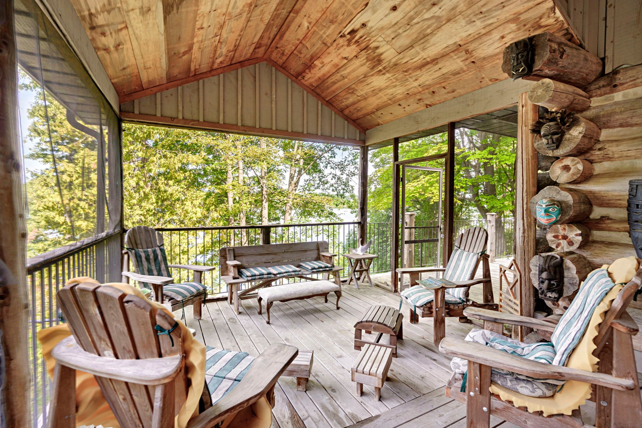 One of only eleven waterfront properties on sumac lane, this stunning four-season log home, built in 2005, offers just under 74 feet of frontage on little lake. Tucked away on a privately maintained road, the home screams rustic charm, creating an ideal year-round residence or weekend retreat. Inside, the heart of the home is the large chefs kitchen, complete with a generous island and open to the main floor living and dining areas, perfect for entertaining family and friends. Beautiful cherry floors and cupboards complement the natural log construction, while three copper-surround fireplaces (one on each level, including in the primary bedroom) add warmth and character throughout. The spacious primary suite spans the full length of the home along the water side, offering breathtaking views. The walk-out basement features a large recreation room, sauna, and easy access to the outdoors. Enjoy the wrap-around porch, expansive back deck overlooking the water, and a fully screened-in sunroom off the main living room. Only 90 minutes from the gta, this property offers a rare combination of privacy, comfort, and peaceful waterfront living that could either be your home away from home, or your full time residence.
