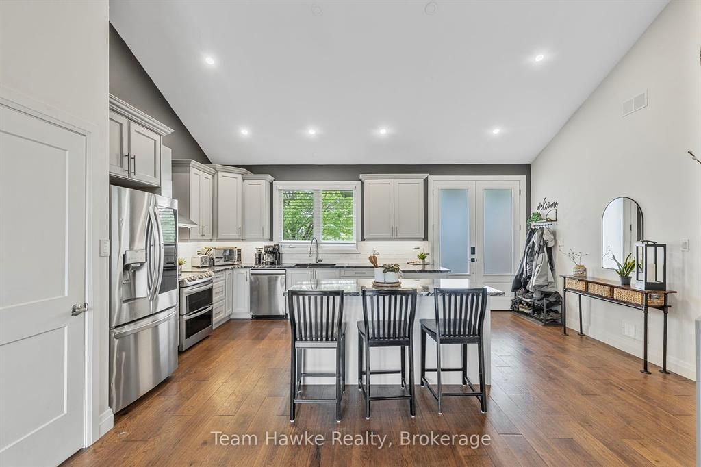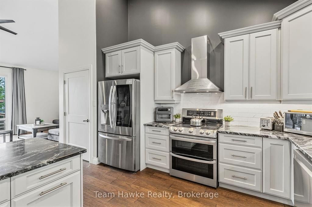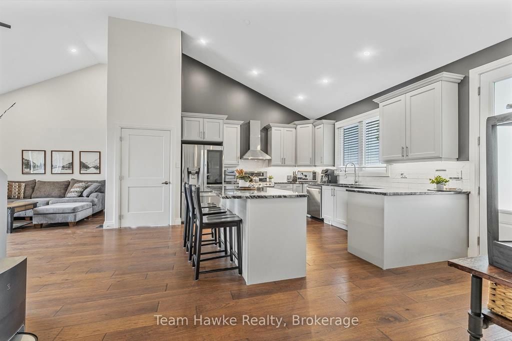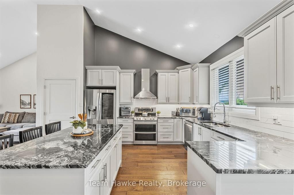 Built in 2021, this home offers a stylish, functional layout with quality finishes throughout, ideal for modern living! Step inside to find hardwood floors and a spacious open-concept design with soaring cathedral ceilings that give the main living areas an airy, welcoming feel. The kitchen is well-equipped with stainless steel appliances, a large granite island and plenty of cupboard space, giving you the ultimate prep space, and made for entertaining. The main floor includes two comfortable bedrooms, including a primary with its own private 3-piece ensuite and wall to wall closet. The second bathroom on this level stands out, featuring a deep soaker tub and elegant tile with creamy tones and rich, rust-coloured veining, paired with quartz counters, these features all bring a spa-like touch to the space. You'll also find the convenience of main floor laundry tucked neatly into the layout. Off the living room, walk out to your back deck and enjoy a fully fenced backyard that feels private and peaceful, filled with mature trees and only one direct residential neighbour. The finished basement expands your living space with a generous rec room, a third bedroom, and a full four-piece bathroom. There's also a kitchen area ready for appliances, ideal for extended family, guests, or in-law potential. If you're looking for a move-in-ready home with flexible space, thoughtful design, and privacy, this one is well worth a look!