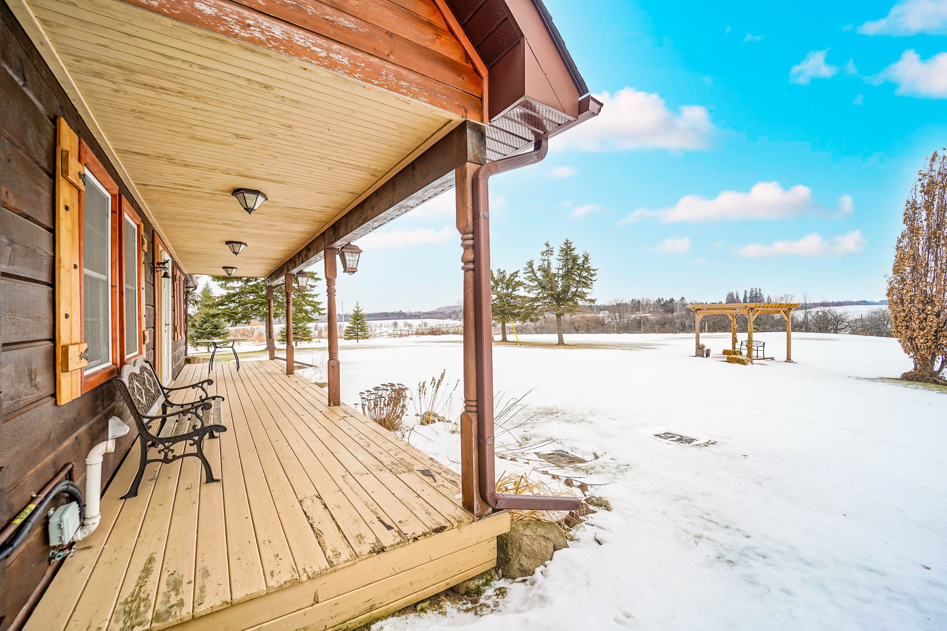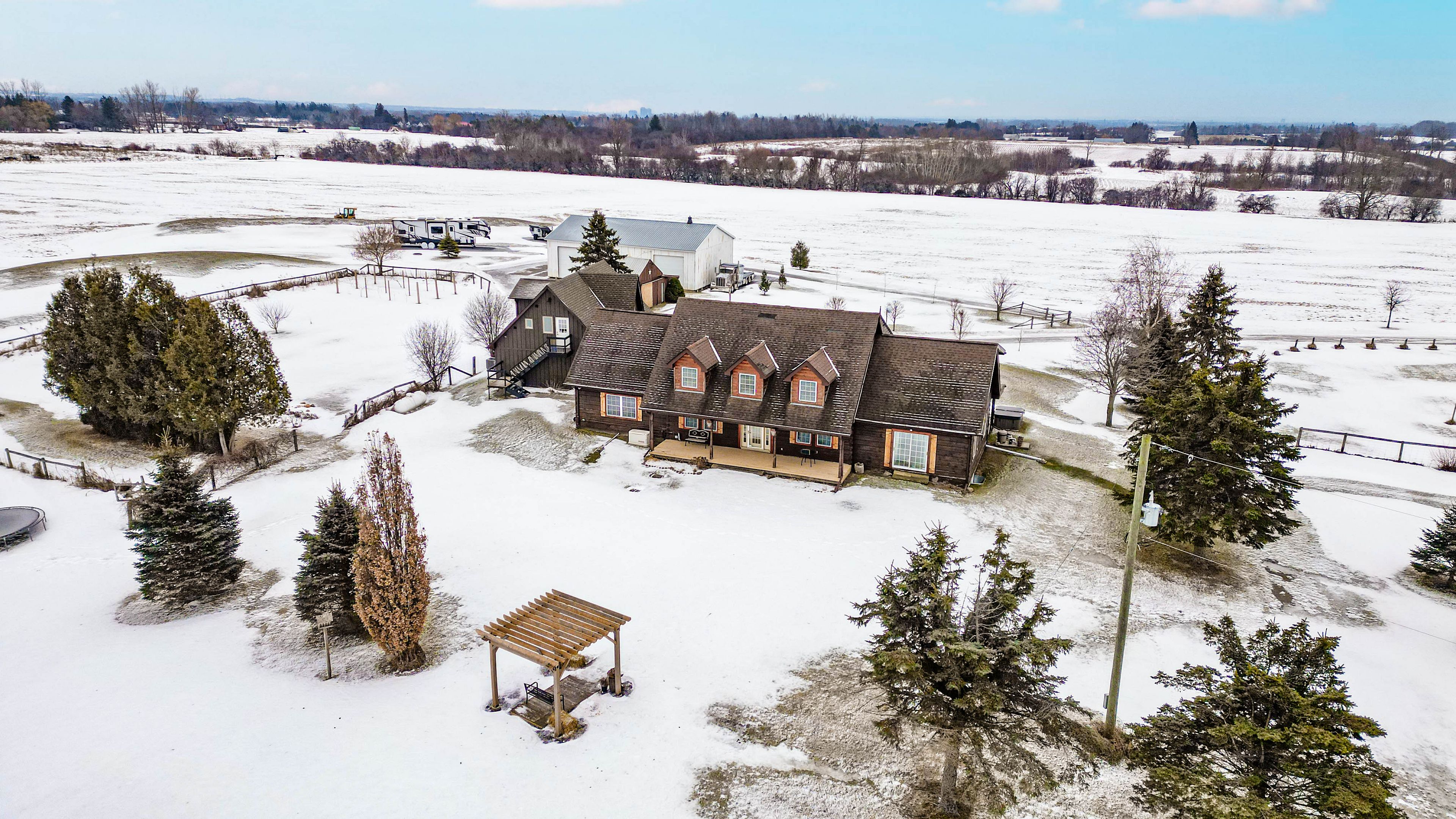 Amazing opportunity 4 the right buyer unique, custom log home north of brooklin 40+ acres of beautiful country property share incredible sunsets w/ family & friends splashing in the ig pool or w/a glass of wine or cappuccino on 1 of the many patios or decks pass the stone gates & follow the driveway meandering to the main hse & 3 car garage indoor/outdoor prkng for 20+ vehicles tons of space 4 toys or eqpmnt enter the main hse 2b greeted by impressive exposed log beams, solid natural wood & quality finishes spend holidays, long wknds or life's celebrations w/ loved 1's & fill your cup on a regular basis in a warm & inviting atmosphere prep meals in the custom kitchen & you are bathed in natural light thru a myriad of windows & sliding glass wo's the great rm w/ sliding glass wo & lg windows continues bringing nature inside, 2 other formal rms on the mf provide family w/ lots of options the 2nd floor has 4 bdrms & 3 bthms primary w/ lg windows allows you to view sunsets cozied up, under the cathedral ceiling w/ exposed beams a fabulous 5pc ensuite, soaker tub, dual vanity w/ live edge counter & heated flooring bdrm 2 is equipped w/ a 4pc bth & wi closet bdrm 3 & 4 offer numerous closets & cute dormer windows there is a 5 th bdrm in the bsmnt & a 3pc bth heading to the heated 3 car garage there is a new 2 bdrm accessory apartment above, it is a must see, remarkable panelled cathedral ceilings w/ exposed beams, an open concept great rm & kitchen a luxurious bthrm & laundry closet the property also features a 14x26 garden shed a 60x40 barn/workshop w/ oversized drs the owner has installed 2, 50 amp rv parking plots w/ septic a geothermal closed loop hvac system, generac back-up electrical system, rolling hills & a 34 acres hay field provide the property w/ tons of options 4 the future. Walking & bike trails cut through the small wooded section on the north side of the property what an incredible opportunity to create future memories w/ your family.