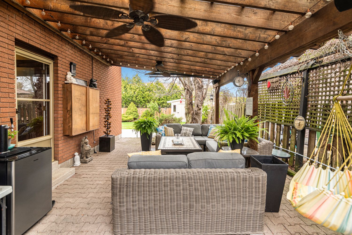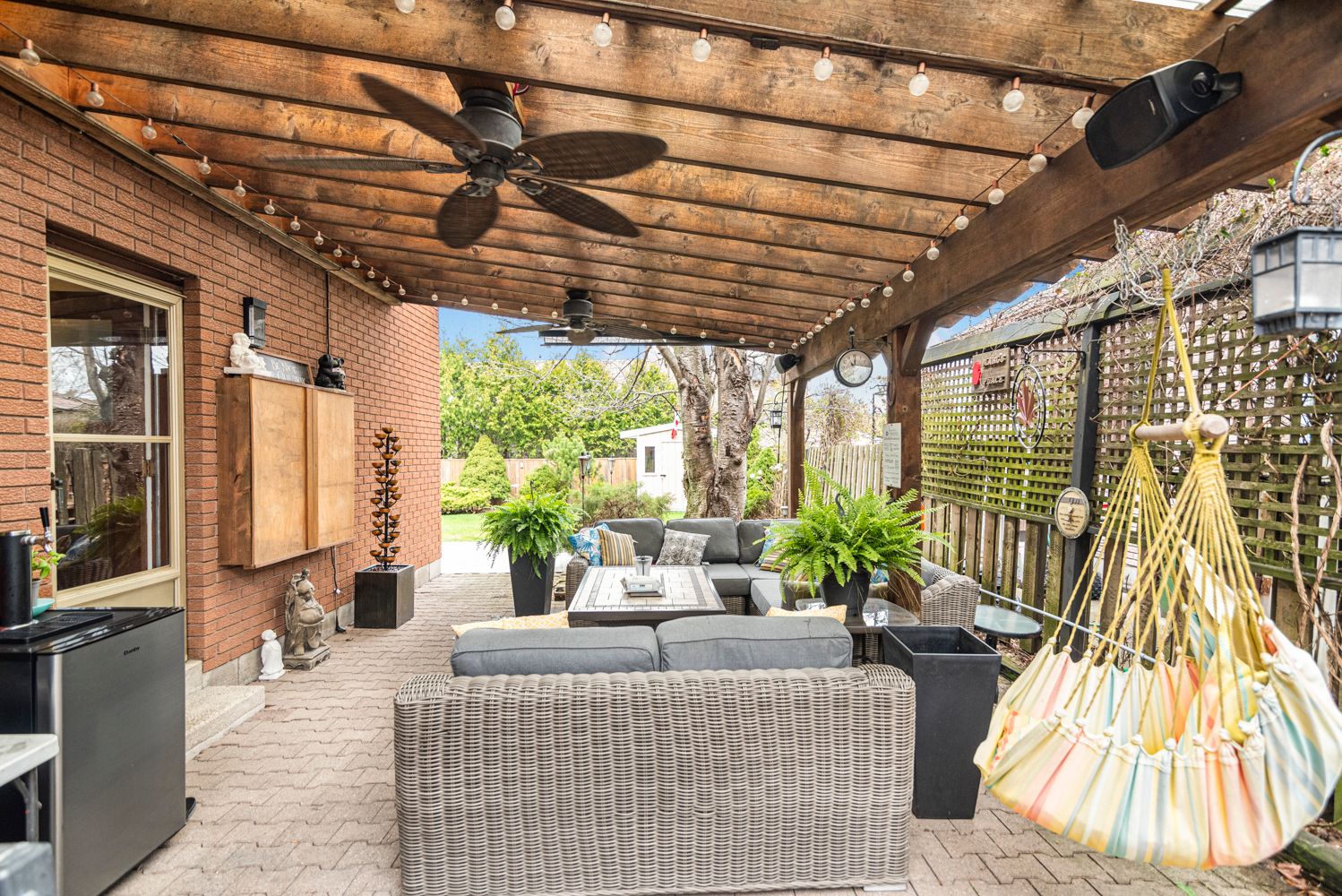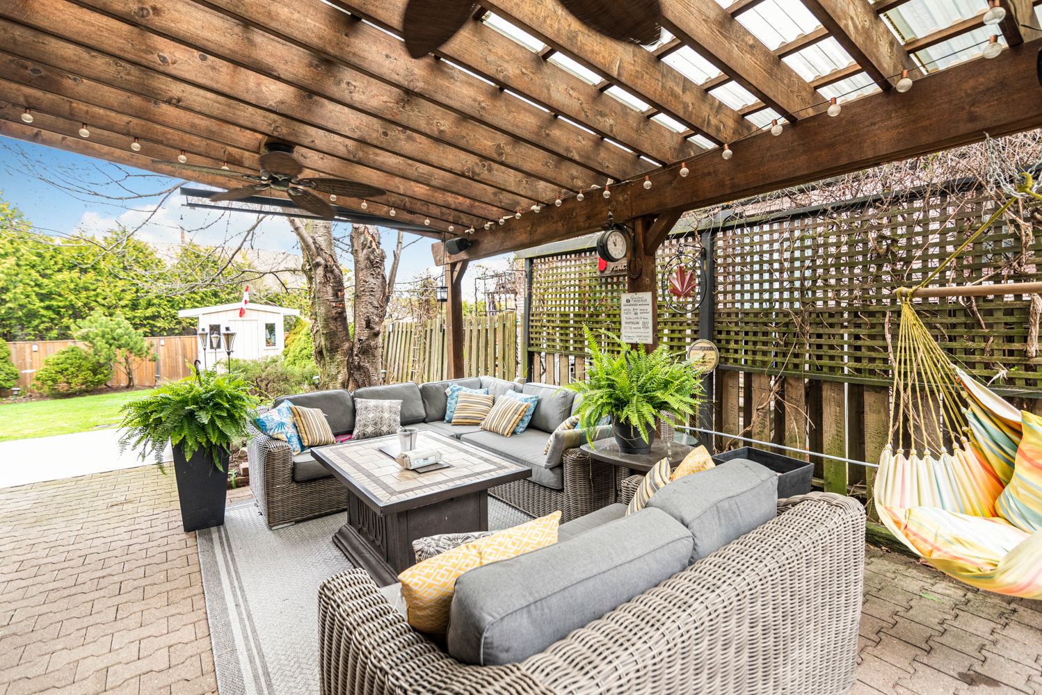 • Private backyard with a side pergola, perfect for outdoor events.