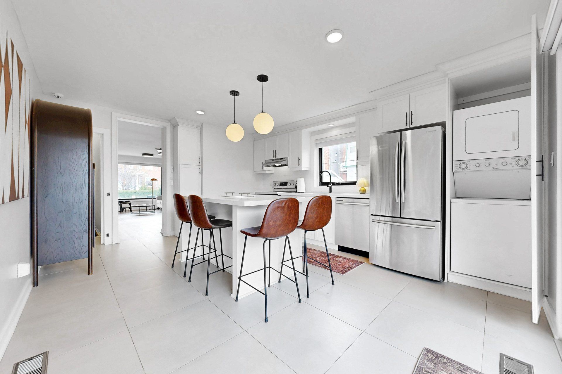 • Finished basement with separate entrance, bedroom, kitchen, and laundry.