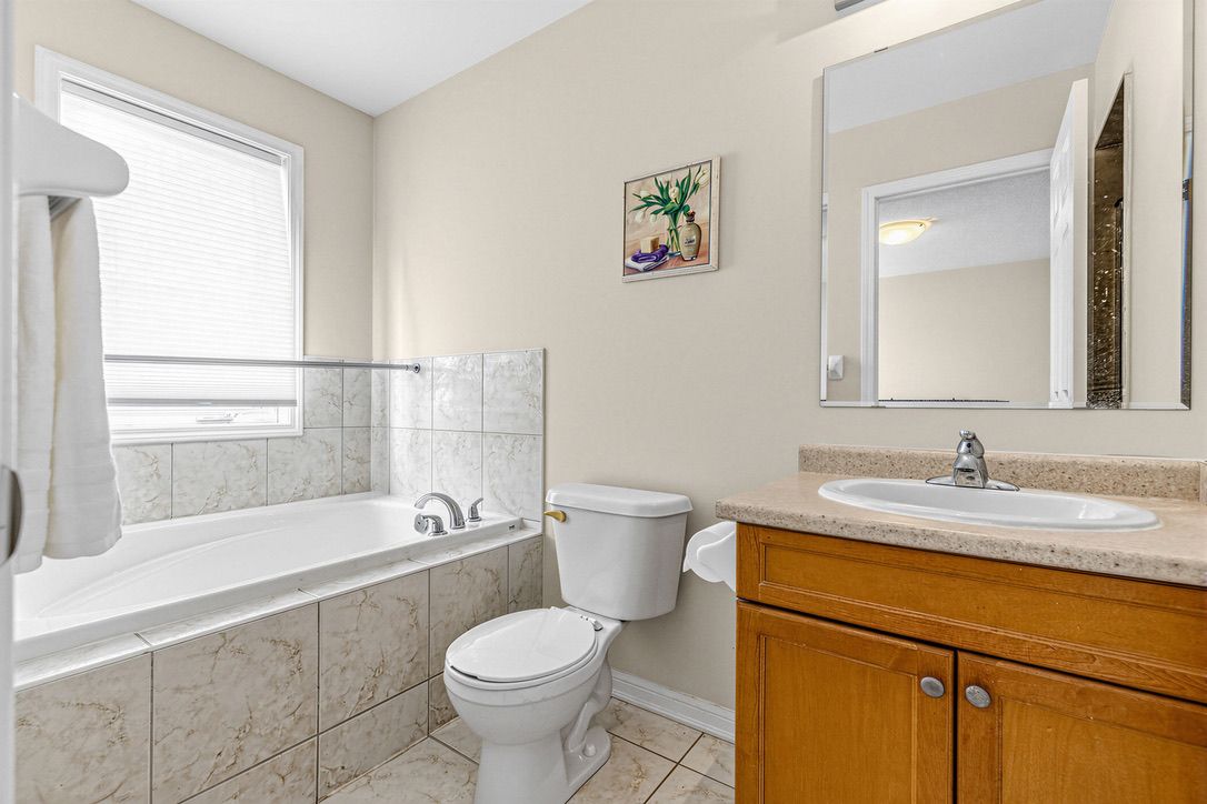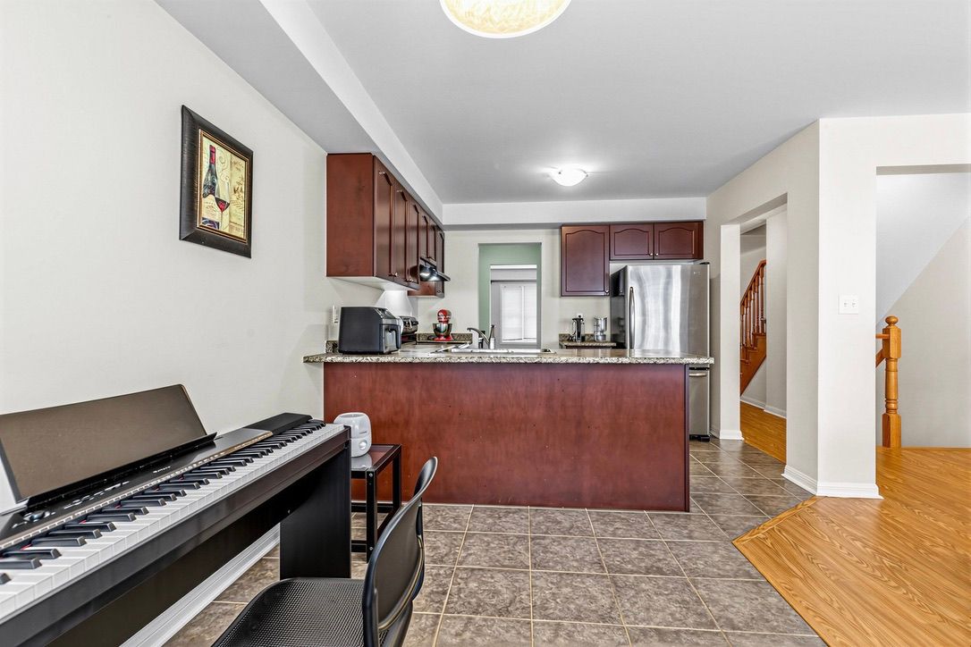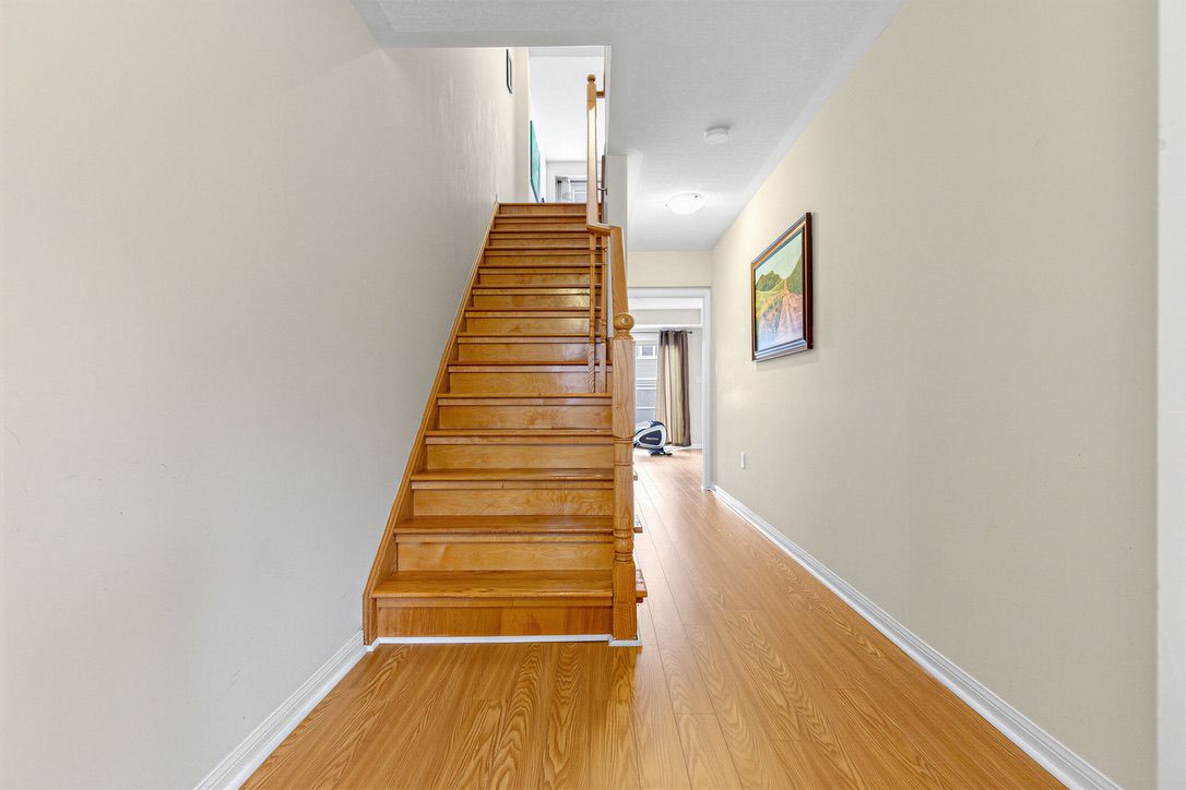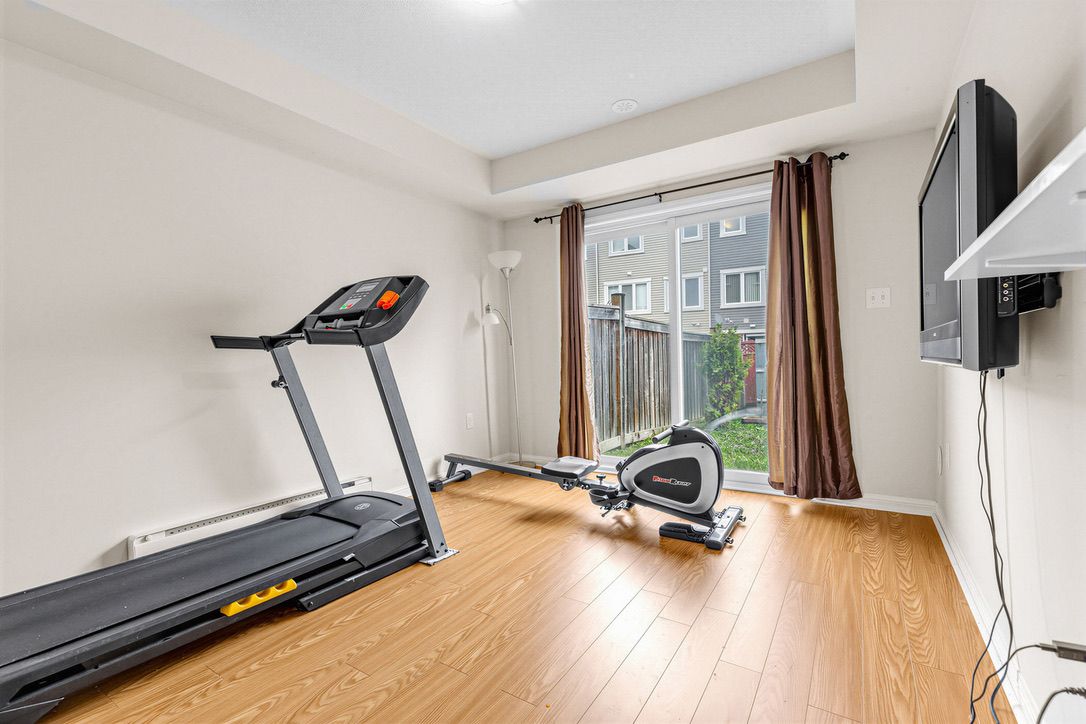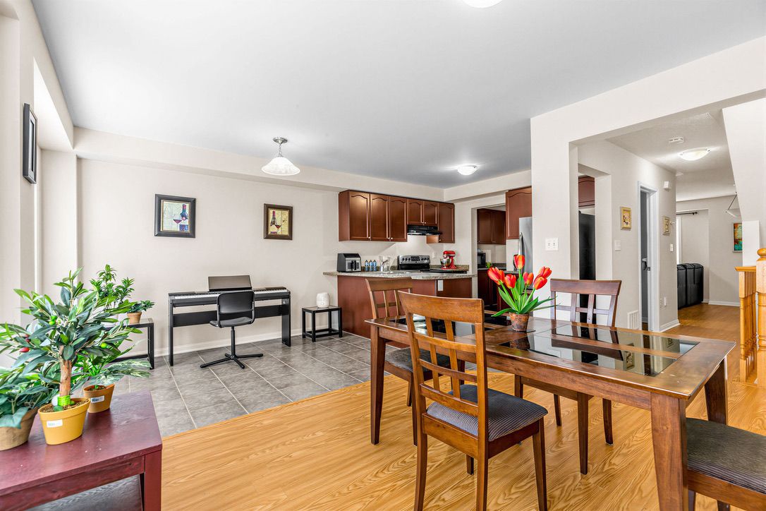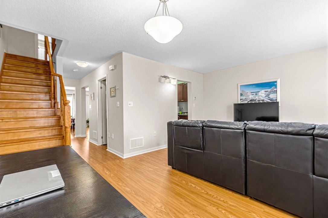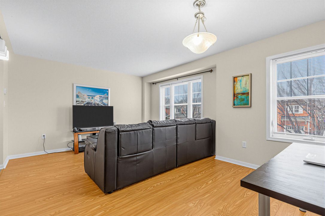Located in the heart of mount pleasant, this freehold townhouse is just a 6-minute walk to the go station (41-minute express to downtown toronto) and steps to the bus terminal, schools, library, and skating rink. Offering 1,741 sq. Ft., it features 3 spacious bedrooms, a primary with a spa-like ensuite, and desirable east-west exposure providing abundant natural light throughout the day. The ground-floor recreation room can serve as a 4th bedroom or home office. Functional second-floor layout with separate living and dining rooms. Carpet-free throughout, with new a/c and new flooring on the first and second floors (2024). Situated on a quiet, curved street with a long driveway, ample parking, and a spacious backyard. Bright, spacious, and move-in ready.