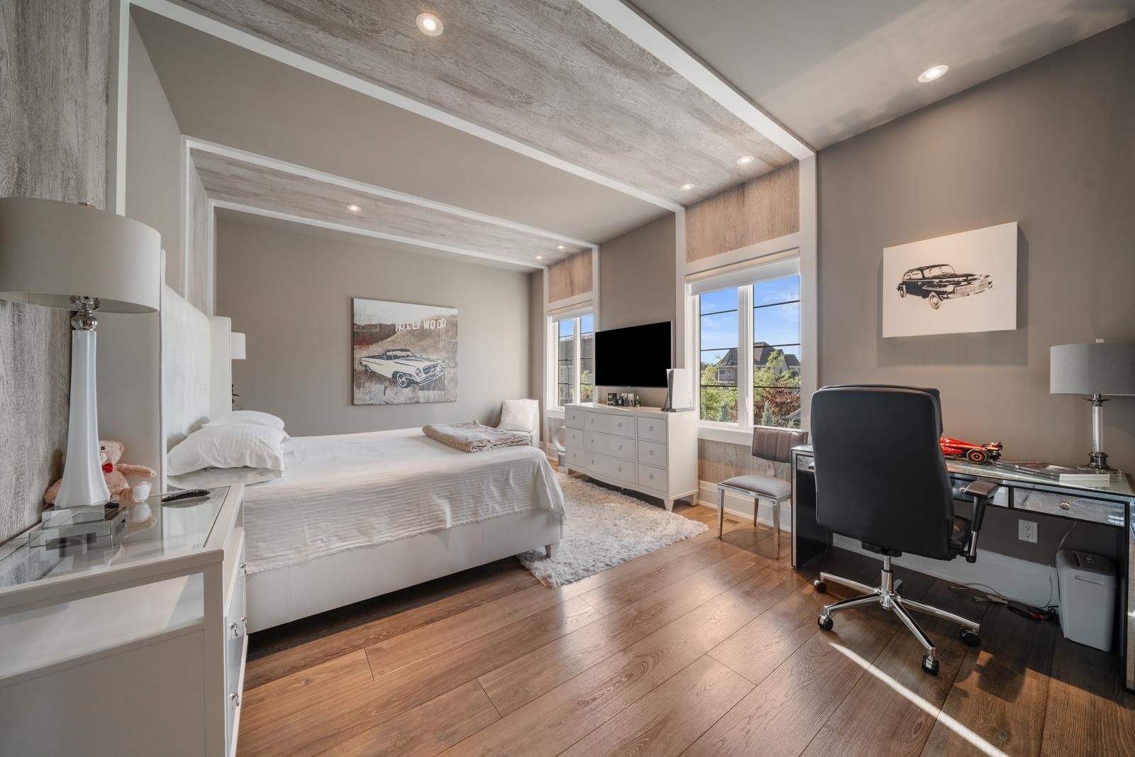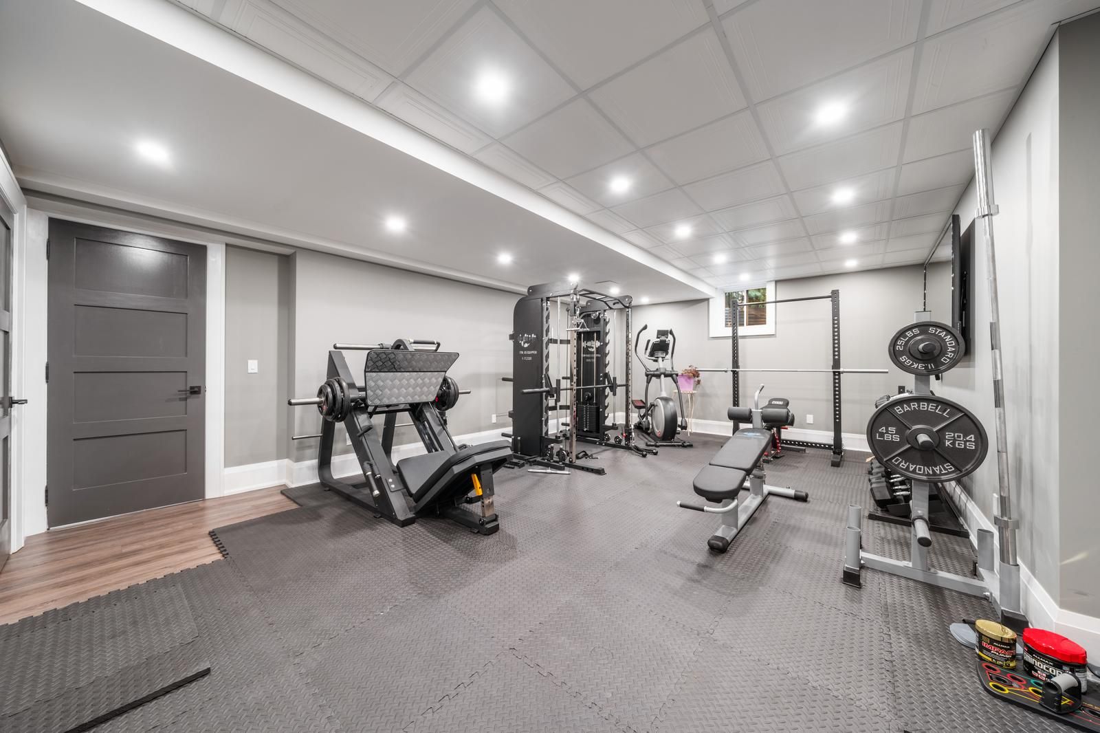 • Finished basement with unique features like a custom hockey room and gym.
