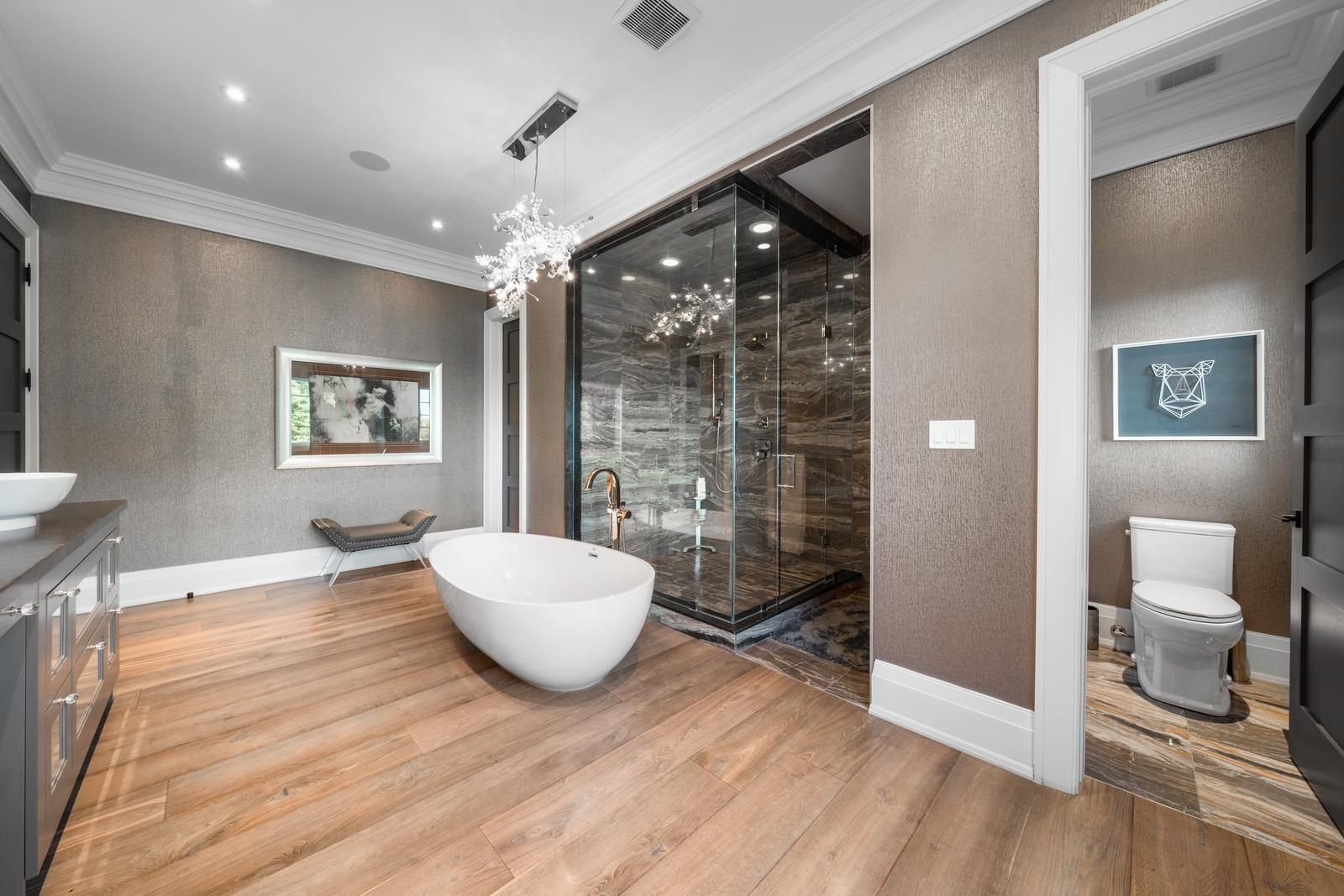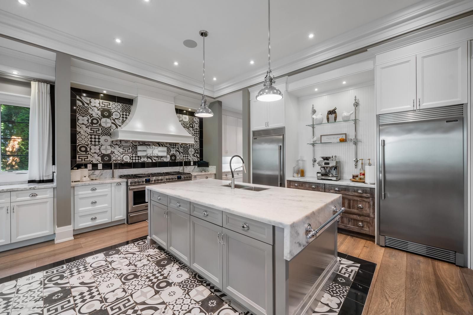 • High-end chef's kitchen with premium appliances and large center island.